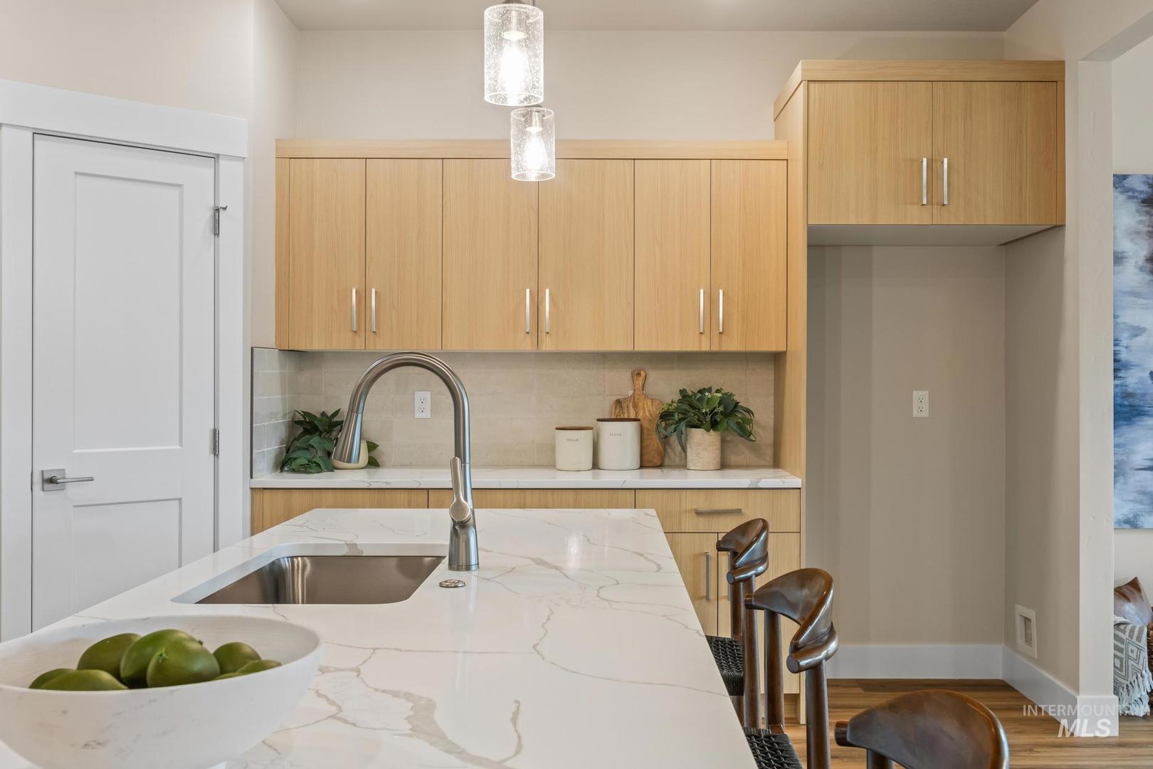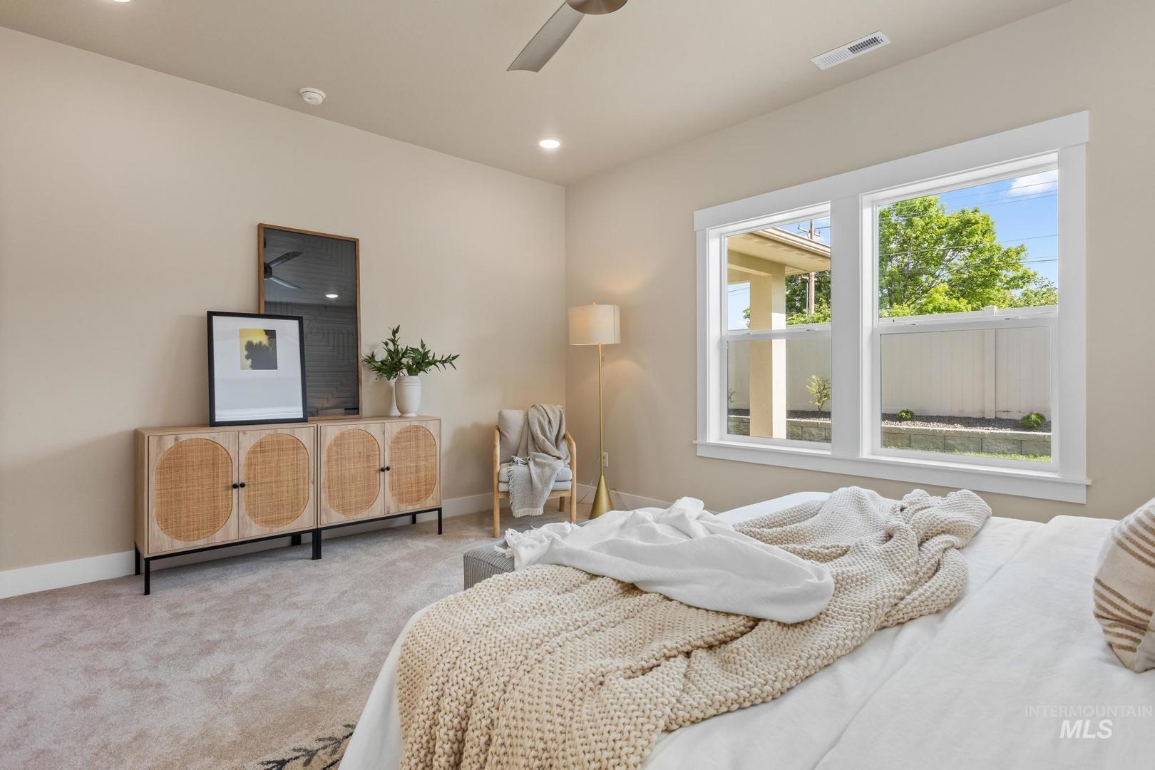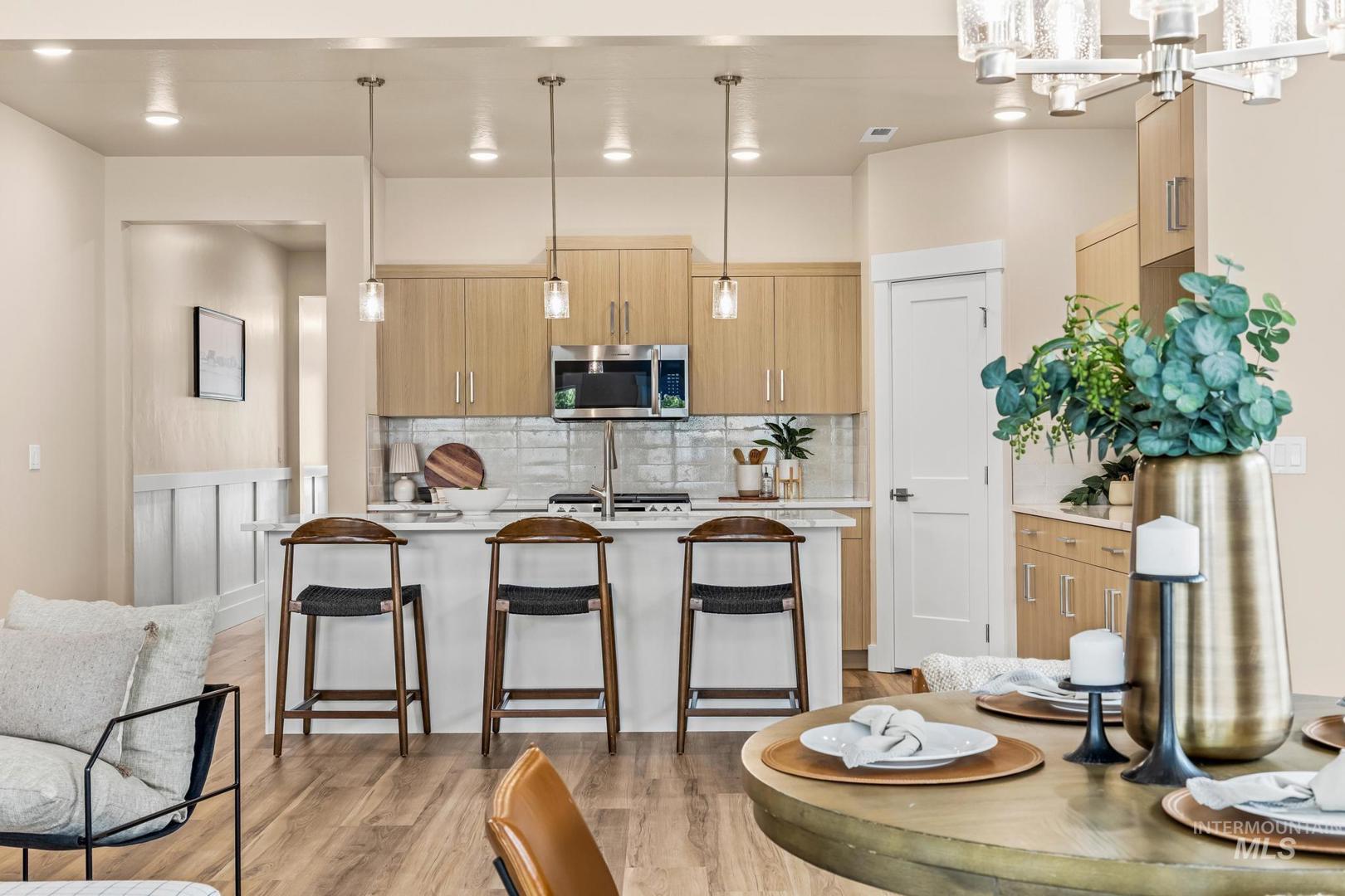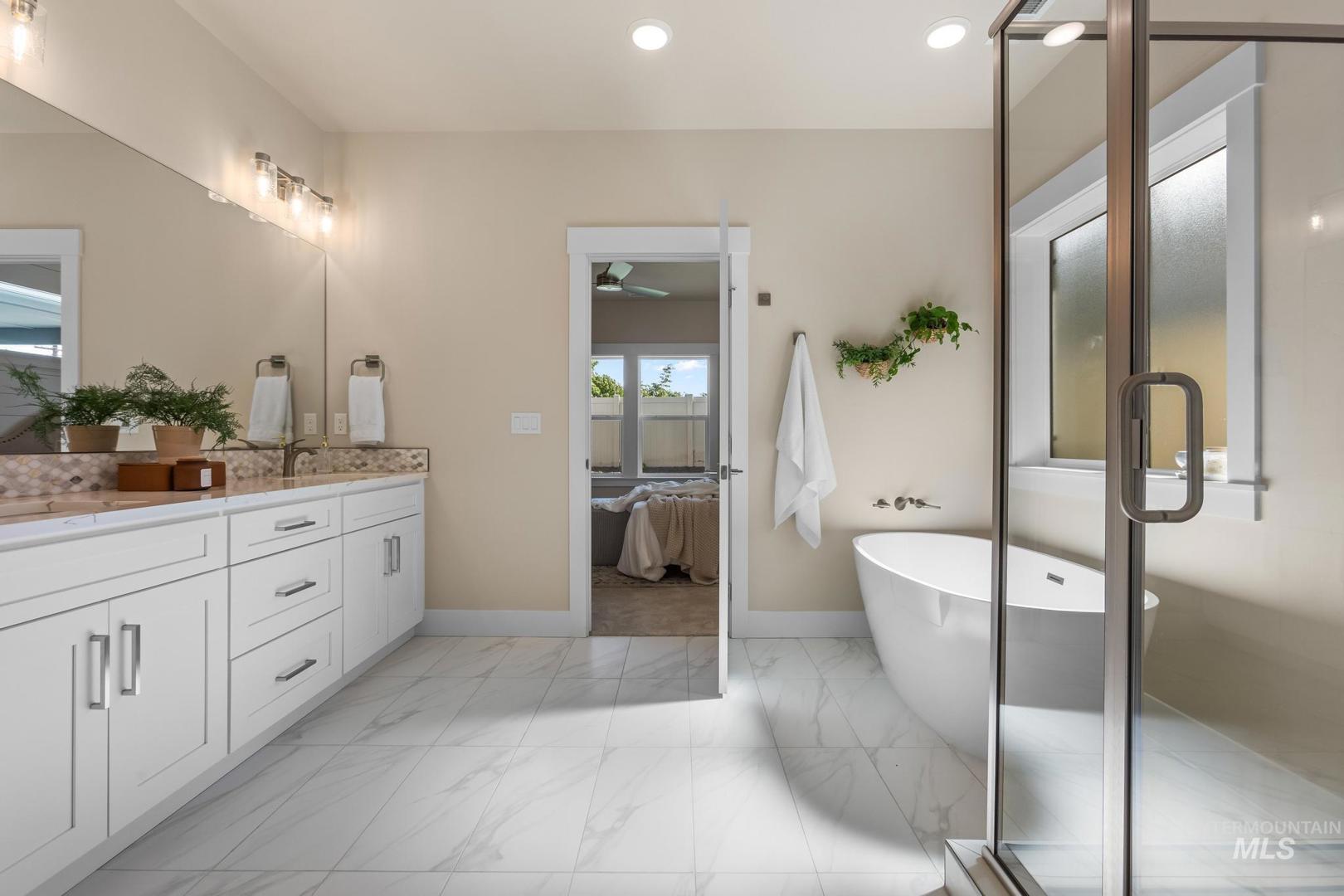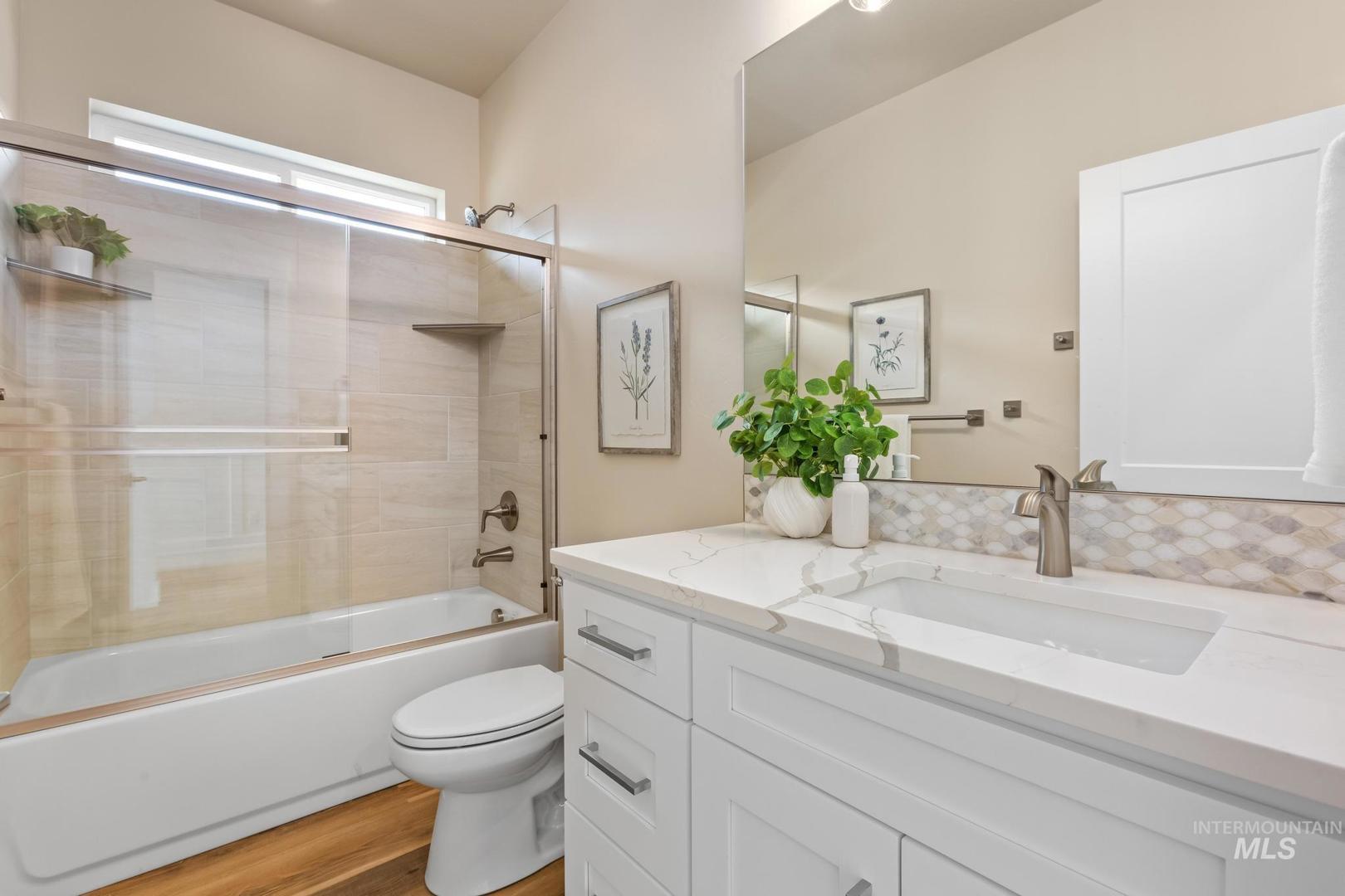 PRICED TO MOVE — NOW AT $508,900! Discover comfort and sophistication in this beautifully crafted 3-bedroom, 2-bath home featuring an open-concept design that’s perfect for modern living. The gourmet kitchen showcases quartz countertops, a gas range, stainless-steel appliances, and luxury vinyl plank flooring, flowing seamlessly into a bright living area with a cozy fireplace and custom built-ins—ideal for relaxing or entertaining guests. The two guest bedrooms share a spacious full bath with quartz counters, a tiled shower/tub combo, and designer tile flooring. Retreat to the private primary suite with dual vanities, a fully tiled step-in shower, and quartz finishes throughout. Natural light pours through large windows, highlighting the detailed trim and high-end craftsmanship in every corner. Enjoy low-maintenance living with HOA-provided front and back lawn care! Conveniently located near freeway access, Albertsons Marketplace, the YMCA, and Meridian’s top shopping, dining, and entertainment options—this home offers both luxury and location. Schedule your showing today!