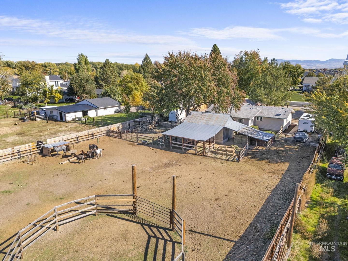 Experience country living in the heart of Star! This charming hobby farm sits on a full acre and is zoned for both residential and commercial use, offering exceptional flexibility for work, play, or future investment. Ideally located on Main Street, just a few hundred yards from downtown Star to the north and the Boise River to the south, this property blends peaceful surroundings with unbeatable convenience. The grounds are thoughtfully designed for versatility — featuring a 15x20 powered shop, horse pasture, two stalls, round pen, chicken coop, goat enclosure, RV parking, and privacy fencing. Inside, the home exudes warmth and charm with shiplap accents, wood built-ins, and solid wood interior doors. Additional features include hardwood floors, granite countertops, painted cabinetry, fresh interior paint, new ducting, and a new well pump (2023). Whether you’re looking for a place to run a home-based business, enjoy a small hobby farm, or simply soak up Idaho’s small-town charm, this property offers endless opportunity in one of Star’s most desirable locations.