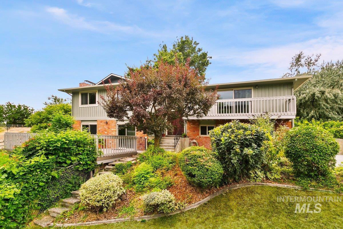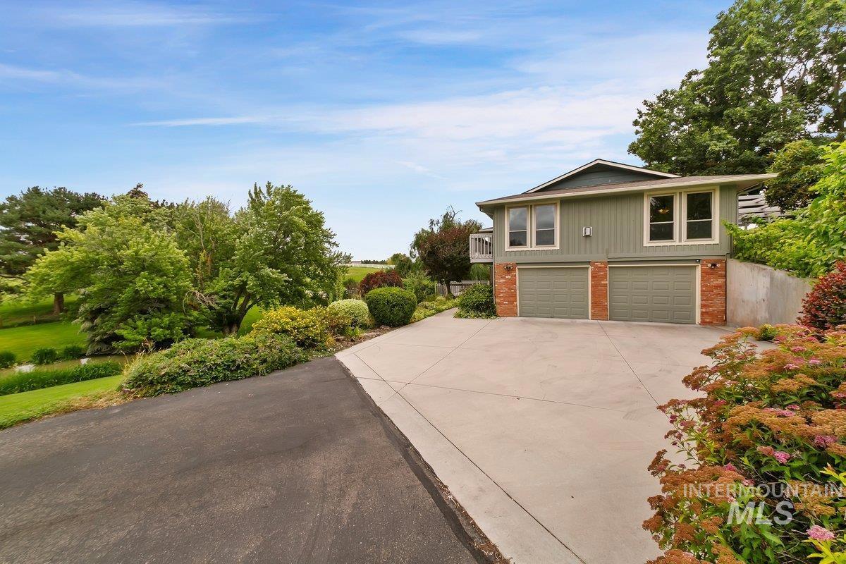 Welcome Home to Privacy, Views, and Classic Idaho Charm. This beautifully maintained, move-in ready home offers peace, privacy, and stunning views—nestled among spacious 2–10 acre home sites. Surrounded by rolling hills and classic split rail fencing, this property captures everything there is to love about life in Idaho. Enjoy the serene landscape dotted with horses and cows, mature trees, a tranquil pond, and a flowing creek. A thriving garden adds to the picturesque setting, making this property a true retreat. Inside, you’ll find an updated kitchen with stainless steel appliances, modern HVAC, and a thoughtful layout ideal for comfortable living and entertaining. The Primary Suite offers a cozy fireplace, large sitting area, and a beautifully updated ensuite bathroom. A main-level Guest Suite ensures privacy and comfort for visitors. The walkout basement features a spacious rec/family room with fireplace, two additional bedrooms, a full bath, and abundant natural light pouring through double sliding doors that open to the outdoors. The backyard is perfect for relaxing or entertaining, with a large patio offering both privacy and breathtaking views.