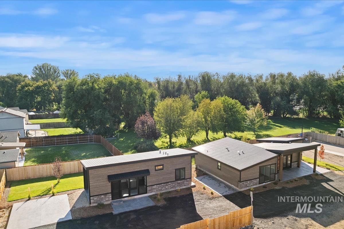 Discover the perfect blend of comfort, versatility, & quality craftsmanship with this unique property featuring TWO NEW HOMES. The main home, "The Maple," offers 1,167 sq. ft. of thoughtfully designed living space, featuring, 2 beds, 2 baths, & 1-car garage. Built with Steel walls and blown in foam insulation for maximun energy effiency. Inside, enjoy a great room with garage door for indoor/outdoor living, LVP flooring, quartz countertops, modern lighting, & SS appliances - W/D and fridge included. The open-concept layout & modern finishes make this home as stylish as it is functional. The second home offers 510 sf with 1 bed / 1 bath - featuring a vaulted loft area. Perfect for a guest house, short/long-term rental, or an ideal multi-generational living setup. Nestled on a spacious 0.33-acre lot, this property offers room to breathe and is conveniently located in the heart of Middleton. Option to purchase entire community, more lots and floor plans available. Landscape and fencing complete!