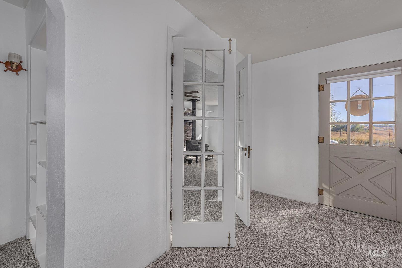 Beautifully maintained 3-bedroom, 1.5-bath home offering 1,763 sq. ft. of comfortable living space on a private 2.3-acre lot. Built in 1952, this property combines vintage charm with modern updates throughout. Recent improvements include new interior paint, carpet, and all new appliances (2023), which stay with the home. Bright and inviting interior features also include Corian counters, wood floors, wood stove for cozy heat. A private patio overlooks the property and scenic views. Exterior highlights also include a 24x30 shop with built-ins, wood and lawn sheds, RV hookups (with and without sewer and with power), and two natural springs. The irrigated pasture is serviced by gated pipe irrigation, steel post and no-climb fencing. The corrals stay and there are two water spigots next to the corrals providing convenient access. Enjoy the peace and privacy of a private road while staying close to the interstate and town for easy access. A perfect blend of quiet country living and convenience—ready for its next owner!