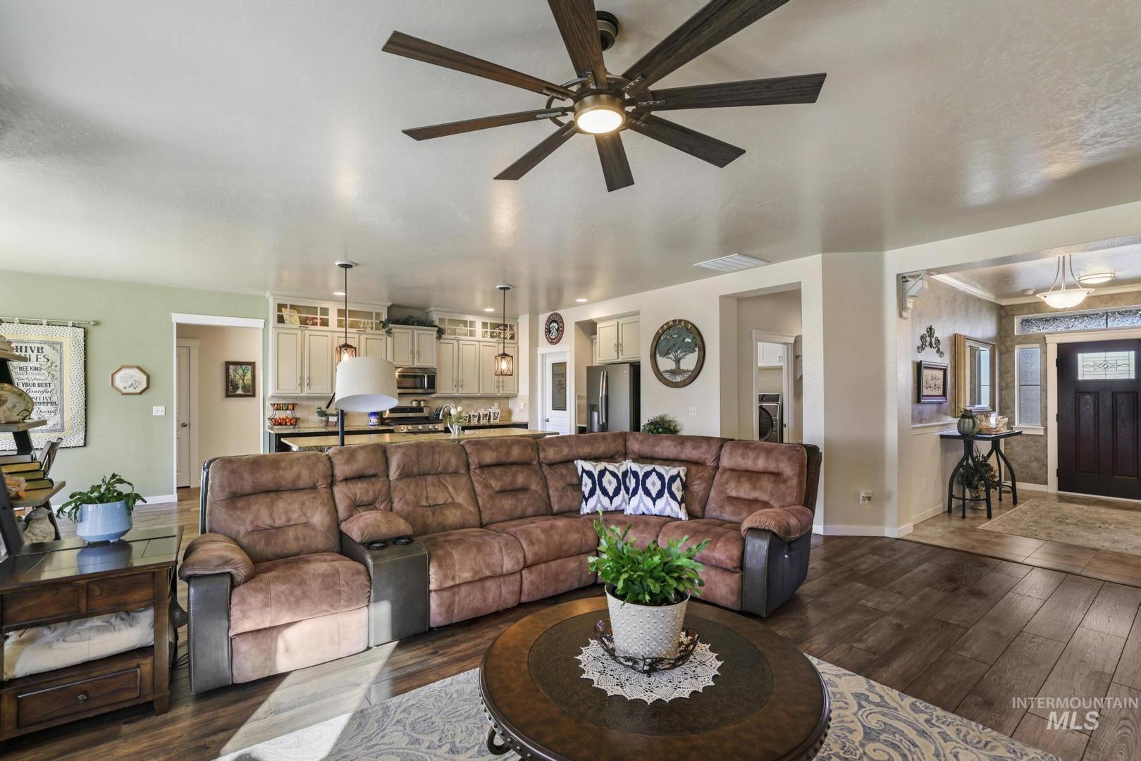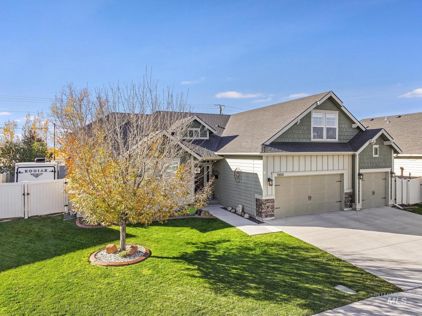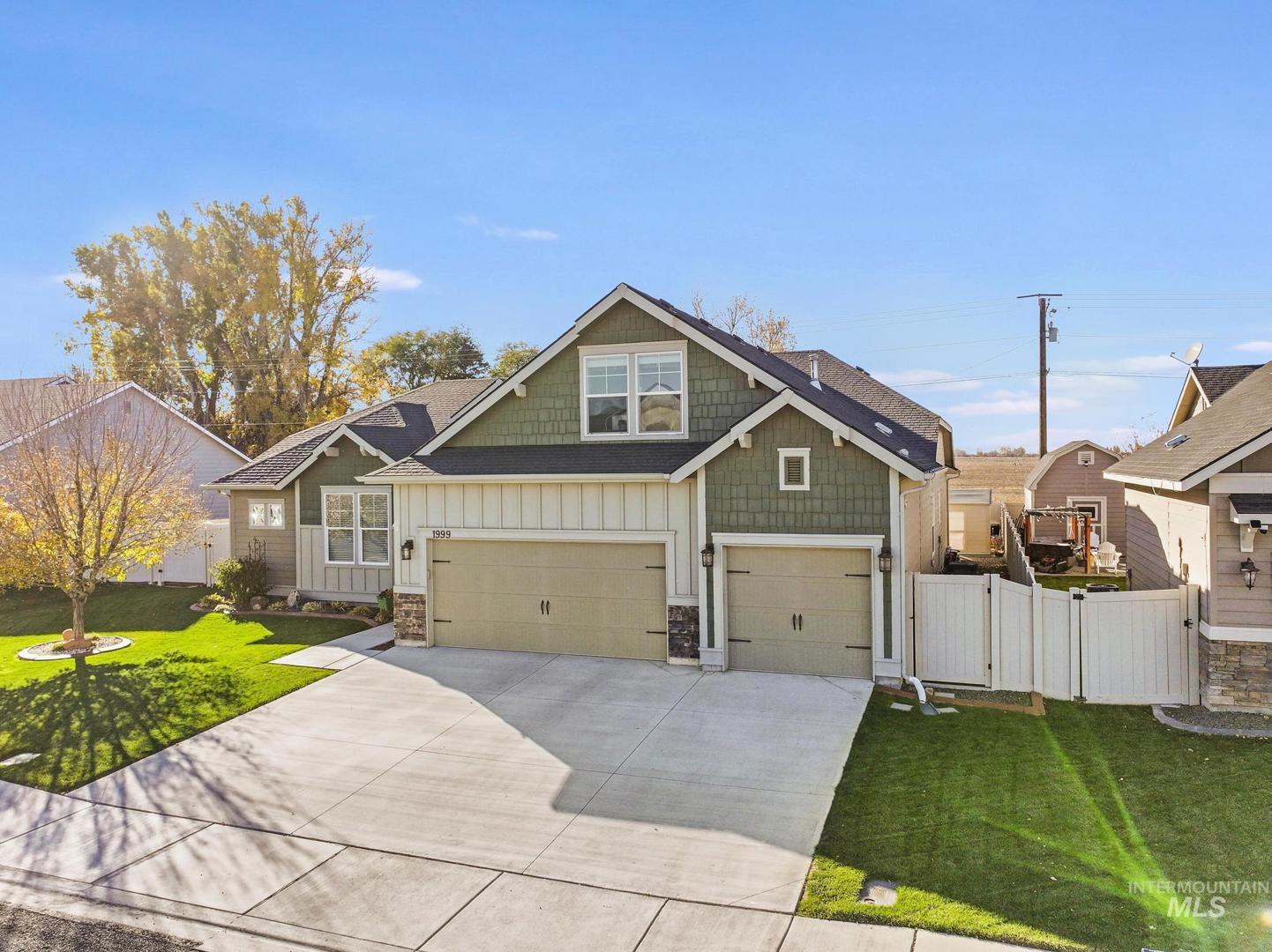 Welcome to your beautifully upgraded 2018 home, a spacious 2,546 sq ft gem nestled in an unbeatable location! You`ll love the convenience of being just minutes from Costco, the hospital, and all your favorite shopping and restaurants. This home is filled with the kind of high-end details you`ve been searching for. Step into the heart of the home, the stunning kitchen, which boasts a gorgeous farm sink, gourmet gas stove, and tons of storage in the soft-close cabinetry and the large walk-in pantry! Throughout the main areas, you’ll find elegant touches like crown molding and stylish new flooring. The large primary suite is your private sanctuary, featuring comfortable, newer Berber carpet and a walk-in closet with windows to keep it bright and airy. After a long day, soak away your stress in the luxurious big soaker tub in the primary bath. Plus, the versatile bonus room is a fantastic spot for whatever you need—a home gym, a second office, or a fun play area! The mature backyard is ready for you to enjoy. The space features beautiful landscaping with fruit trees and offers a breathtaking western view perfect for watching those incredible Idaho sunsets. For your practical needs, there is a substantial three-car garage, a convenient storage shed, a small greenhouse, and easy RV with a double gate! Fantastic opportunity to own a meticulously cared-for home in a prime Twin Falls spot.