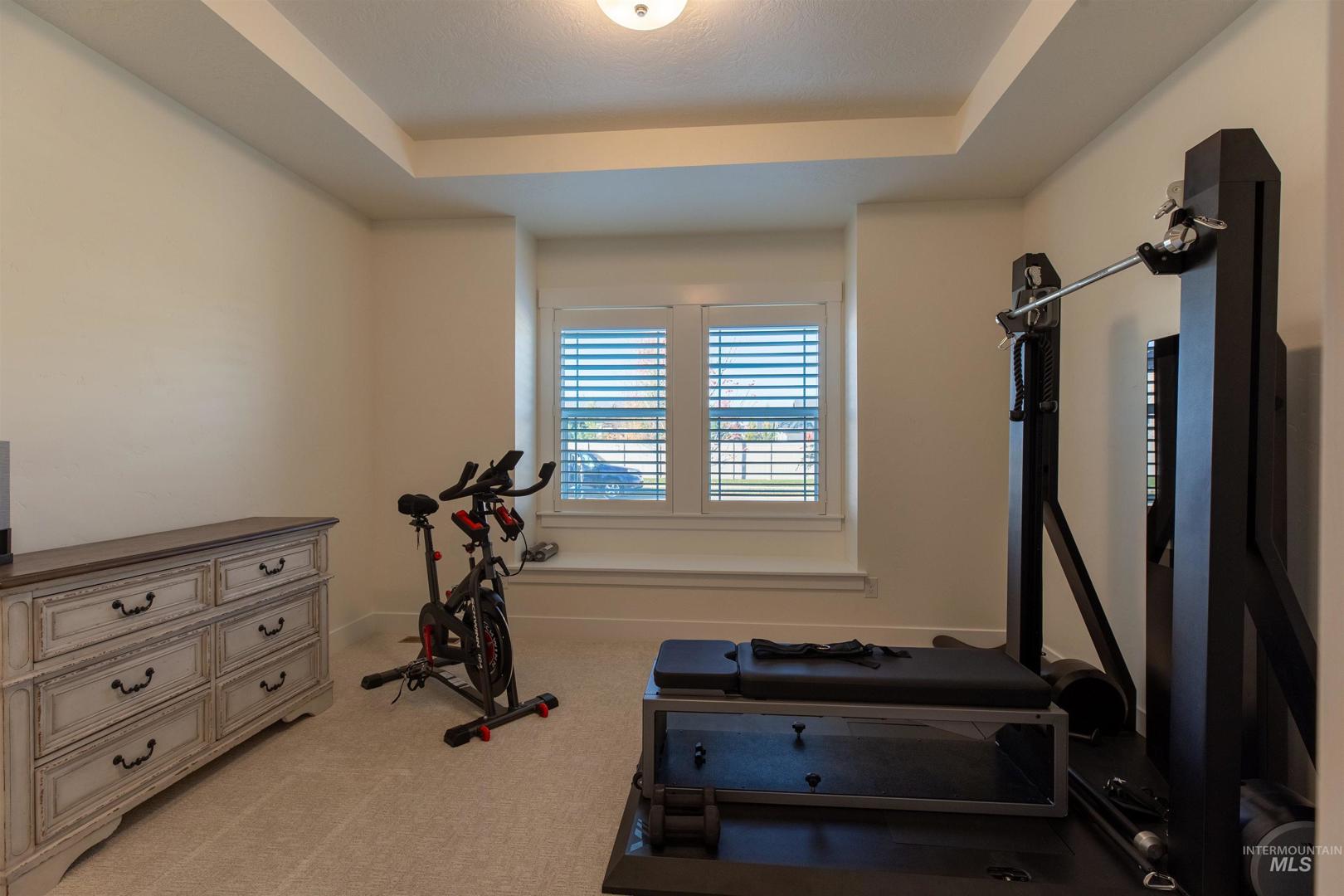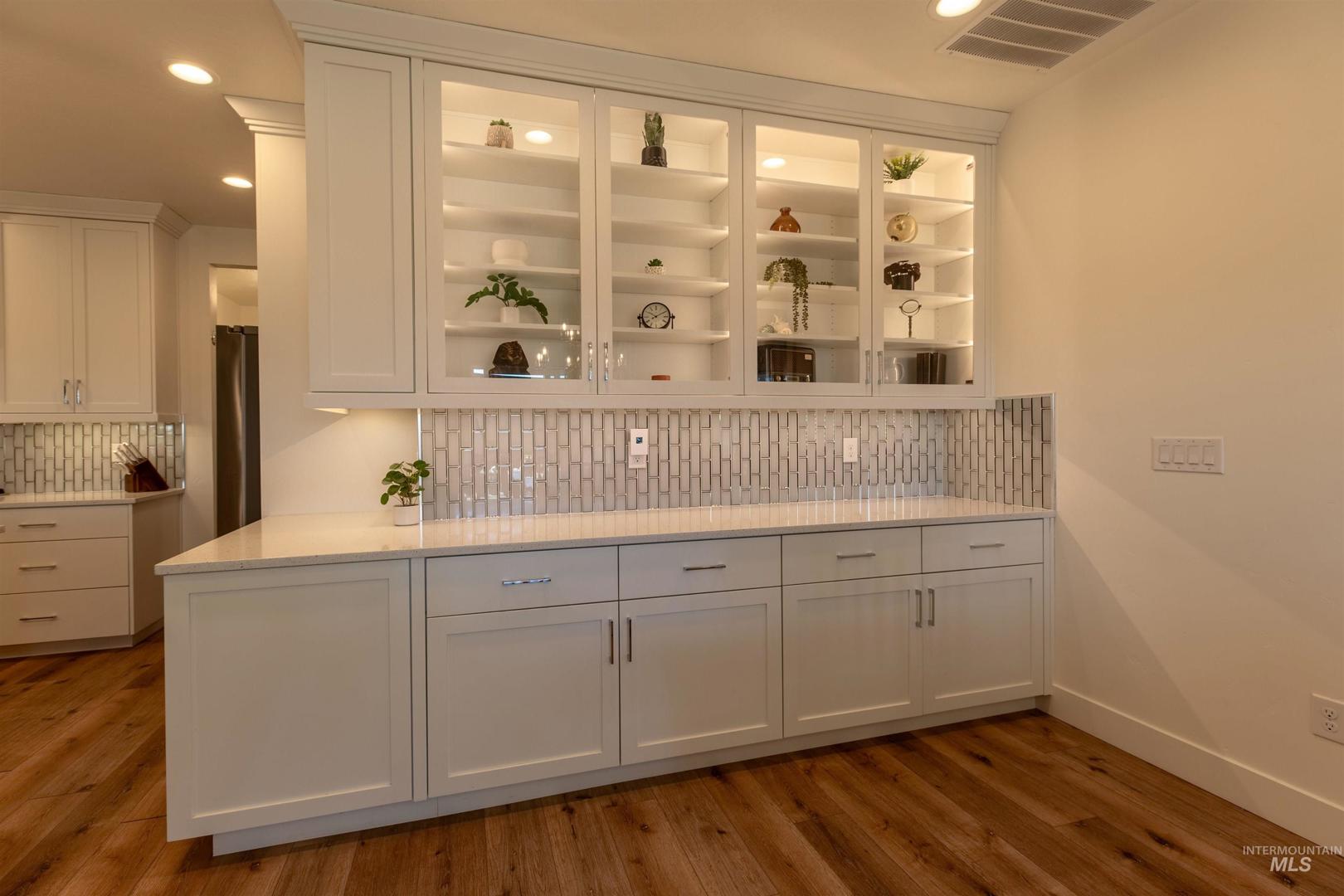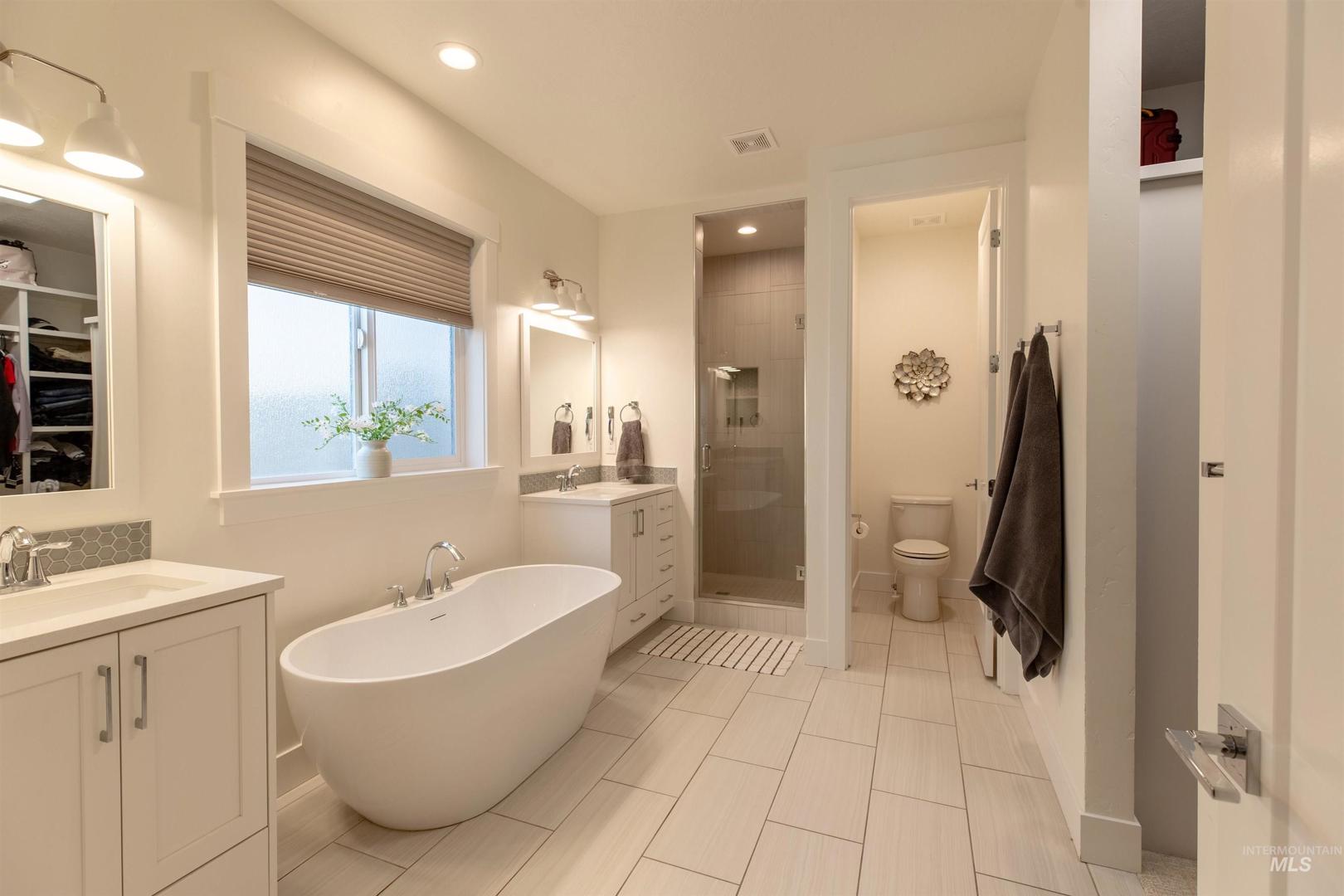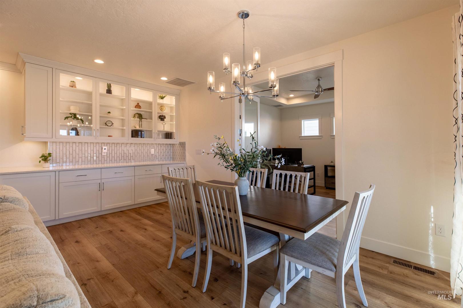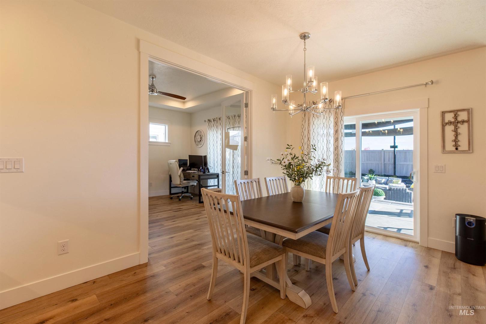 Like new & well maintained w/RV garage & STUNNING backyard! Outside, greeted by quaint courtyard & entering in to bright, refreshing space. Kitchen boasts TONS of cabinetry inc serving station area, large quartz island/bkfst bar, LG appliances inc fridge, 5 burner cook top, RO water at sink, dual ovens & pantry w/auto on/off & lighted lower shelving for lots of storage & even view to the mountains out the back! Plantation Shutters, newer plush carpet, coved ceilings & upgraded ceiling fans throughout. Great Rm w/cozy gas fireplace & tons of natural light. Primary w/door to patio wired for hot tub, ceiling fan & blackout blinds. Dual vanities, tiled floors, freestanding tub, tiled walk-in shower, walk-in closet & private water closet make this a lovely retreat. Easy-care LVP throughout entry, great rm, kitchen & office. Bonus/office w/double doors, great light & door to extended patio. Secondary bedrm w/walk-in closet. Secondary bath dressed in full tile & soaker tub. Mudbench drop-zone. Water softner, air purifier, ,Laundry rm w/sink & tons of counterspace. Retreat to the backyard & relax! Lg covered patio leads to sunken conversation area w/dual gas fire pan feature. Shade sails for summer shade & even a bubbling rock fountain add to the comfort. Raised planter bed+SUPER EASY artificial turf! Sandy area for dogs. Finished 45` RV garage w/easy care epoxy floors for all the toys!