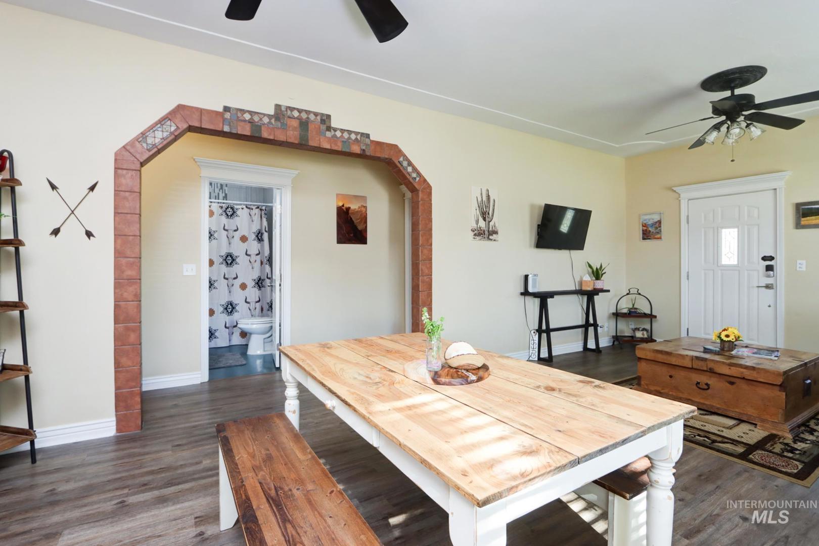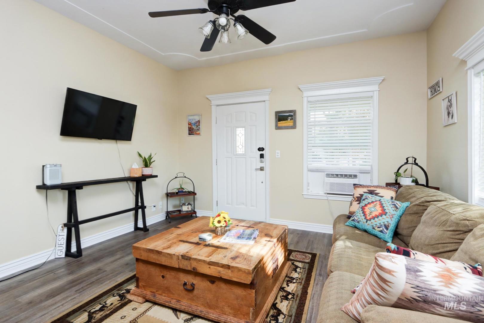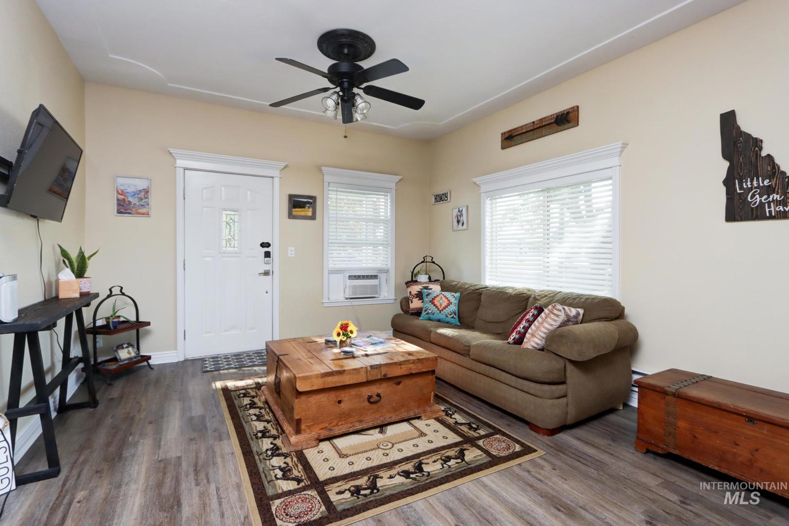 This charming craftsman-style home is conveniently located in the heart of Emmett, close to shops, restaurants, the Payette river and Black Canyon Reservoir. Nestled on a large corner lot, it boasts a large front yard, equipped with new sprinklers and features beautiful matured trees. Sit down and unwind on this quiet and relaxing porch after a long day. Step inside and be greeted by the rich character of the home-from the decorative tile to the detailing on the high ceilings. The combination of a cozy fireplace and an abundance of natural lighting is sure to make this house feel like home. The updated bathroom showcases modern finishes and the cute kitchen features an open concept, allowing lots of room for friends and family to gather. The heart of this home extends outdoors to the spacious backyard, perfect for BBQ`s, fire pit memories under the stars or a gardeners oasis. For added convenience, the back fence gate opens from the alley to allow RV parking-a rare and sought-after amenity in the city. Take a look at this timeless home today!