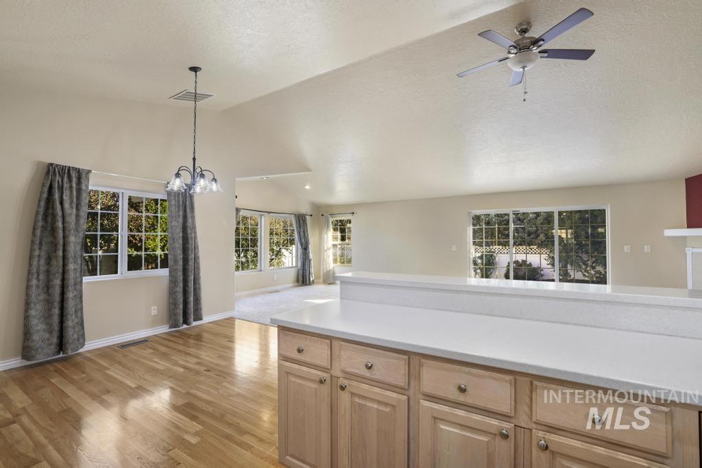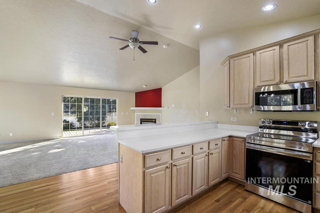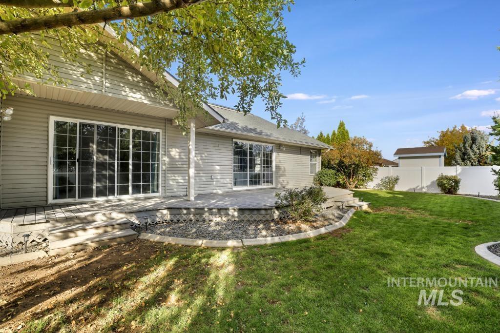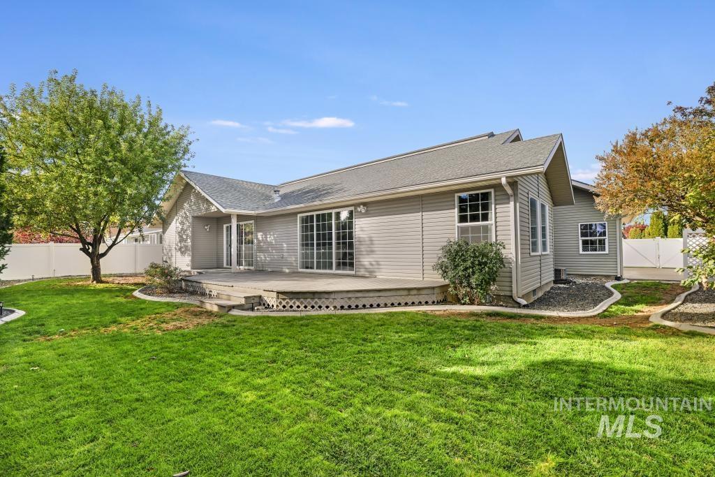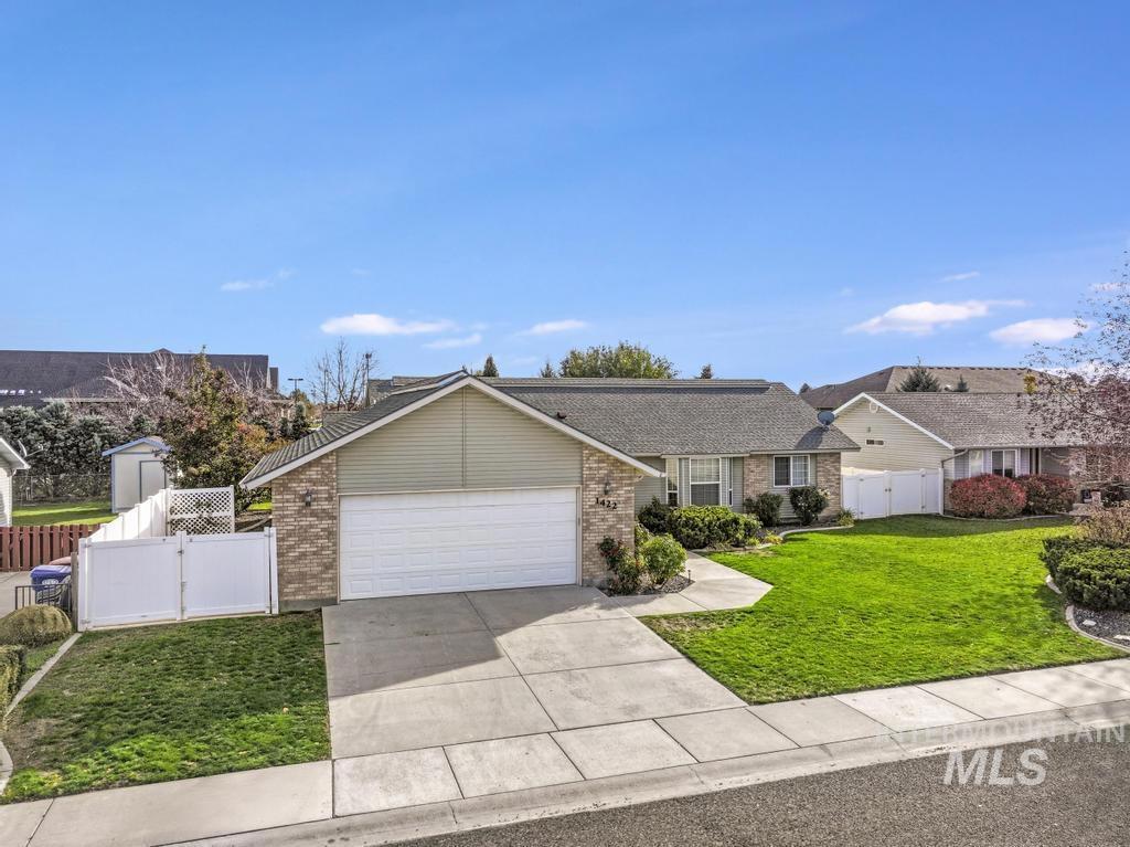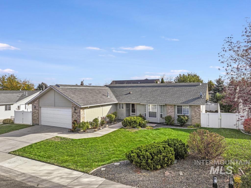 Move-In Ready & Full of Charm! Welcome to this beautifully maintained home in Twin Falls’ desirable North Pointe Ranch sub. Conveniently located just minutes from healthcare, schools, shopping & the stunning Canyon Rim, this home offers comfort, style & function in a quiet, friendly neighborhood. Step inside to an open-concept floor plan featuring a spacious great room w/a cozy corner gas fireplace & large slider doors that lead to a gorgeous Trex deck-perfect for relaxing or entertaining. The kitchen is thoughtfully designed w/a breakfast bar, newer solid-surface counters, corner sink, new glass-top range/oven & an abundance of cabinetry including pull-out drawers for easy storage. The primary suite is a private retreat with slider access to the back deck, dual vanities with newer solid-surface counters, large walk-in closet & a separate shower/toilet area. The guest bath also features an updated counter & a soaker tub for unwinding. Enjoy an oversized 2-car garage complete w/shelving & an extra dedicated workspace area w/cabinetry. Behind the fence, there is a concrete slab for RV parking—a rare find! The private backyard is landscaped with concrete curbing, rose bushes & fruit trees, creating a peaceful outdoor oasis. The deck includes a gas stub for grilling, making outdoor living a breeze. This west-facing home is full of natural light & has several new windows.
