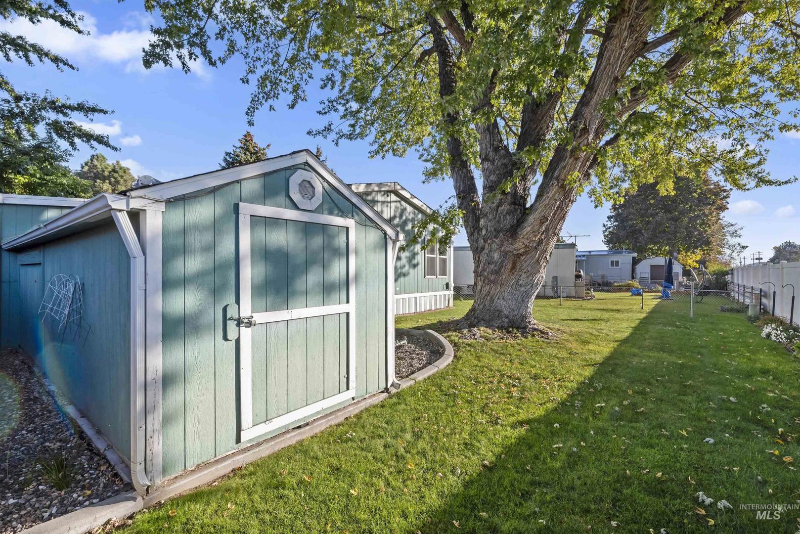 Welcome to West Meadow Estates! A wonderful 55+ retirement gated community in Boise, offering the perfect blend of privacy, comfort, and community living. This beautifully maintained double-wide home features new LVP flooring, 2 spacious bedrooms and 2 full bathrooms. The inviting primary suite includes a walk-in closet and a luxurous soaker tub-your own private retreat! The lush yard is fenced with a sprinkler system with access to a large storage shed (22 x 8) Enjoy independent living with access to generous ammenities, including a clubhouse, organized community activities, and secure gated entry. West Meadow Estates is a pet-friendly neighborhood & includes a dog park! RV storage is available for an additional fee for added convenience & peace of mind. ($75.00) Located just one mile from local shopping & dining, this home offers the ideal balance of tranquility & accessiblity within the Boise metro area. Don`t miss this opportunity to join a welcoming active, 55+ community!