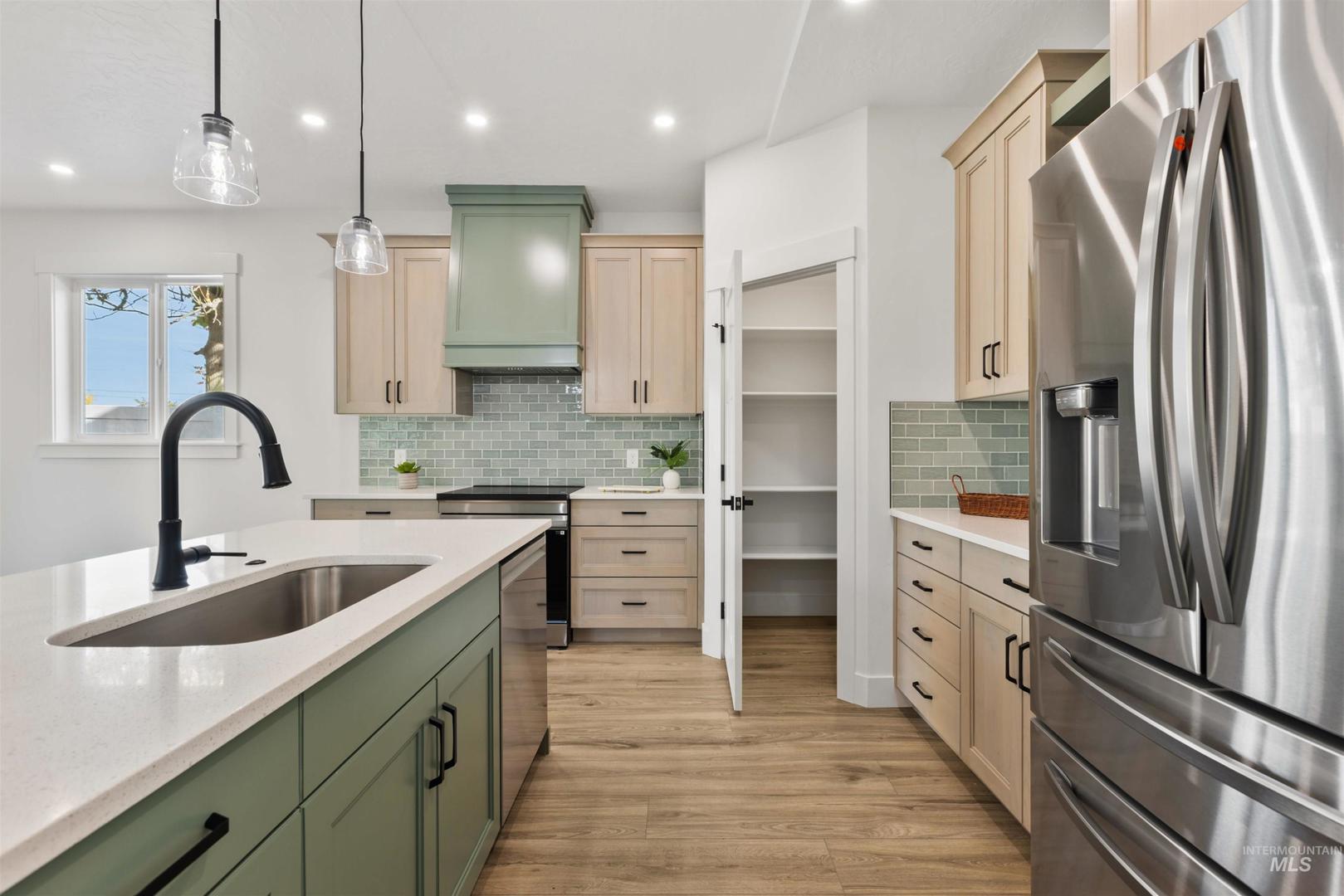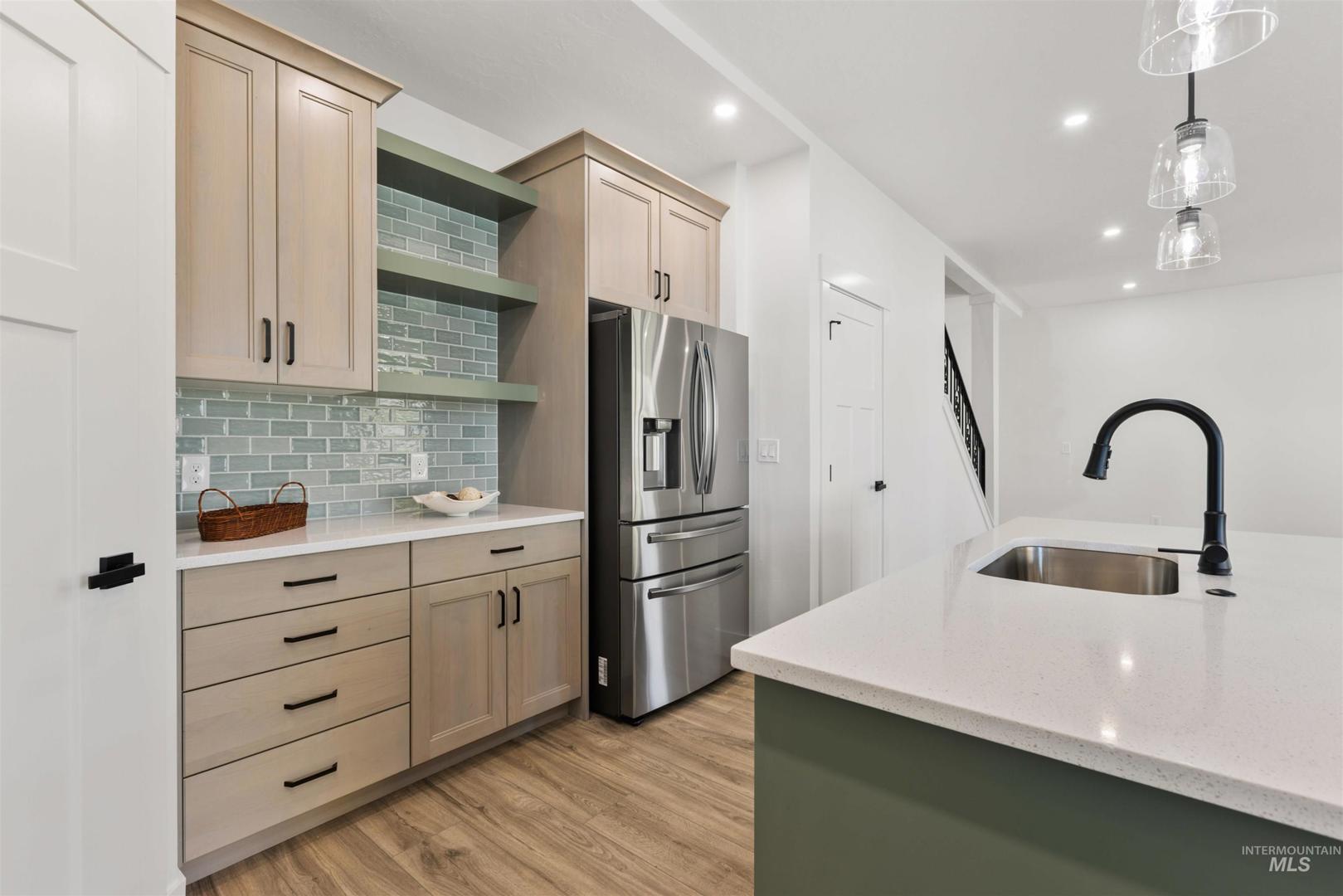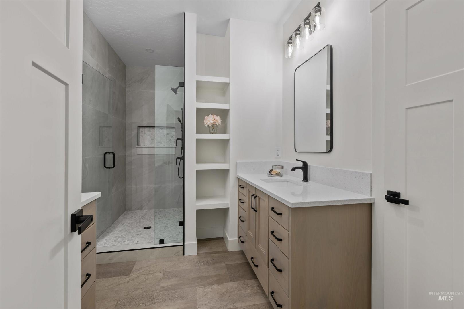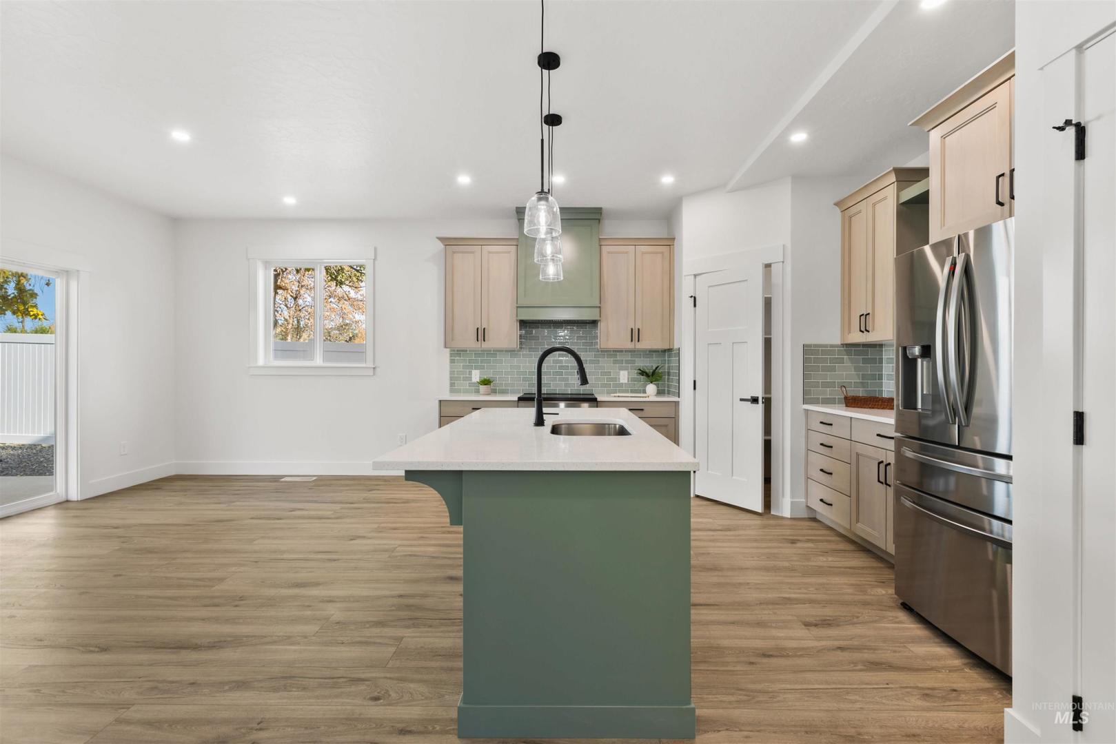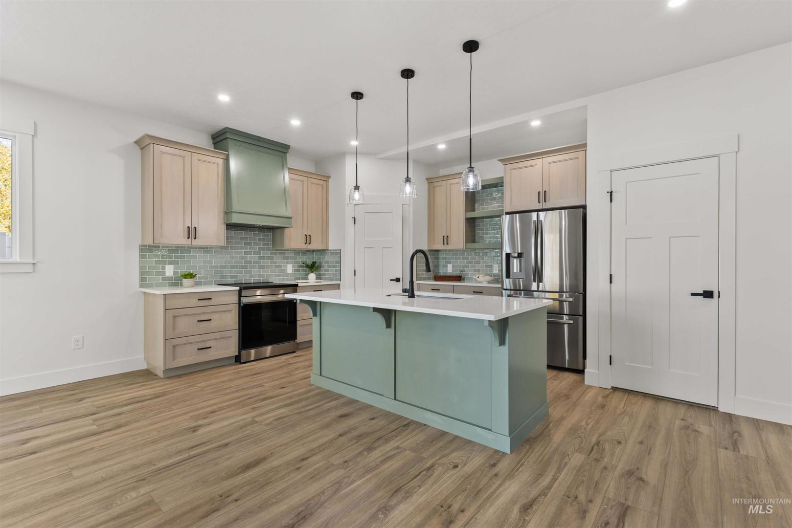 Step inside this beautifully crafted modern residence, offering a perfect blend of style, comfort, and functionality. 4 spacious bedrooms and 2.5 bathrooms. The open-concept main floor with natural light, featuring a sleek kitchen with high-end appliances, quartz countertops, and a large island that seamlessly connects to the living and dining areas. Retreat to the primary suite, complete with a luxurious en-suite bathroom and generous walk-in closet, creating a private haven. Additional bedrooms provide versatility for home offices, guest rooms, or hobby spaces. The home also includes a convenient laundry space, 2 car garage. Outdoor living is enhanced with a covered patio and landscaped backyard, perfect for gatherings or quiet relaxation. This new construction property embodies both comfort and sophistication. Located in the desirable Caldwell area, enjoy proximity to shopping, schools, parks, and easy commuting options, making this home an exceptional choice for your next move. Experience the immediate charm of a brand-new property, ready for you to embrace your dream lifestyle today.