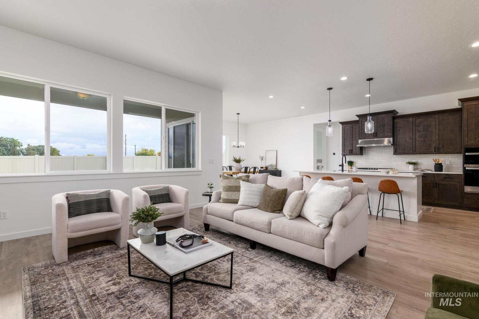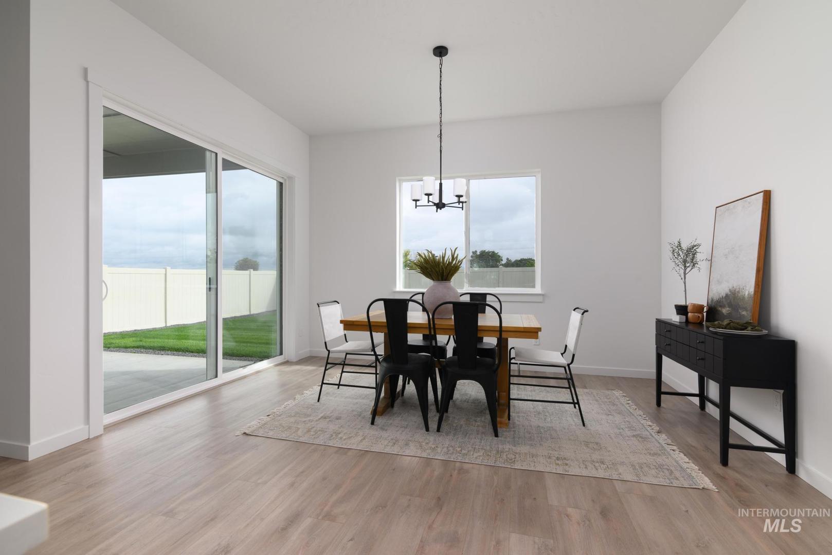 The Bannock exudes contemporary comfort and functionality, exemplified by its thoughtfully crafted single-story layout. A long foyer sets the stage, leading to a spacious great room seamlessly connected to the kitchen, casual dining area, and covered patio—an ideal setting for gatherings and relaxation. The kitchen is centered around a striking large center island and enhanced by its expansive walk-in pantry. The primary bedroom suite, nestled in the rear of the home, features a serene sanctuary complete with a luxurious walk-in closet and a primary bath with separate vanities, freestanding tub and a luxe shower. Off the foyer, two secondary bedrooms and a bathroom offer privacy and comfort, while a private home office and powder room round out the home. Front and rear landscape included. Large 3 car plus boat garage. Home is under construction. Photos are similar. BTVAI