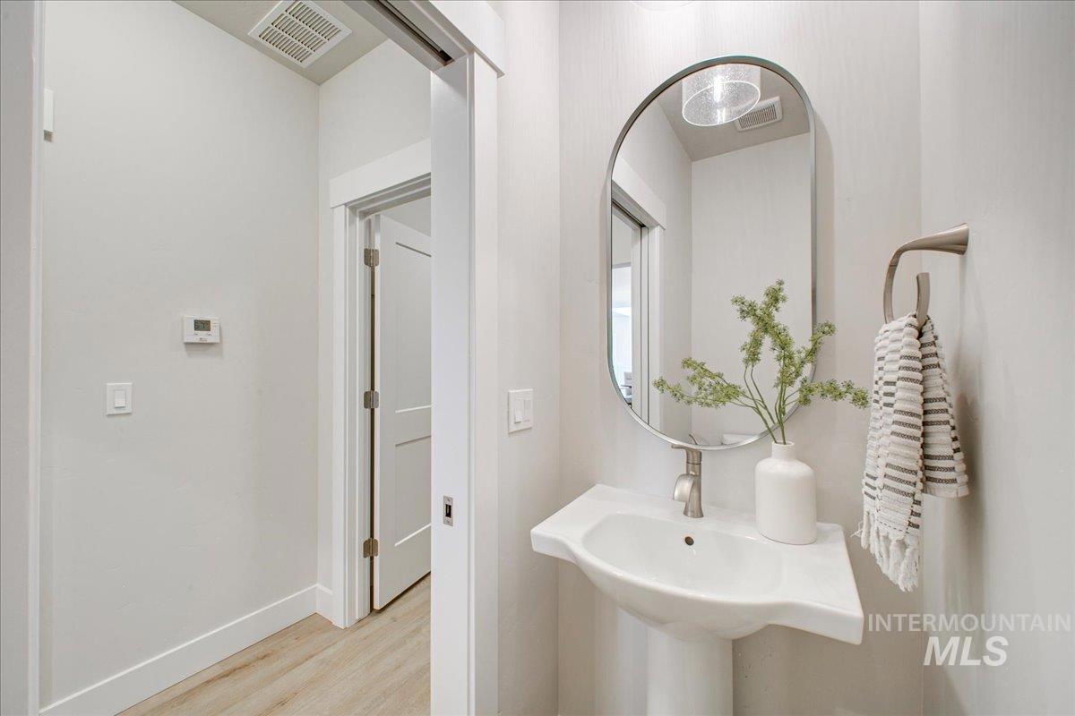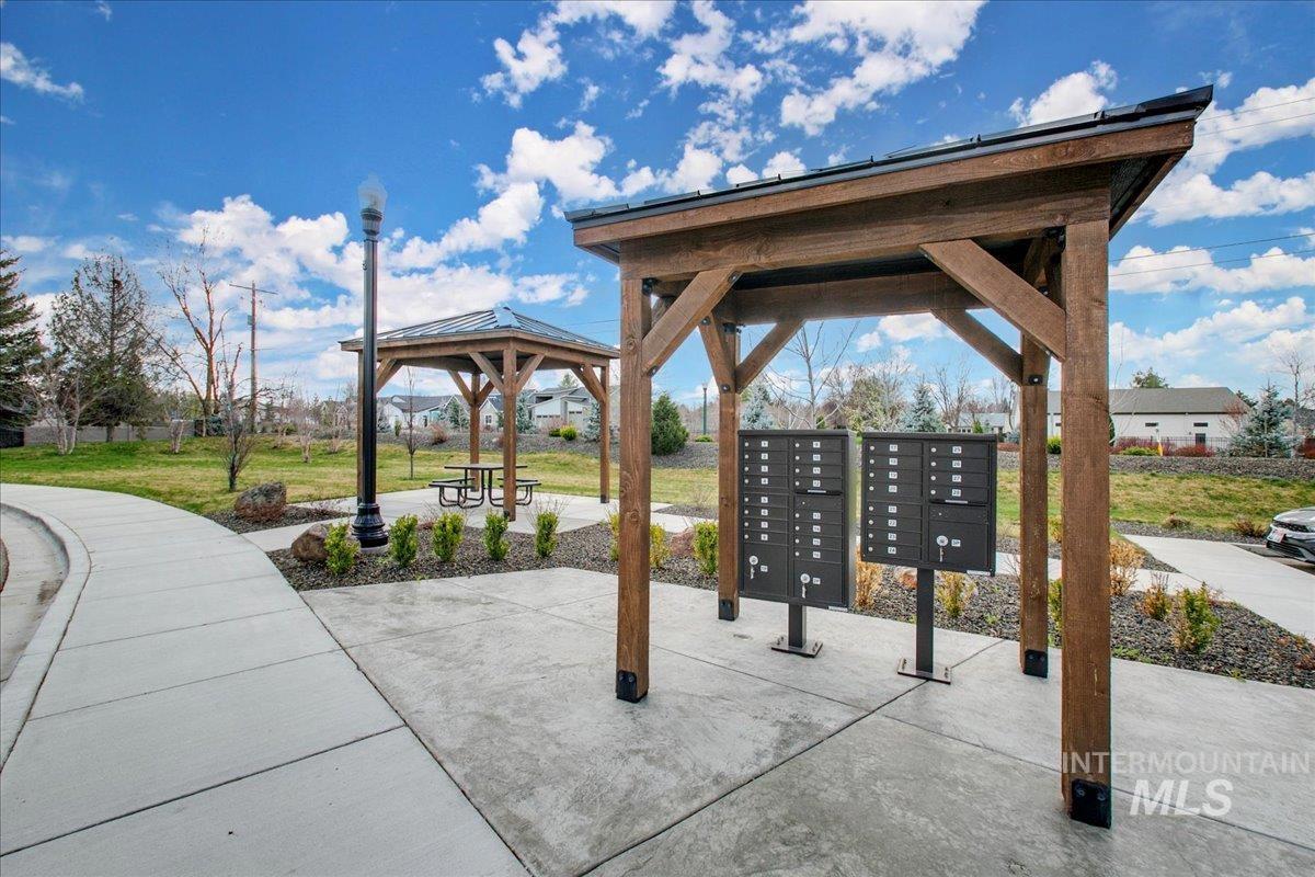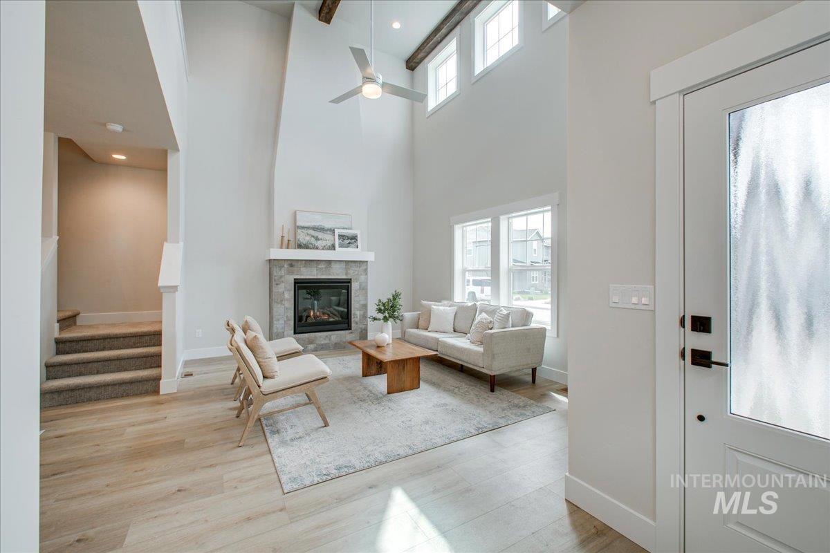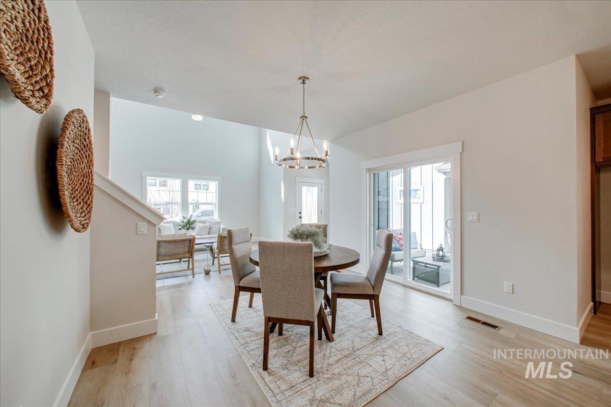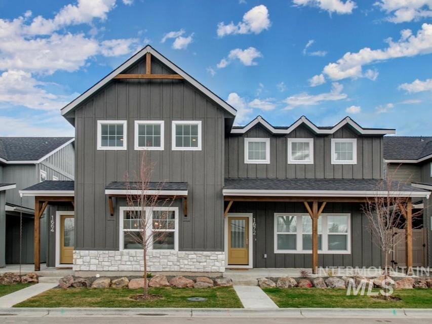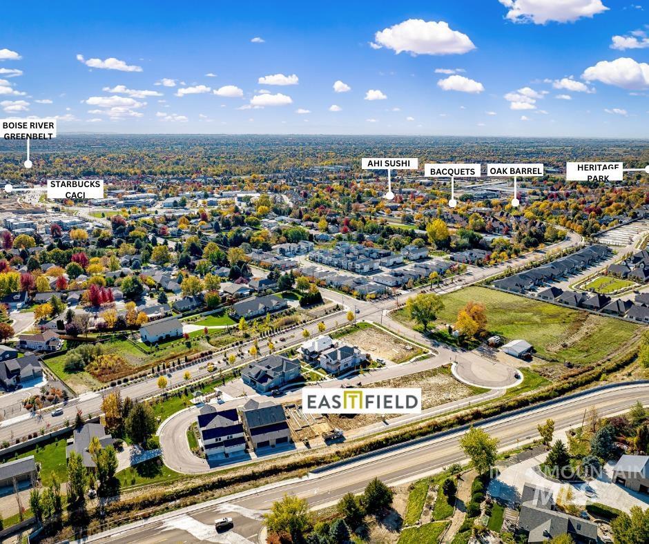 Low-maintenance luxury living just steps from downtown Eagle, nestled in a quiet boutique community! Rare main level master bedroom! Spa-like ensuite w/ dual vanities, full tile shower w/ built-in bench, & WIC. Stunning 18` ceiling in living room w/ tapered gas fireplace & stained beams above. Gourmet kitchen w/ dove-tail soft-close cabinets, under-cabinet lighting, enormous quartz island, upgraded SS LG appliances (air fry oven!), decorative range hood, beverage bar w/ open iron shelving, & walk-in pantry w/ barn door. Central dining room opens to private side courtyard perfect for outdoor entertaining. Upstairs offers 2 additional bedrooms, plus an office or flex space, & bonus room which is open to below. Deep alley-load garage, full landscaping, energy efficient HERS rating, & more. An easy stroll to great restaurants, Eagle Sat Market, Guerber Park, Boise River Greenbelt, Eagle Hills Golf Course, or hop on nearby HWY 55 for quick escape to the mountains! Quality & location at a remarkable val
