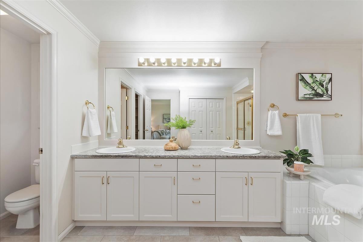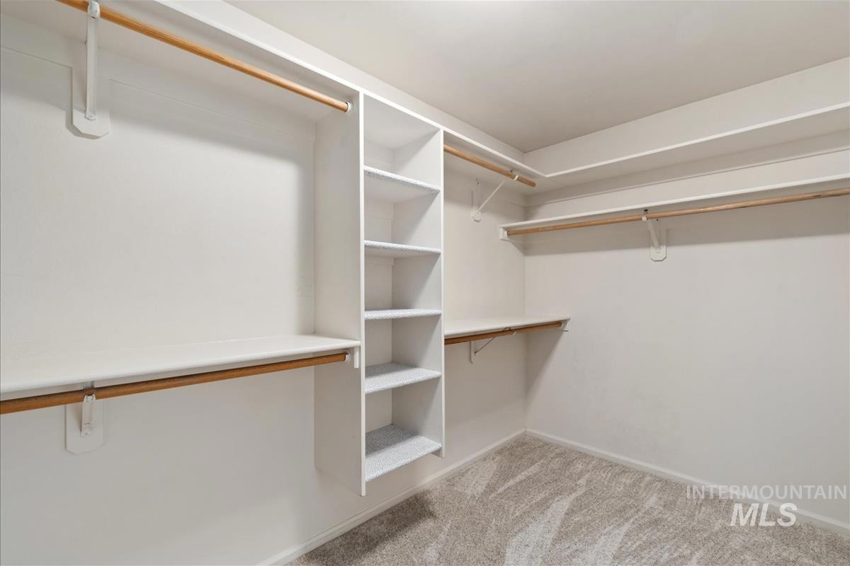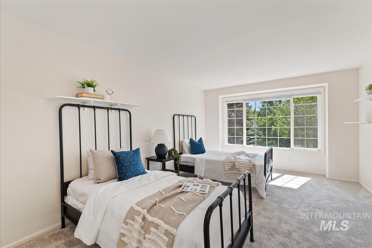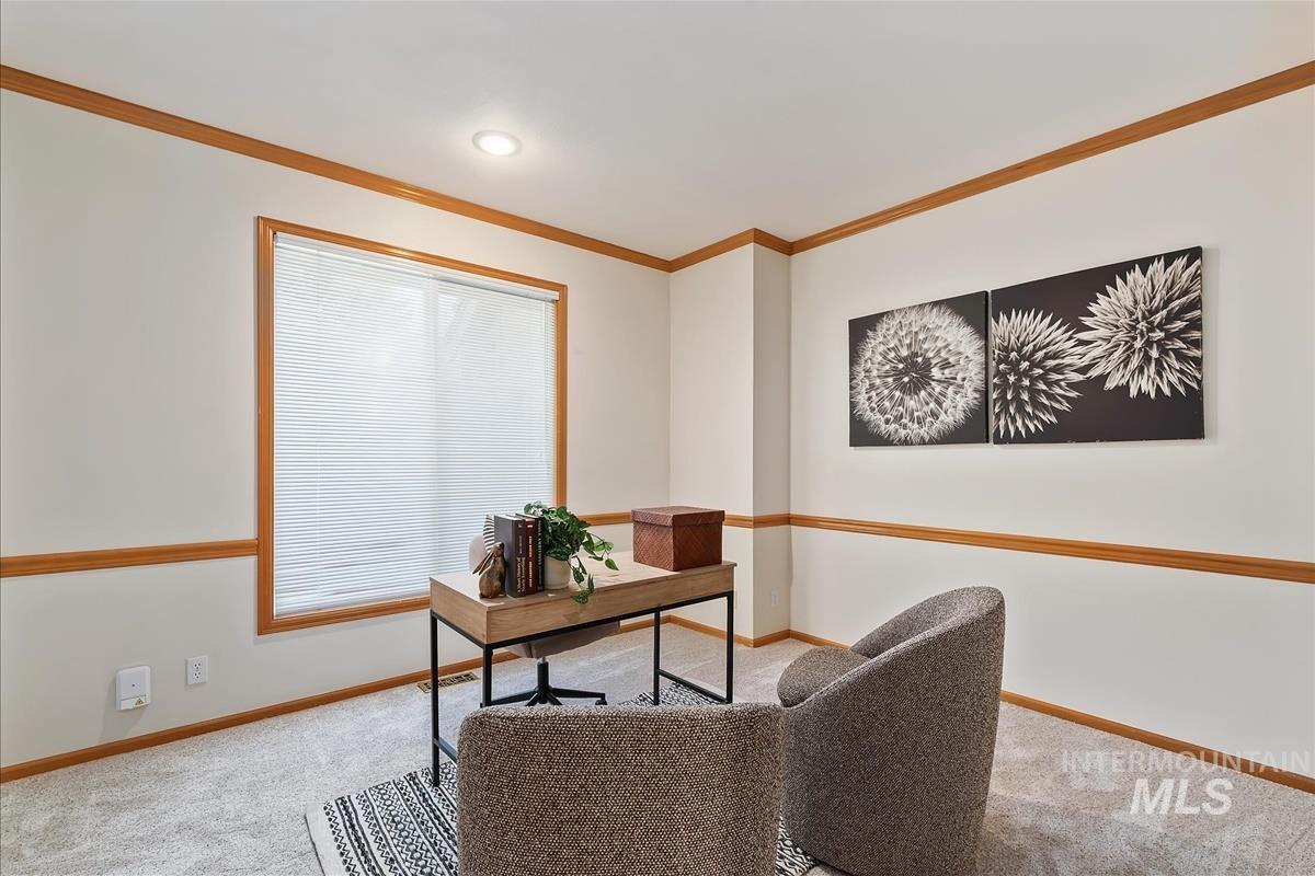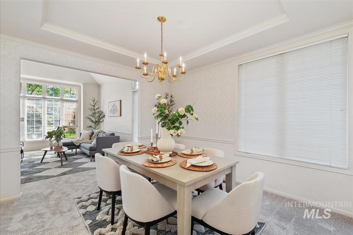 Nestled in the highly coveted Meadow Creek community, this beautiful home sits peacefully in a cul-de-sac. Volume ceilings greet you at the entry and flow seamlessly into the living room, where an oversized window frames the space with natural light. The kitchen is thoughtfully designed with granite countertops, double ovens, and a large window over the sink showcasing peaceful backyard views. Just off the kitchen, the casual dining area includes a built-in desk and generous storage. The family room invites you to relax with rich hardwood floors, oversized windows, and a striking stone fireplace as its centerpiece. Step outside to your own private park-like backyard—mature trees line the perimeter, offering shade, privacy, and a truly serene atmosphere. Living in Meadow Creek means access to ponds, a community pool, clubhouse, tennis courts, and walking paths—all just steps away. With the Boise River within walking distance, this home combines convenience, beauty, and lifestyle in one perfect package.