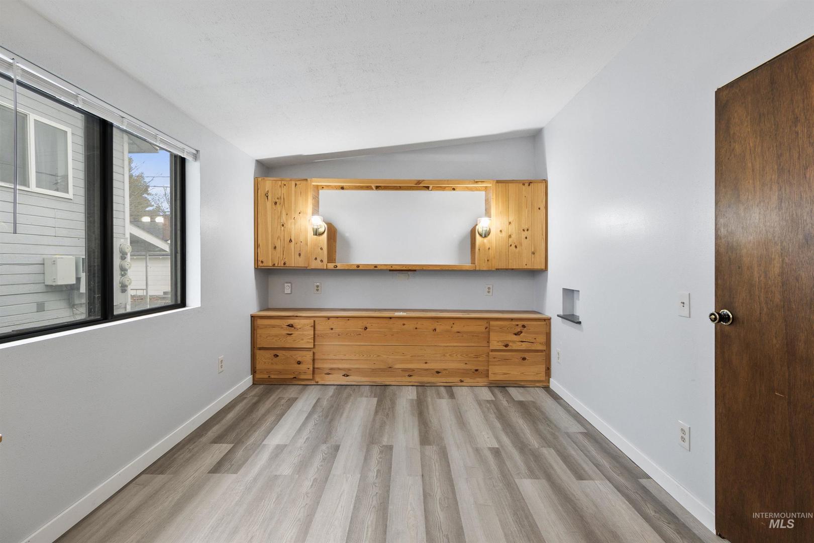 This two-bedroom home sits on one level and is in great condition both inside and out. Enter the living room and be one of the first to walk on the new vinyl-plank floors while being flooded with natural light from the large windows. There are two bedrooms; the smaller one makes a perfect office, nursery, or guest room. The master is spacious with built-in cabinetry and lots of space. The Kitchen has plenty of storage, space for your culinary and other projects, and a custom wood backsplash. Got projects? This house has lots of room in the 2-car alley-loaded garage with a full 3rd bay for tools, toys, or storage. The storage space doesn`t end there; there`s even a storage shed in the yard! Zoned Residential Office (RO) in the City of Moscow, this location is ready to go; convert the garage into a 2nd living space, or you could use the house as an office with great visibility. This property is a great investment for a multitude of reasons, and especially because of the great modularity that RO zoning allows for permitted uses in addition to single family homes also, offices, apartments, daycare, health care, storage, and so many more uses. Affordable and ready to move into, this property is a great investment with a ton of options for now and in the future!