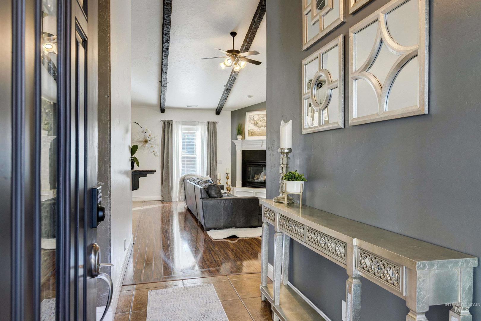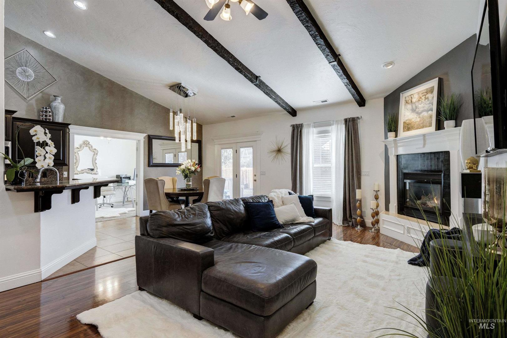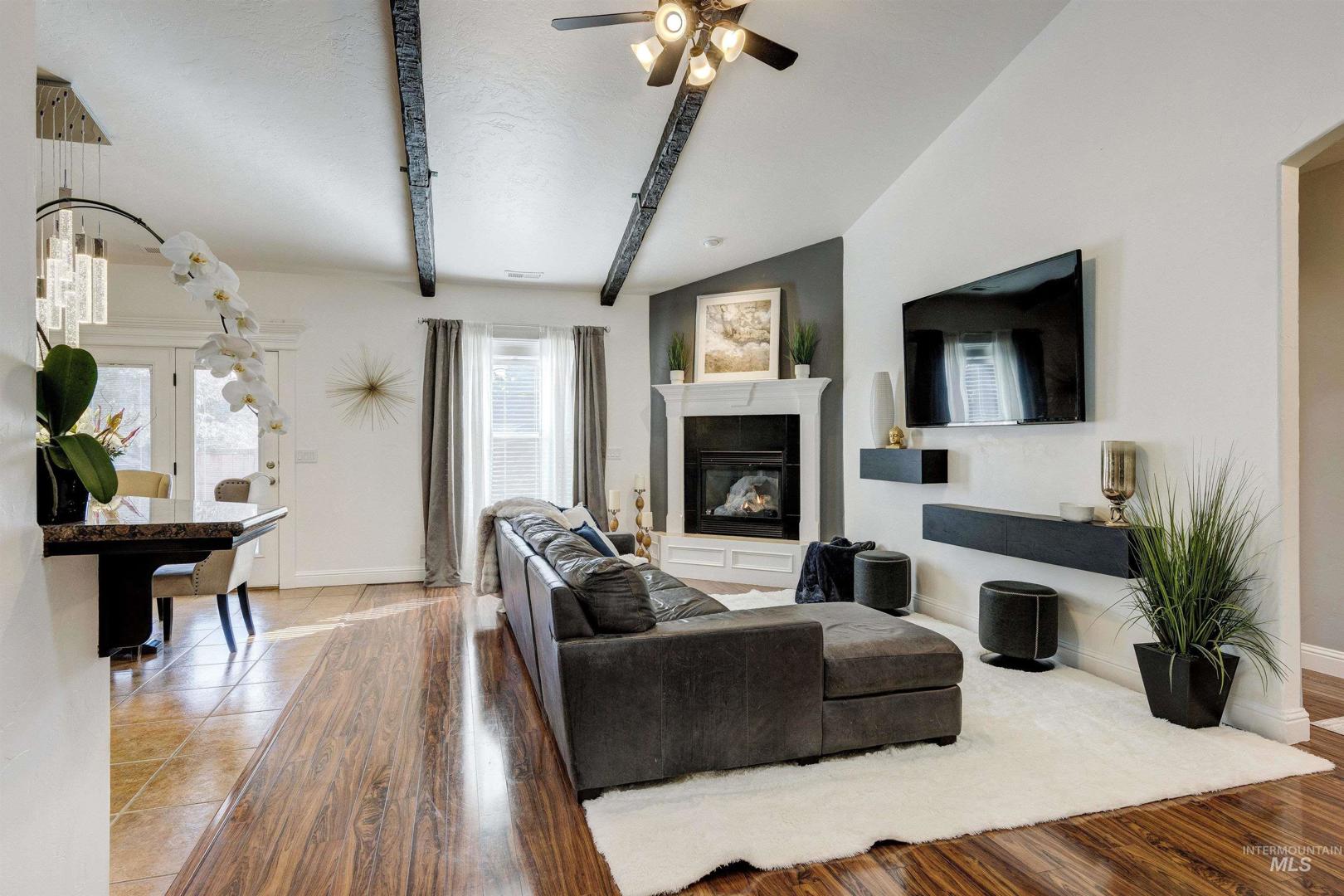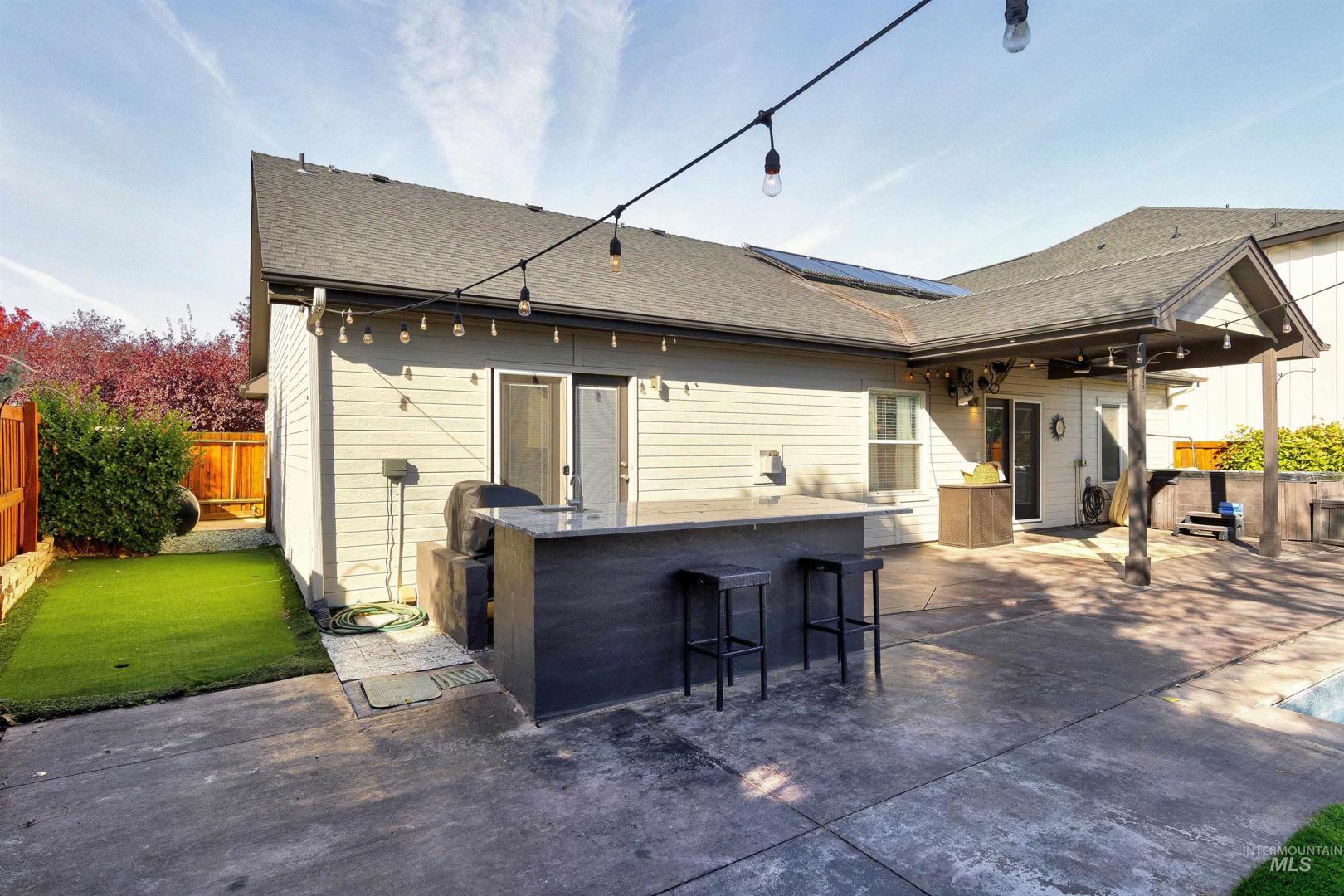 A beautiful gem in Lochsa Falls - close to everything Meridian has to offer in a beautiful subdivision with mature landscape and a community feel with paths and parks. Built in 2005 2079 Marten Creek is a 4 bedroom, two bath with a pool, outdoor fireplace and barbeque for fun outdoor living, Inside 9 ft vaulted ceilings with beams, and a cozy corner fireplace in the living room. Easy maintenance free living with low utilities due to a heat sink solar heating system which can reduce energy bills by 30-60% with efficient energy transfer. Single level living with large master and walk out patio doors, dedicated office, 4 bedrooms and plenty of storage space. Garage is finished with cabinets and can be used as a video game room with screens. In home stereo speakers, outside pool lighting and drip system. Charming front walk way contains the neighborhood small koi pond - be sure to feed the fish on the way out. Hot tub on patio ready for new owners and toasty soaks as winter approaches.