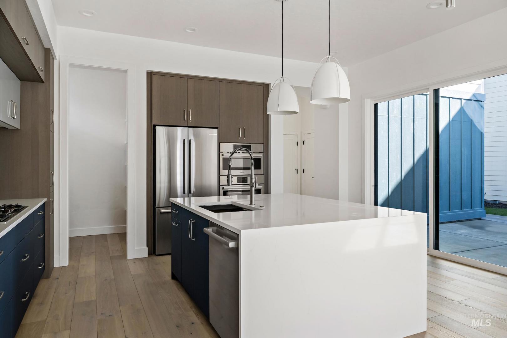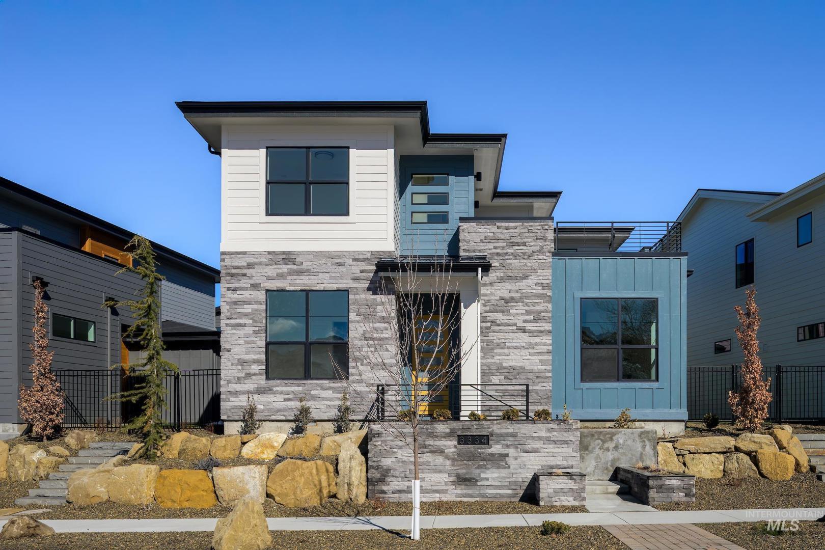 Welcome to the Santa Monica by Brighton Homes, located in the master-planned Cartwright Ranch community, perfectly situated across from Dry Creek with incredible views of the Boise Foothills and no front neighbors. This home emphasizes open living and outdoor enjoyment. The spacious main floor features an open kitchen, dining, and family room that seamlessly connects to a large patio - perfect for entertaining. A private den offers flexibility for work or hobbies. Upstairs, enjoy a luxurious primary suite with a tray ceiling, a large walk-in closet, and a spa-like en-suite bath. Two additional bedrooms, a loft, and a second-story outdoor terrace with a conveniently situated beverage center - offering ample space for relaxation and gatherings. Thoughtful details like a large pantry with built-in cabinetry and elevated finishes throughout this home add both function and style. Enjoy access to plenty of walking and hiking trails, parks, a community pool, clubhouse, and gym, all this just minutes from downtown Boise and other outdoor recreation. This home offers the best of modern living and scenic views, creating a perfect balance of comfort and convenience. *Photos Similar*