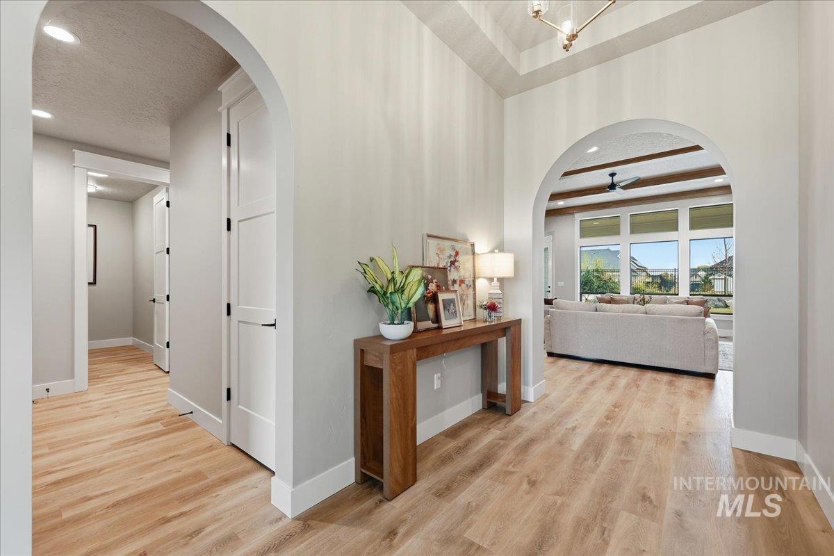 Builder incentive being offered! This stunning home features 4 bedrooms and 3.5 bathrooms, blending elegant design with everyday comfort. Tall ceilings, abundant natural light, wood beams in the great room, and custom built-ins and cabinetry throughout showcase exceptional craftsmanship and attention to detail. The breathtaking gourmet kitchen is a chef’s dream, complete with a leathered granite island countertop, quartz backsplash, 6-burner cooktop, built-in double ovens, wine fridge, and an oversized pantry. A nearby Tech Room provides the perfect space to stay organized and connected. The primary suite offers a serene retreat with a spa-like bath featuring a soaking tub, dual vanities, a walk-in shower, and a large closet with direct access to the laundry room. A private guest suite ensures comfort and privacy for family or visitors. Modern amenities include an Amazon Smart Home system for effortless control of lighting, temperature, and security, along with a tankless water heater for endless hot water. Additional highlights include a laundry room with sink and workspace, a spacious garage, and an impressive 46’ RV bay with a 14’ tall door. Backing to a community common area, the backyard feels open and expansive—ideal for relaxation or entertaining. Residents of Osprey Estates enjoy regional walking paths, wide-open common spaces, and breathtaking panoramic views.