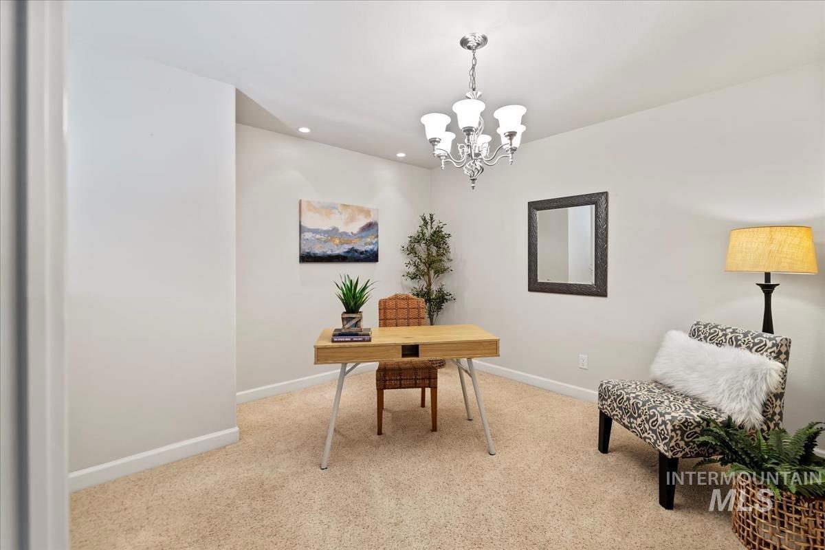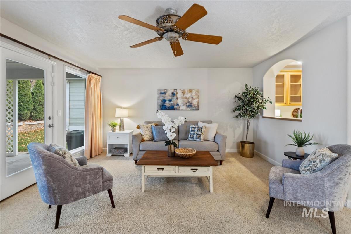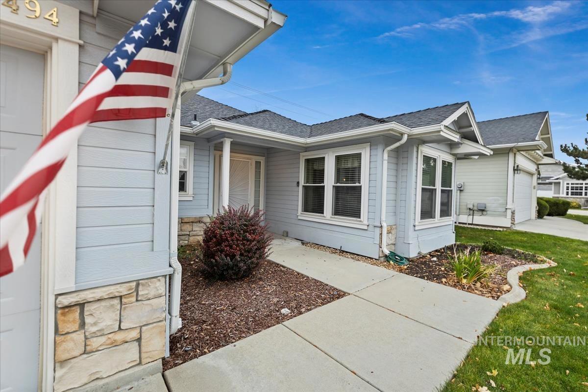 Welcome to The Lake at Cherry, a premier gated 55+ community in Meridian with no land lease. This 2-bedroom + den/office, 2-bath home with a den offers 1,438 sq. ft. of well-designed living space. The open floor plan creates a comfortable flow, while the den provides flexibility for an office, hobby room, or guest space. Step outside to a covered back patio, an inviting spot to relax or entertain. Recent updates include a new furnace and A/C (2023) for year-round comfort and confidence. With the HOA handling both front and rear landscaping along with sprinkler blowouts, you’ll enjoy a true lock-and-leave lifestyle. The community’s clubhouse, pool, and secure gated entry create the perfect setting to stay active, connect with neighbors, and enjoy peace of mind.