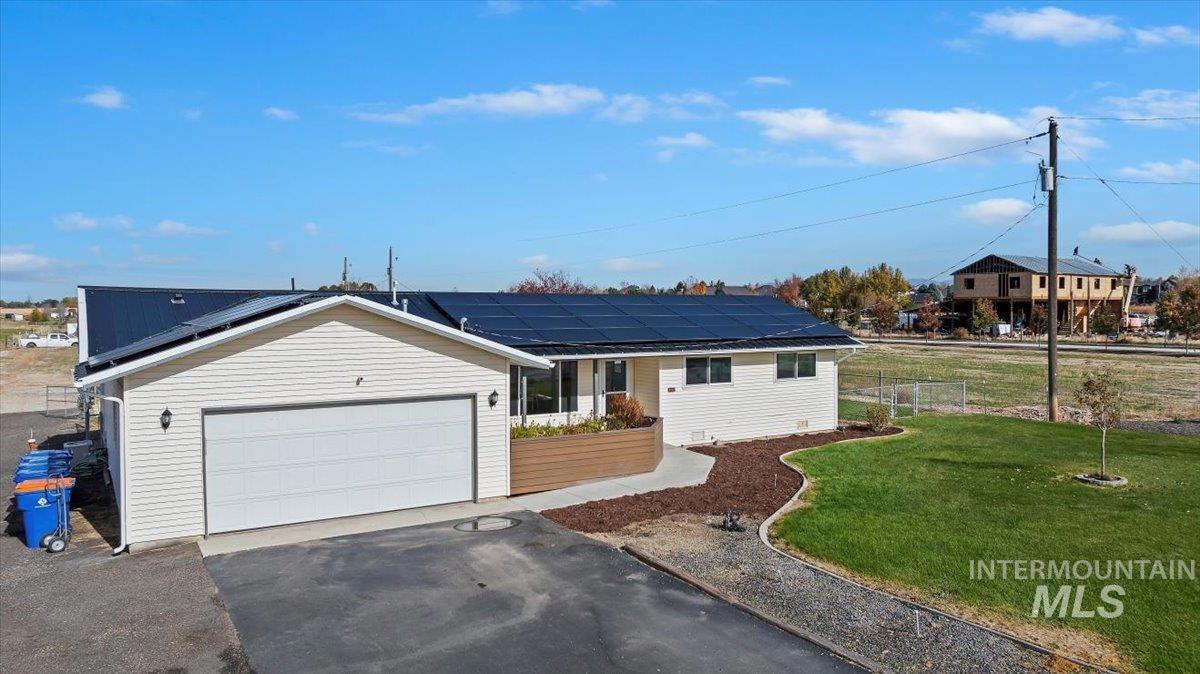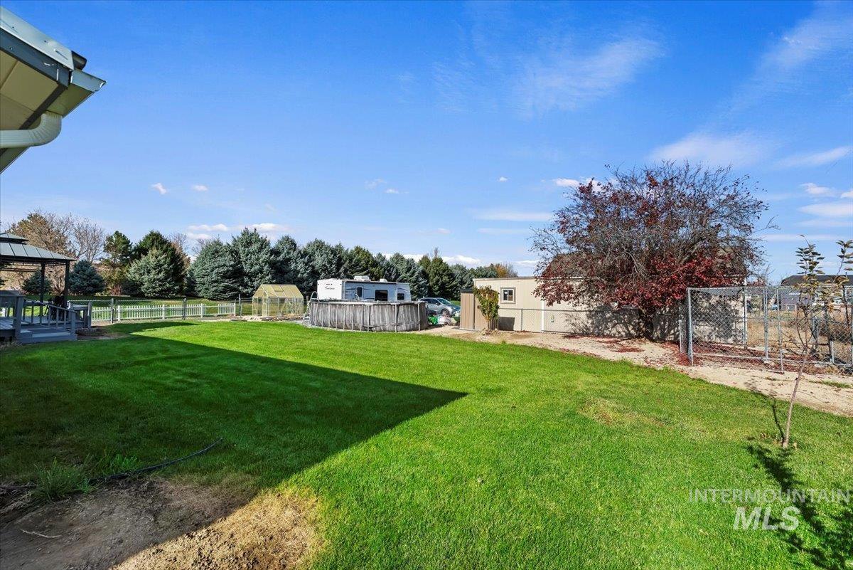 Discover the perfect blend of peaceful country living and modern convenience! Nestled on 1 full acre, this charming 3 bedroom, 2 bath home offers plenty of space to spread out, without being too far from town. Step inside to find 1,276 sq. ft. of inviting living space, featuring fresh interior paint, kitchen boasts new cabinetry with crown molding, stove has pot filler, water softener with RO, and a nice sized family room! Newly painted deck, perfect for morning coffee overlooking your above-ground pool on solar! Separate heated and cooled Office/She Shed/Man Cave provides the ideal remote workspace or play space. You’ll also find a 2-car garage, you have room for RV parking, as well as a storage shed, greenhouse! Additional electrical meter at back of property ready for you to build your new shop! With no HOA, your own private well, vinyl siding, metal roof, sustainable home solar - will $ave you $. This property offers freedom and efficiency! A country gem with privacy, and practicality! Will not last!