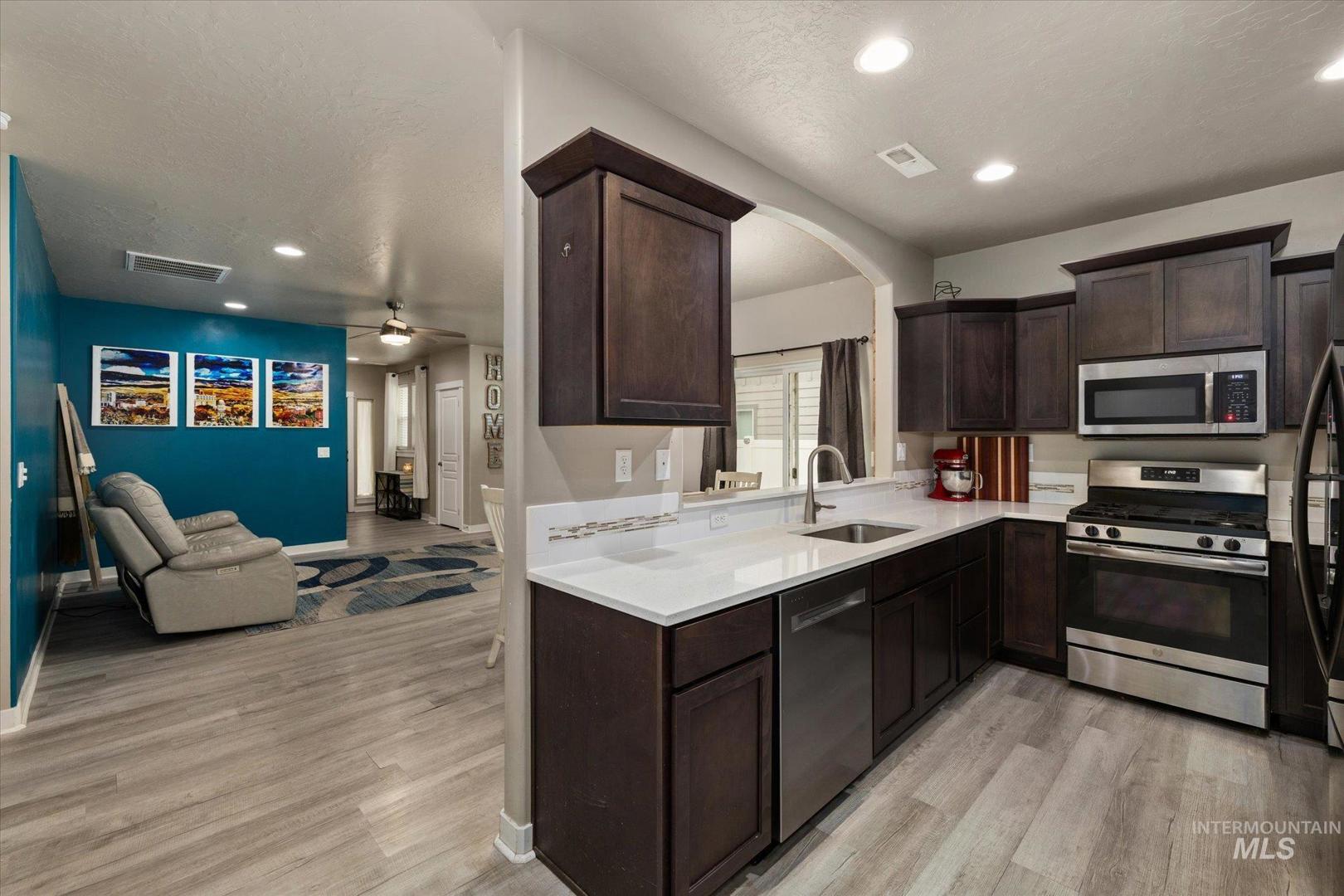 Adorable home that is ready for new owners! Located in a quiet and convenient subdivision which makes for simple commutes around the valley. Highly functional layout with LVP flooring, accent walls and just the right amount of space! The kitchen features quartz countertops, stainless gas range, new stainless dishwasher, soft-close drawers and a cute passthrough window to the dining area. The primary bedroom has a private en-suite with double vanity, shower with glass door and a walk-in closet. Fully fenced backyard with large paver area and plenty of yard space behind the home. Don`t miss this wonderful opportunity to call this your new home!