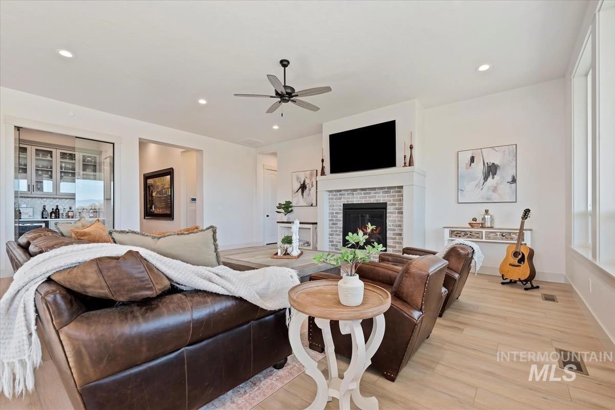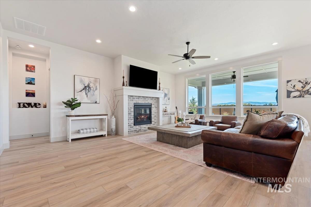 Welcome to your dream home in one of the area`s most sought-after community, River Park Estates! This beautiful single-level residence offers unobstructed views and an exceptional lifestyle with community amenities unlike most! Includes a Farmhouse style clubhouse that is stunning, over size pool, pond access, fishing, kayaking, pickleball courts on the river, firepit areas located on river and pond, for private residents only. You have private access to the Boise River for floating and fishing or just sitting on the grass enjoying a firepit and relaxing! Inside this beautiful home you will walk in and find a wide grand foyer that takes you directly to the living room and views! This home features, 3 spacious bedrooms, 2 full baths, and a dedicated wine room - perfect for entertaining! This chef`s kitchen features upgrade Bosch double oven & gas cooktop, large island and thoughtful layout that makes cooking and gathering a joy. Relax in the east-facing backyard with a cover patio, ideal for morning coffee or evening dining while taking in the mountain views. River Park Estates offers Equine Facilities for those of you that want your Horses close to you! Enjoy comfort, community and natural beauty-all in one perfect home~!