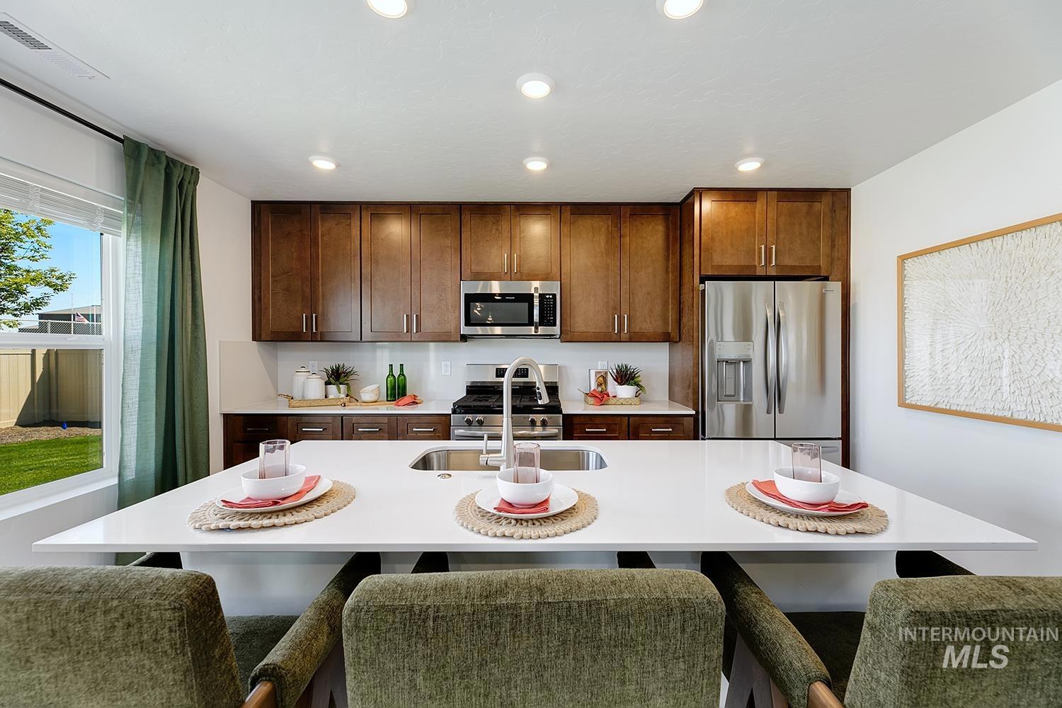 The Canyon Series combines thoughtful design with premium features. Every home includes Lennar’s Everything’s Included® package: stainless steel refrigerator, washer and dryer, window blinds, and fully landscaped yards. Kitchens are equipped with quartz countertops, a spacious gourmet island, stainless-steel appliances, and designer cabinets in multiple color options—plus convenient pull-out recycling and trash bins. Luxury vinyl plank flooring enhances the beauty of kitchens, bathrooms, and laundry spaces. Energy-efficient systems and high-end details like tankless water heaters and garage keypads make this series a smart and stylish choice. This home is the former model home so you will also find numerous design features added, making this home one of a kind. Carlton Meadows is a charming neighborhood with open green spaces in the town of Middleton, with easy access to walking trails, city parks, shopping, and the freeway. If you are looking for small town lifestyle with city amenities, Carlton Meadows may be your new home sweet home.