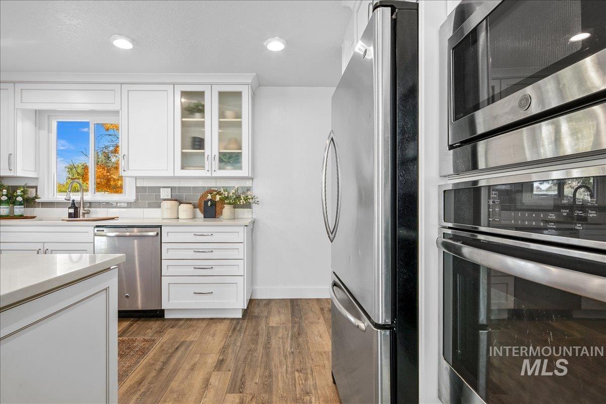 Prime Boise Bench location minutes to everything! This beautiful bungalow boasts 4 bedrooms, 2 bathrooms & 2 living room areas. A single level with full basement + ingress/egress windows, this thoughtfully updated home sits on a large, quarter of an acre lot. Designer kitchen featuring a breakfast bar, quartz countertops, white cabinetry, built-in stovetop & sleek stainless-steel appliances. A full, modernized bathroom on each floor. LVP throughout, plus newer roof, plumbing, windows & doors. 1 car garage with a EV charger + RV parking. Just minutes from downtown Boise, Boise State + the airport, it exudes warmth & character... inviting living spaces, abundant natural light & a private backyard designed for relaxing or entertaining.