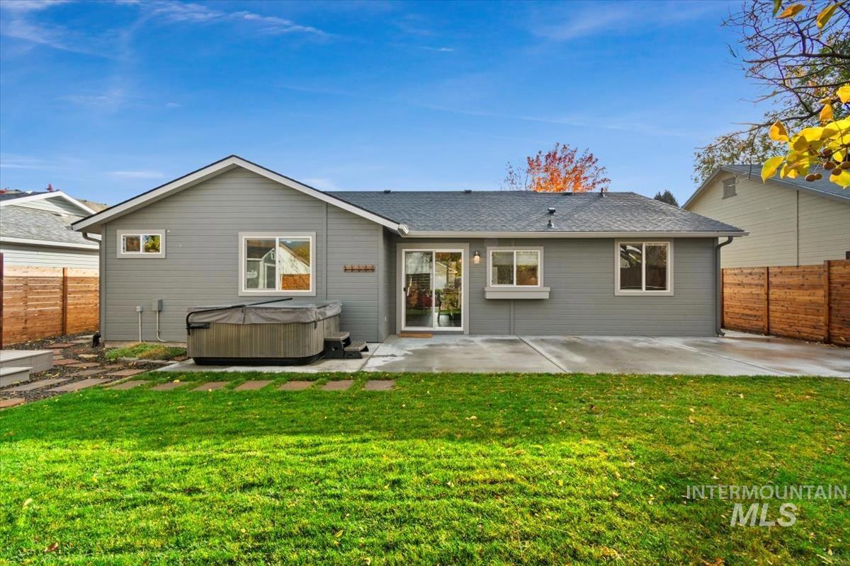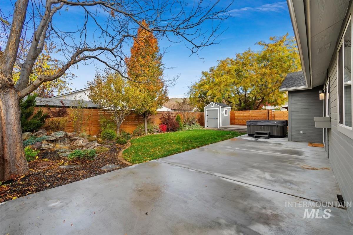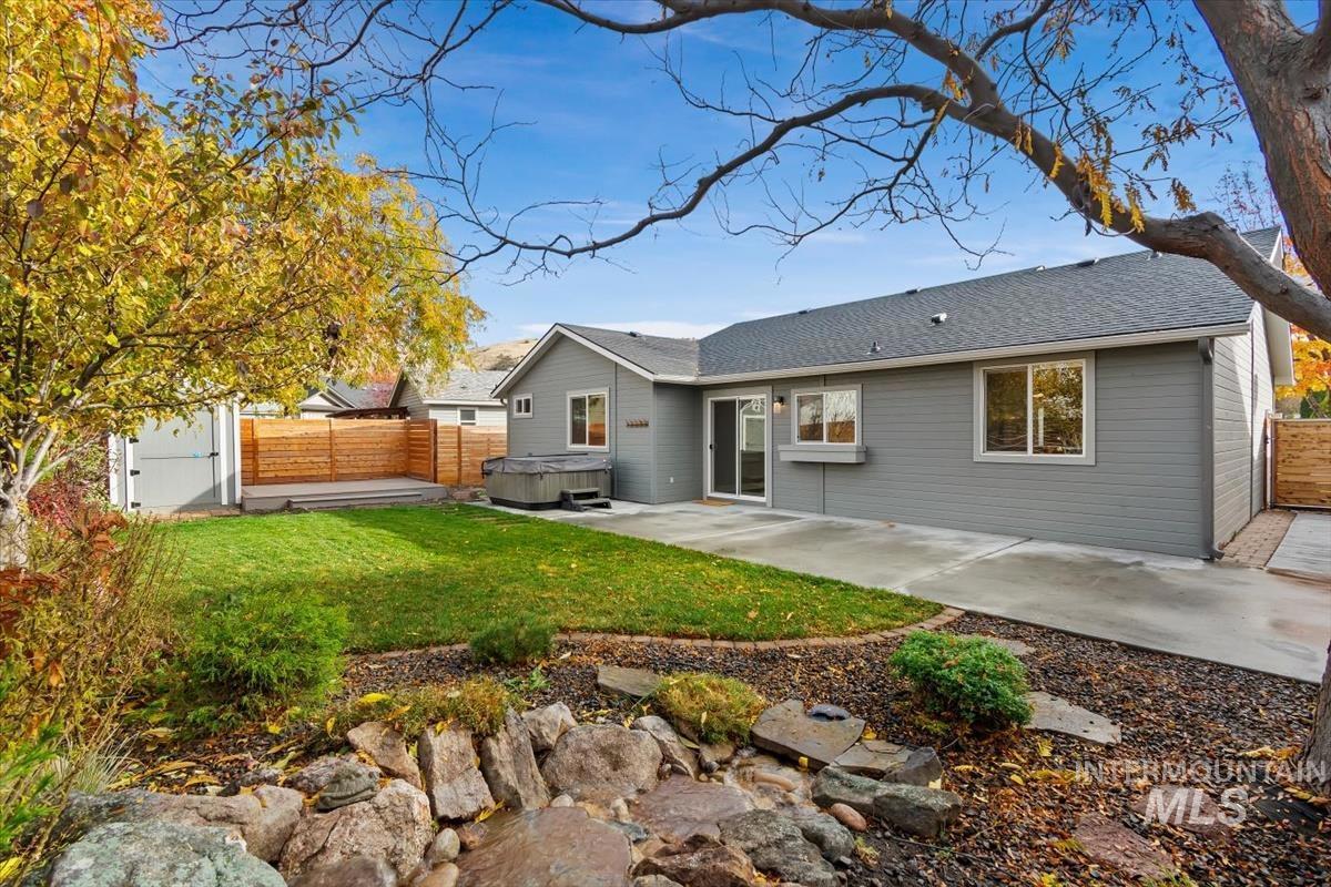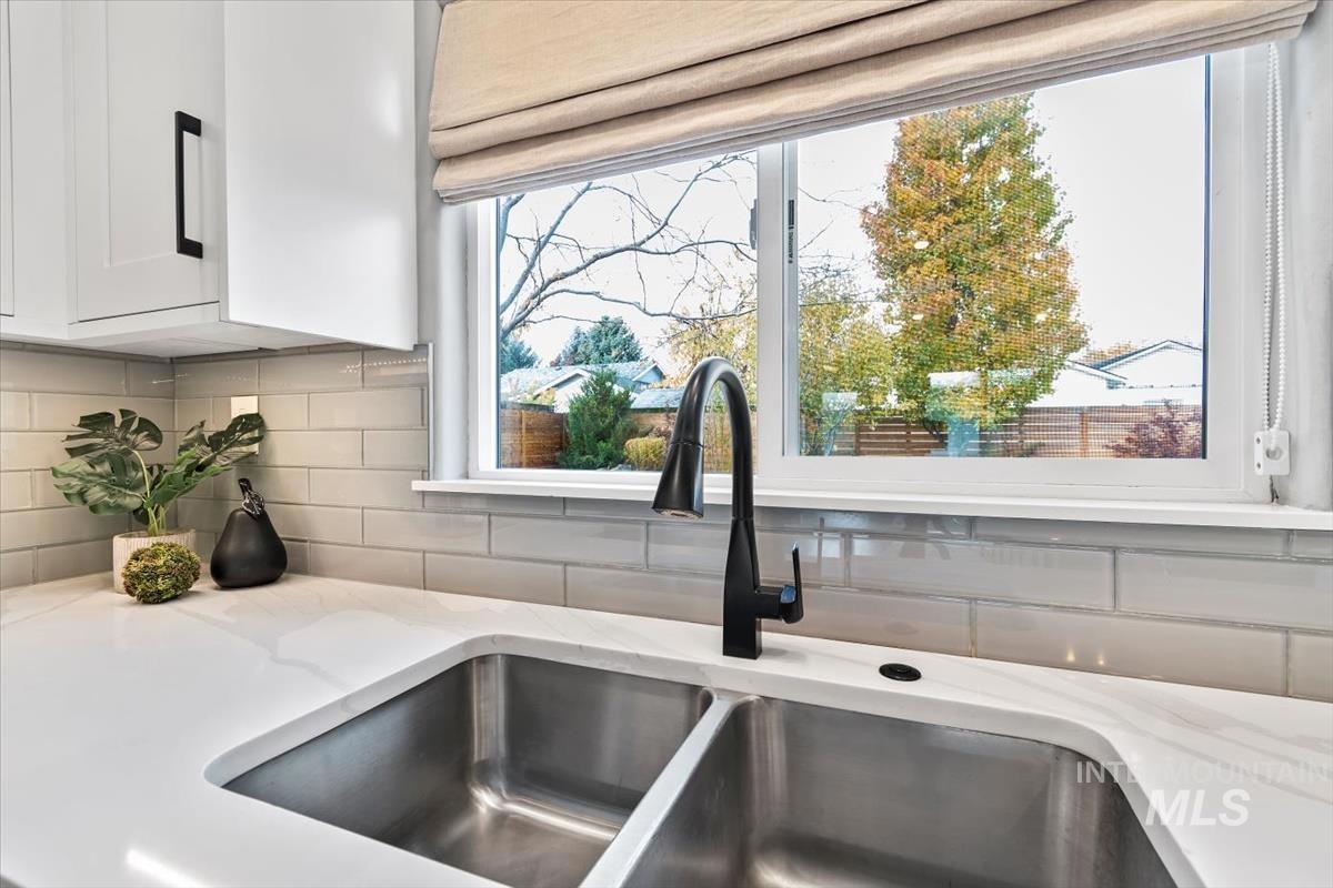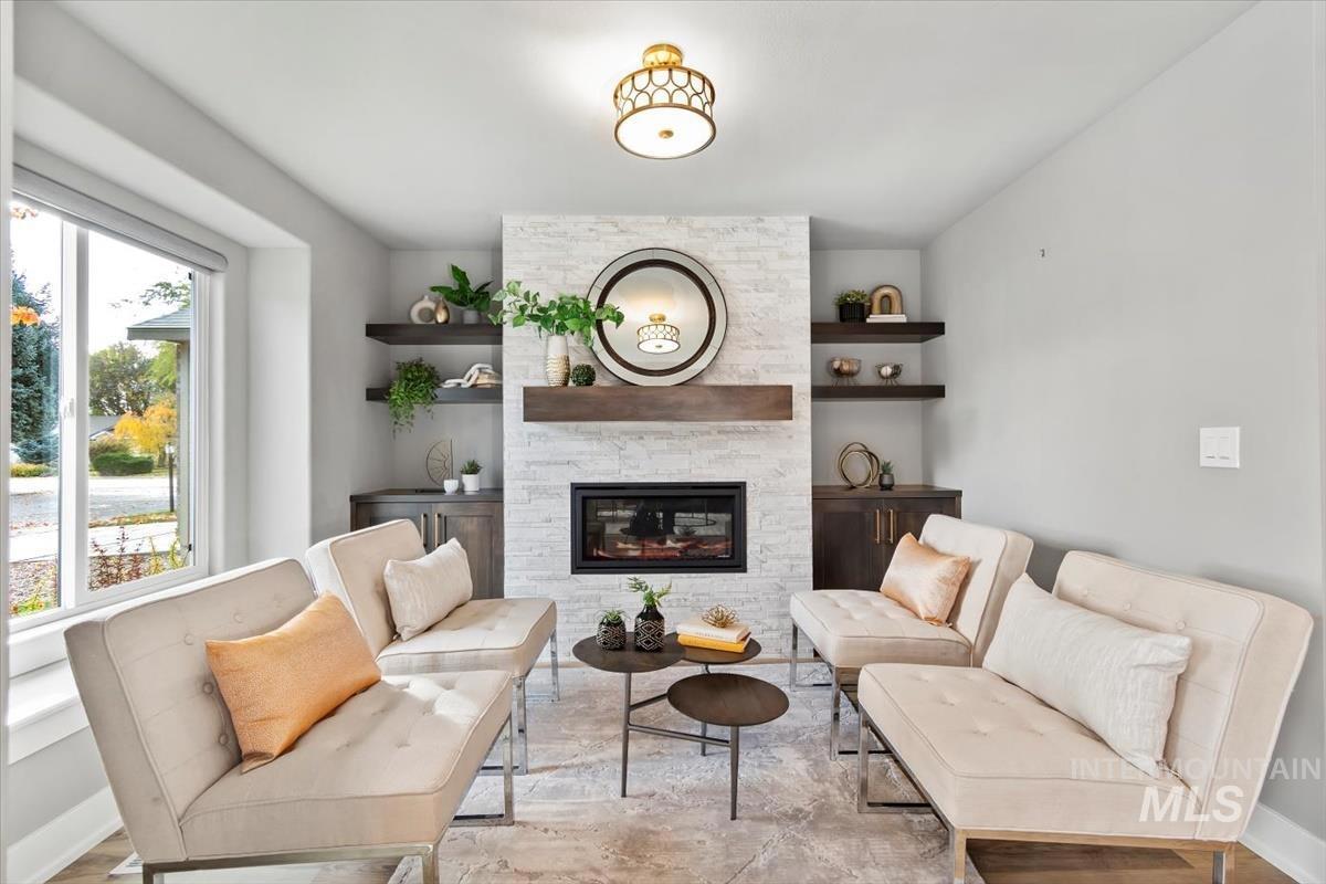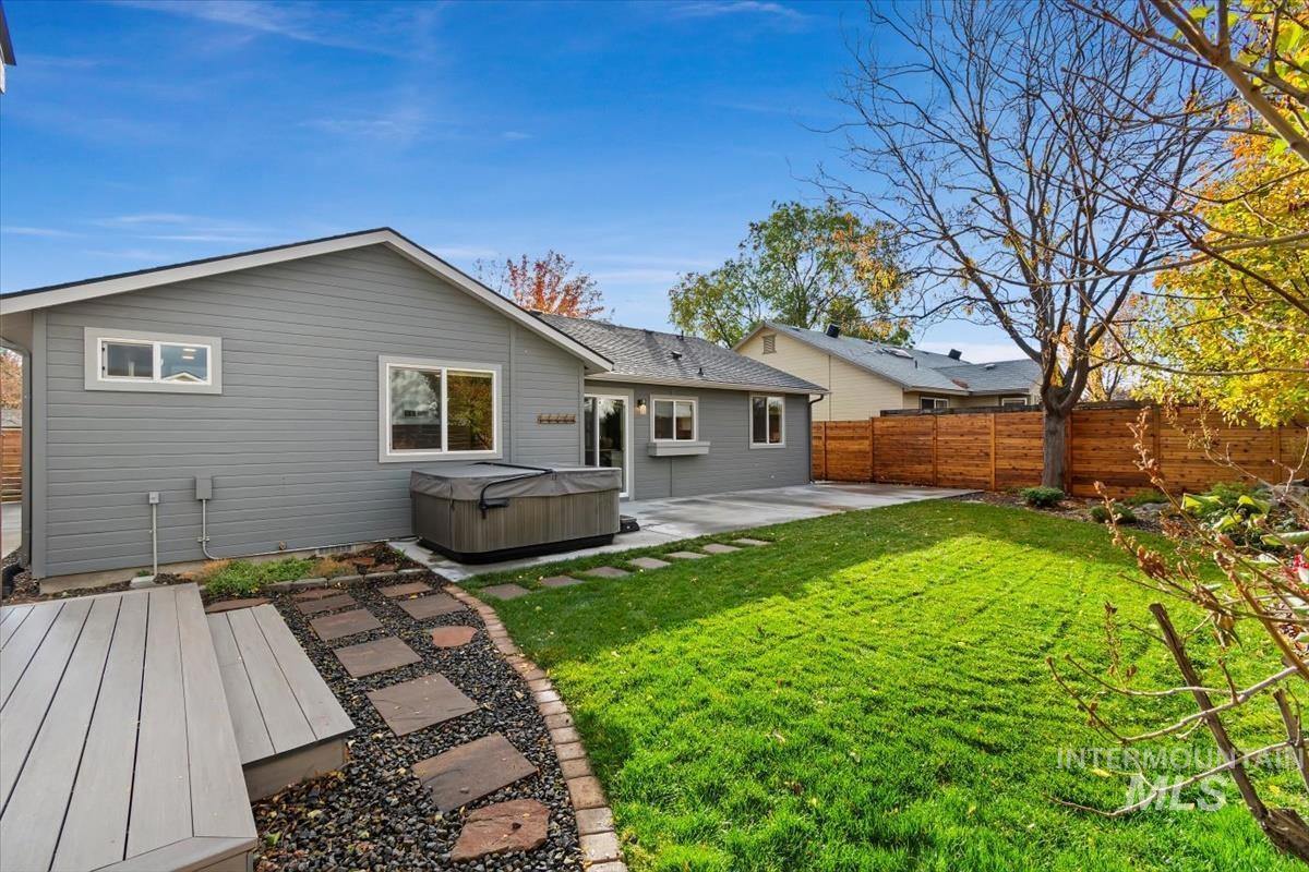 Rare gem in northwest Boise! Reimagined from the studs in 2022, this single-level stunner blends sophisticated design with modern comfort in every detail. The open great room welcomes you with vaulted ceilings, high end remote window treatments and LVP throughout. Open to the cozy den with stone-surround gas fireplace and custom built-ins with elegant gold hardware, the perfect mix of warmth and refinement. The designer kitchen showcases two-tone cabinetry, stainless steel appliances, gorgeous quartz countertops, and oversized island ready for all of your family gatherings. The primary bedroom offers a serene retreat with dual vanities, full-tile shower and a spacious walk-in closet. Step outside to your private backyard sanctuary, complete with tranquil water feature, wrap-around concrete patio, elevated sitting deck and eye catching horizontal fencing surrounded by mature landscaping. Every inch of this home has been thoughtfully curated, new roof, new windows, fresh interior and exterior paint in 2022 and clever storage solutions including built in pantry & microwave, a custom mud bench & expanded laundry with workspace and sink. Nestled in a highly desirable, established NW Boise neighborhood, this home offers turnkey living with timeless style and everyday luxury. Welcome home!