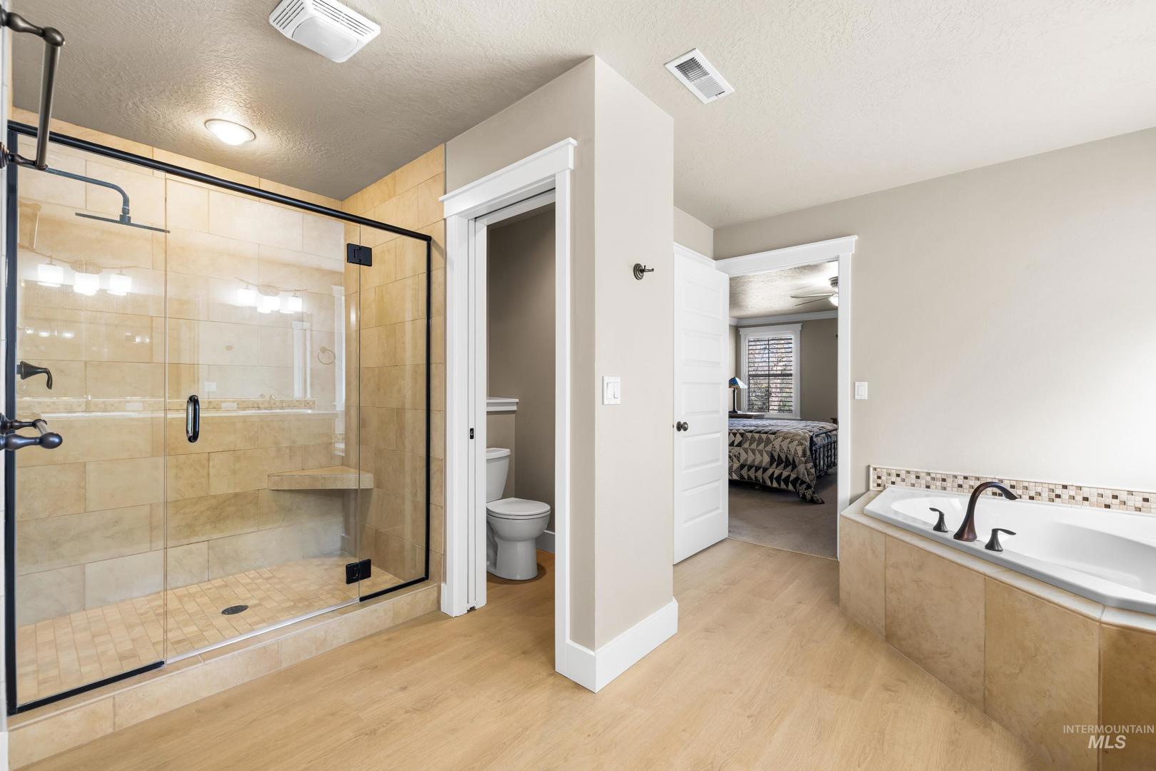 Located in Paramount, one of Meridian’s premier communities! This home delivers the space, layout, and lifestyle families crave. The main-level guest suite includes its own full bath and private patio and sitting room with downstairs laundry hook up, while upstairs offers four more bedrooms and a large bonus room for flexible living. The upper level primary suite features a unique adjoining space/room perfect for a nursery, office, or home gym! Backyard is meticulously maintained and full of extensive mature landscaping, and backing to a lush, HOA-maintained green space, the north-facing backyard provides privacy, serenity, and the feel of acreage without the maintenance, all just steps from the neighborhood pool, fitness center, and clubhouse. With five true bedrooms, a 3-car garage, and top-ranked schools in walking distance, this home offers space to thrive today and grow into tomorrow.