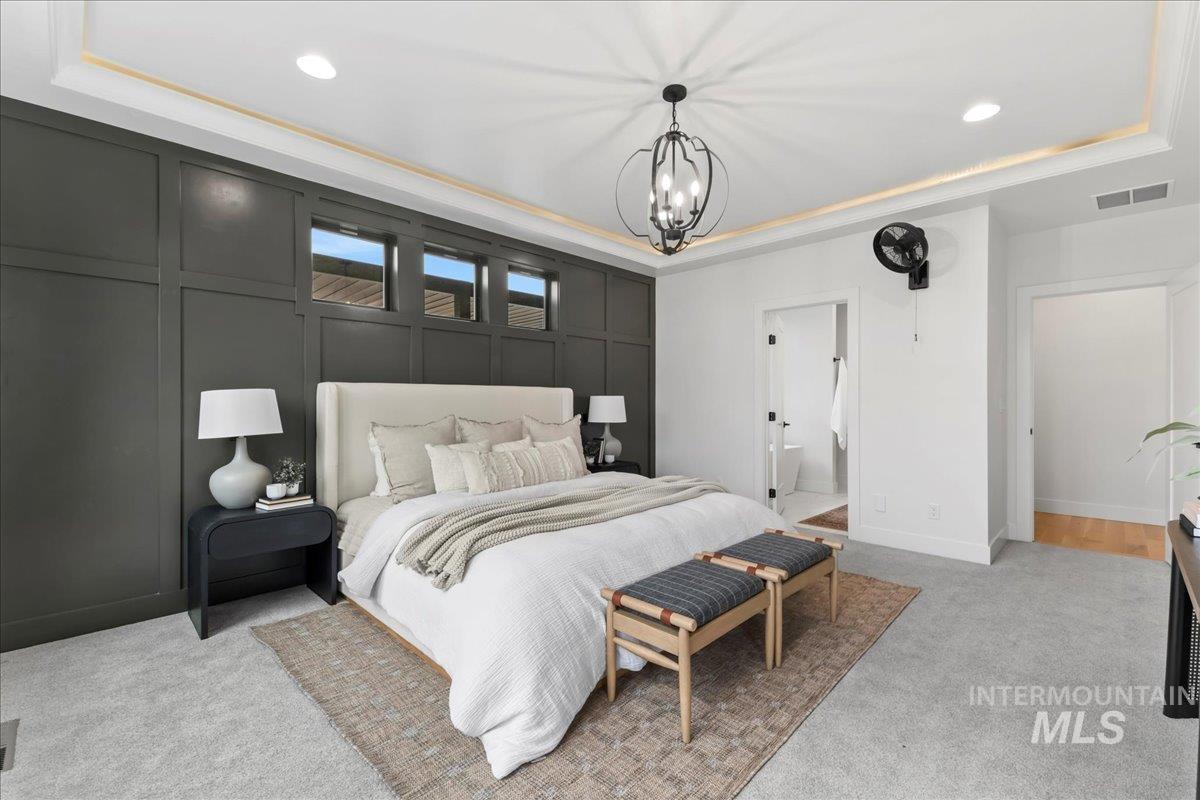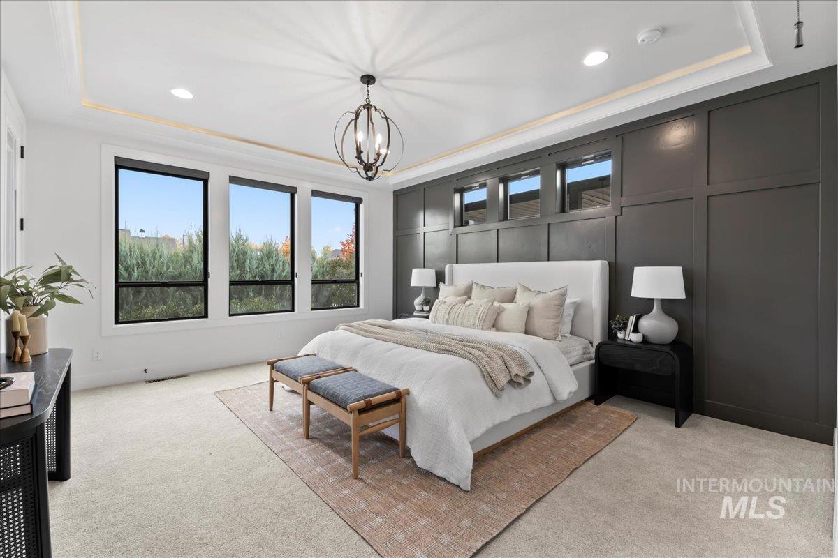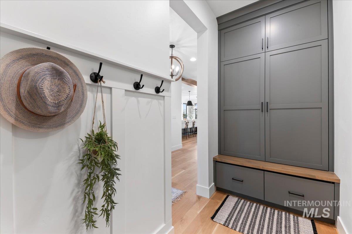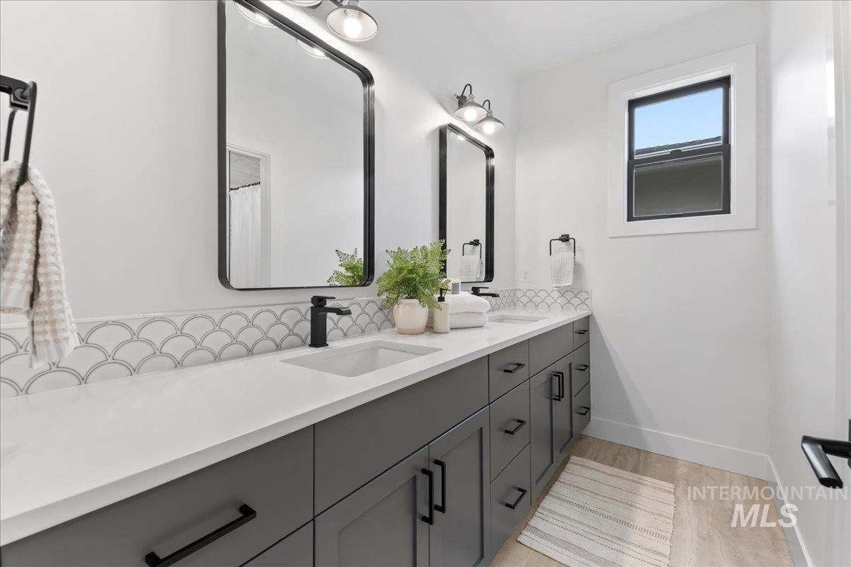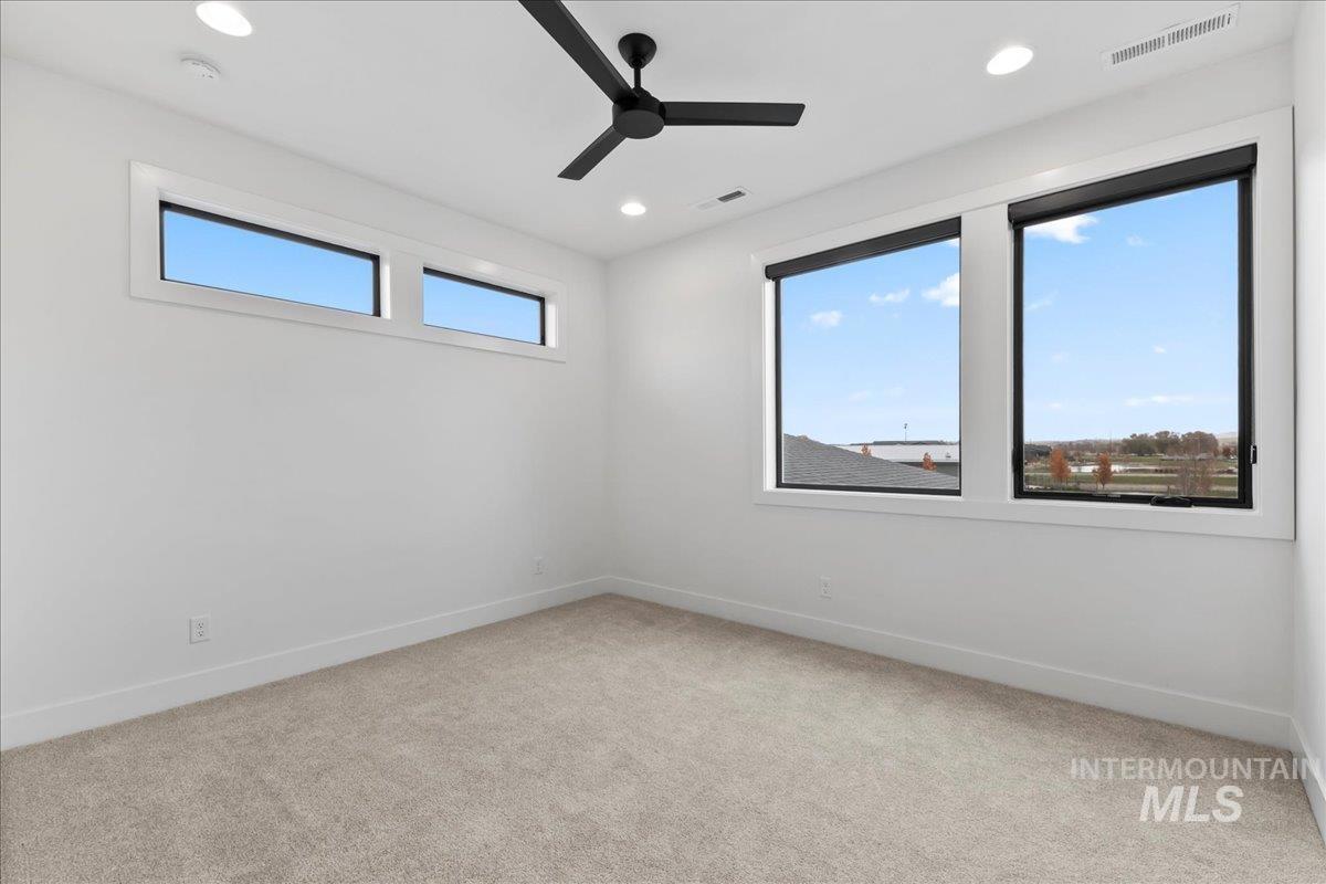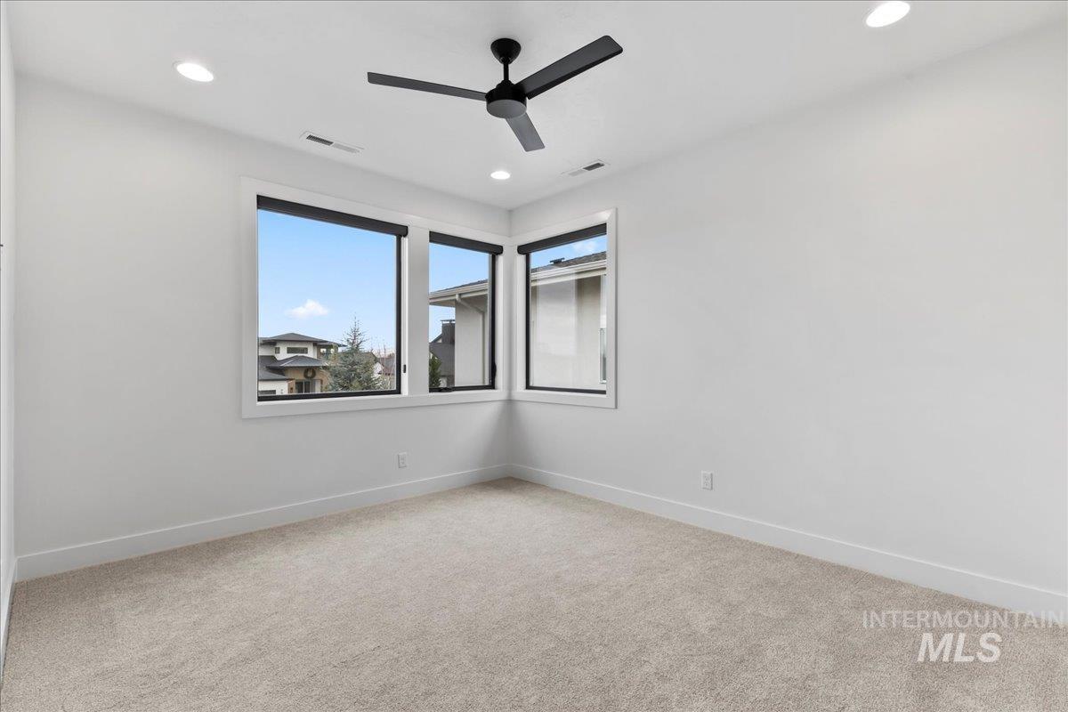 Property includes an assumable loan at 2.75% - please inquire for details! Thoughtfully designed newer-construction home by Shadow Mountain Homes in the sought-after Riverstone community. A highly functional layout with 4 bedrooms—one serving as a main-level office or guest suite adjacent to a full bathroom. An entertainer’s kitchen featuring premium Thermador appliances including built-in fridge/freezer, double ovens, and a gourmet cooktop, plus abundant cabinetry and gorgeous quartz countertops. Newly refinished cross-sawn white oak hardwoods add warmth throughout. The great room offers full wall sliders for seamless indoor/outdoor living and entertaining. Spacious primary suite with heated tile floors. Oversized 4 car garage with built-in storage. Low-maintenance backyard with professional turf, extensive landscaping for privacy, and a serene hot tub with gazebo. Riverstone sits along the Boise River with walking paths, stocked ponds, and an exceptional clubhouse and pool.