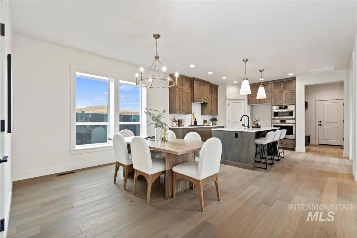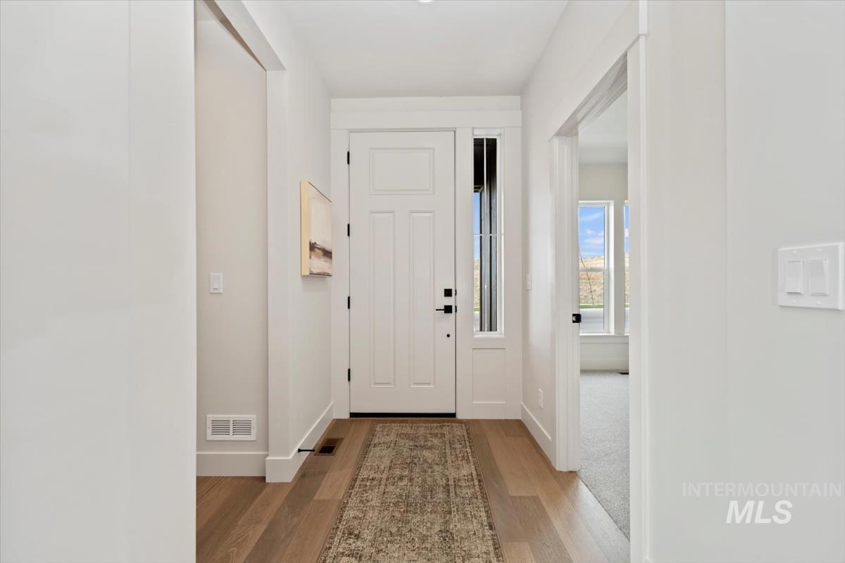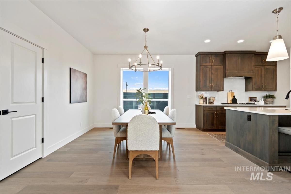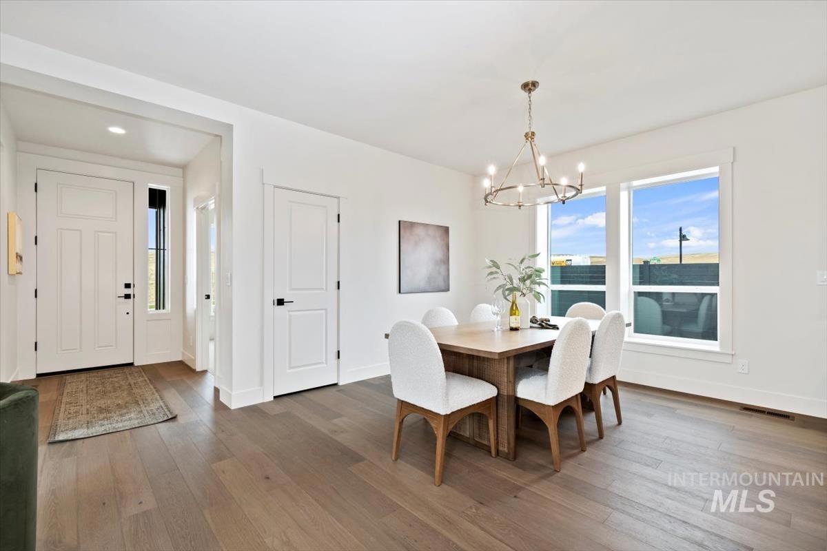 Welcome to Tresidio Homes, Orchid floor plan in the highly desirable new Eagle community Valnova. This premier new foothill community offering unmatched amenities including a sparkling lake with sandy beach, resort-style pool, modern gym, pickleball and tennis courts, and scenic parks. This stunning 1,650 sq ft home boasts 3 bedrooms, 2 baths, and a 2-car garage. Inside, enjoy elegant wood flooring in main areas, a spacious great room with striking wood beam accents, and chef-inspired Bosch appliances in the gourmet kitchen with quartz counters. Perfect for entertaining or relaxing, this home blends style, comfort, and functionality in a vibrant, active neighborhood. Experience the best of foothill living at Valnova!