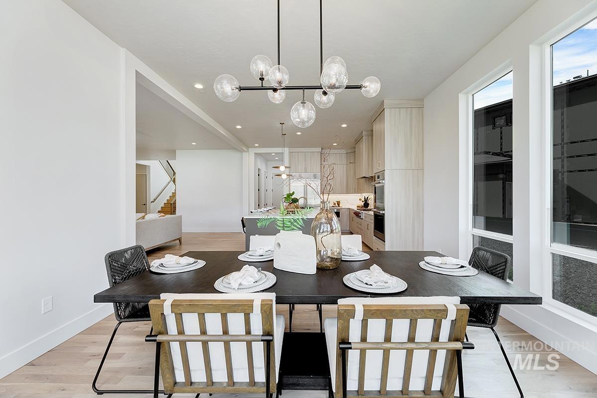 Ask about seasonal savings on this home! Experience the pinnacle of luxury in this stunning modern home, where sleek, world-class architecture meets impeccable craftsmanship. Step inside, where large, stylish windows circle the home’s interior, providing abundant natural light and sweeping views of the Boise Foothills from several rooms. The spacious great room enjoys an oversized linear fireplace and access to a covered patio that’s perfect for gatherings. Steps away is the chef`s kitchen, complete with ample storage, handsome cabinetry, and premium Wolf appliances. The primary is tucked away on the main level with stunning windows and a luxurious bath loaded with high-end features. Upstairs, a massive bonus room opens to a private balcony, ideal for taking in some of the best views in Boise. All of this is part of the luxurious Harris North community featuring endless views, foothill living, and easy access to downtown Boise, the River, trails, and large employers. Home is ready now.
