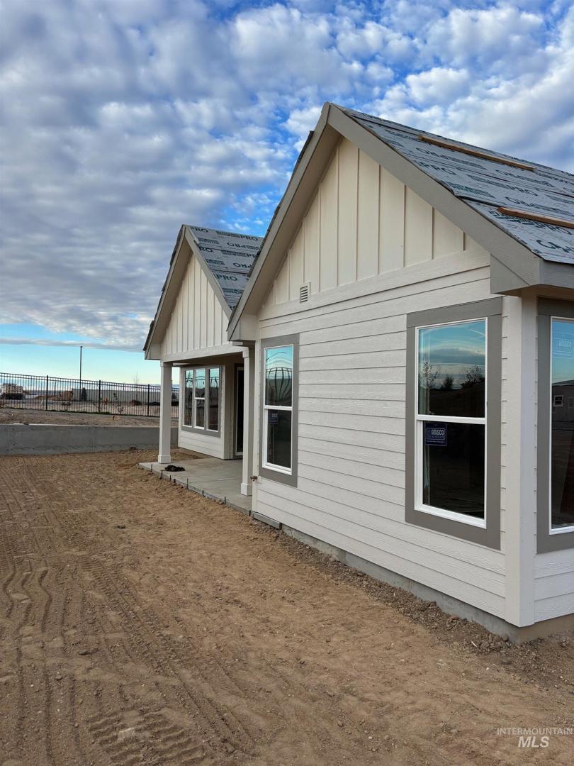 The stunning single-level "Hawthorn" floor plan by KJ Custom Builders, located in The Ridges within the new Mayfield Springs planned community. This home sits on a .21-acre corner lot with beautiful mountain views and borders a peaceful community walking path. Offering 2,164 sq ft, the layout includes 3 bedrooms, 2.5 baths, a true dedicated office, and a spacious 3-car garage. Interior features include 9` ceilings throughout, 8` doors, and a vaulted great room centered around a stylish fireplace insert. The open-concept living, kitchen, and dining areas create an ideal setting for gatherings and everyday living. The upgraded 400-amp electrical service offers enhanced capacity for reliable whole-home power, specialty equipment, and modern energy needs. A well-designed blend of function, comfort, and quality in one of the Treasure Valley’s most exciting new communities.