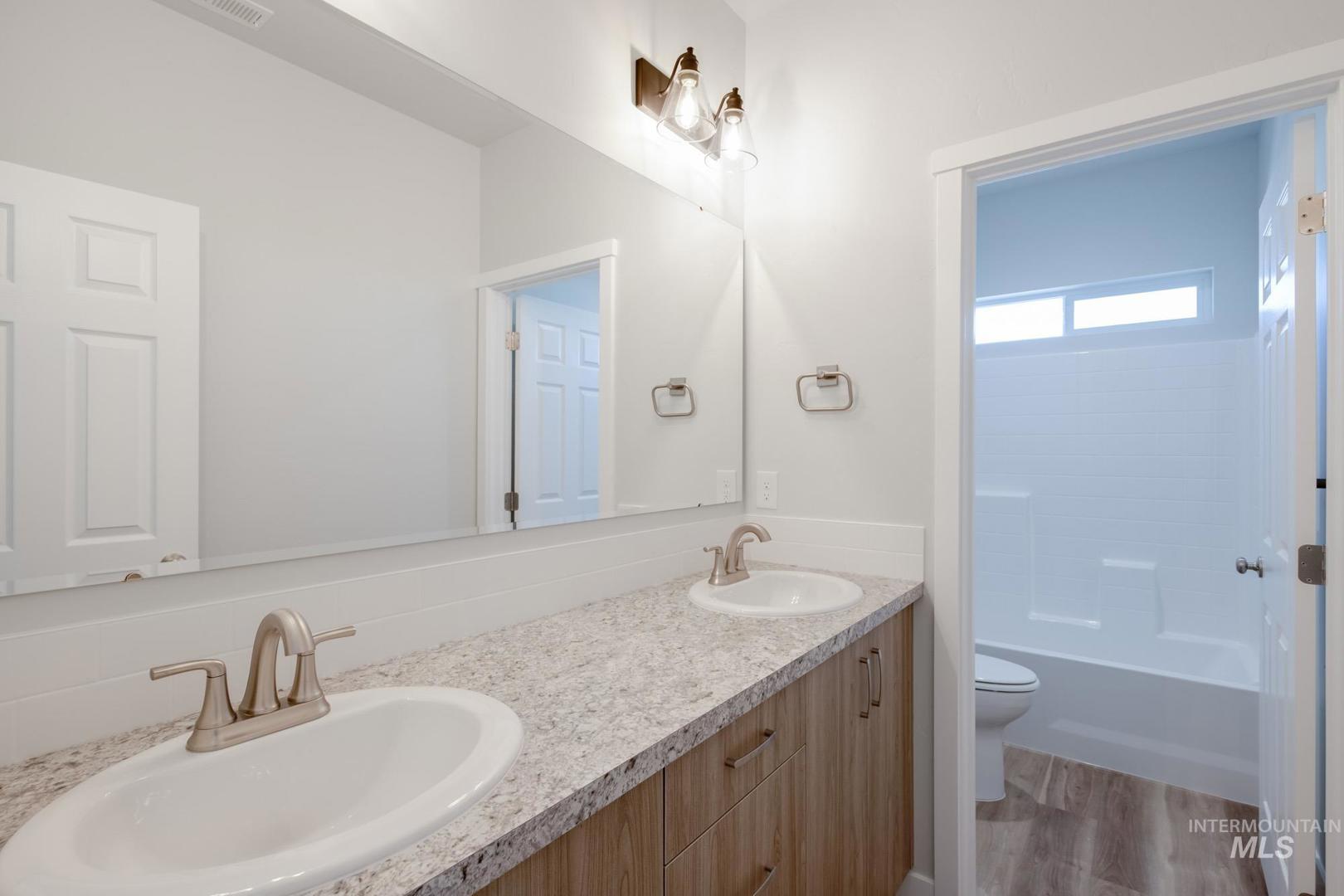 This brand new home located in vibrant Nampa, Idaho welcomes you with open arms. The Ponderosa 3937 floorplan is ideal for multi-generational living, offering dual primary suites, one on the main level and another upstairs, each designed for comfort and privacy. A striking 17’ entryway makes a bold statement, with an upstairs hallway overlooking the foyer below. Secondary bedrooms are thoughtfully positioned with two additional full baths upstairs, perfect for guests. The great room flows effortlessly to the patio for seamless indoor-outdoor living, and the kitchen shines as a central hub for everyday meals or entertaining. The upstairs primary suite features a dual walk-in closet and a soaker tub. Premium storage is found throughout the home. Potential RV parking available. **PHOTOS ARE SIMILAR**. All selections are subject to change without notice, please call to verify.