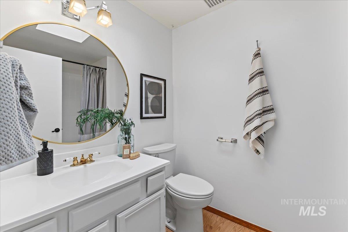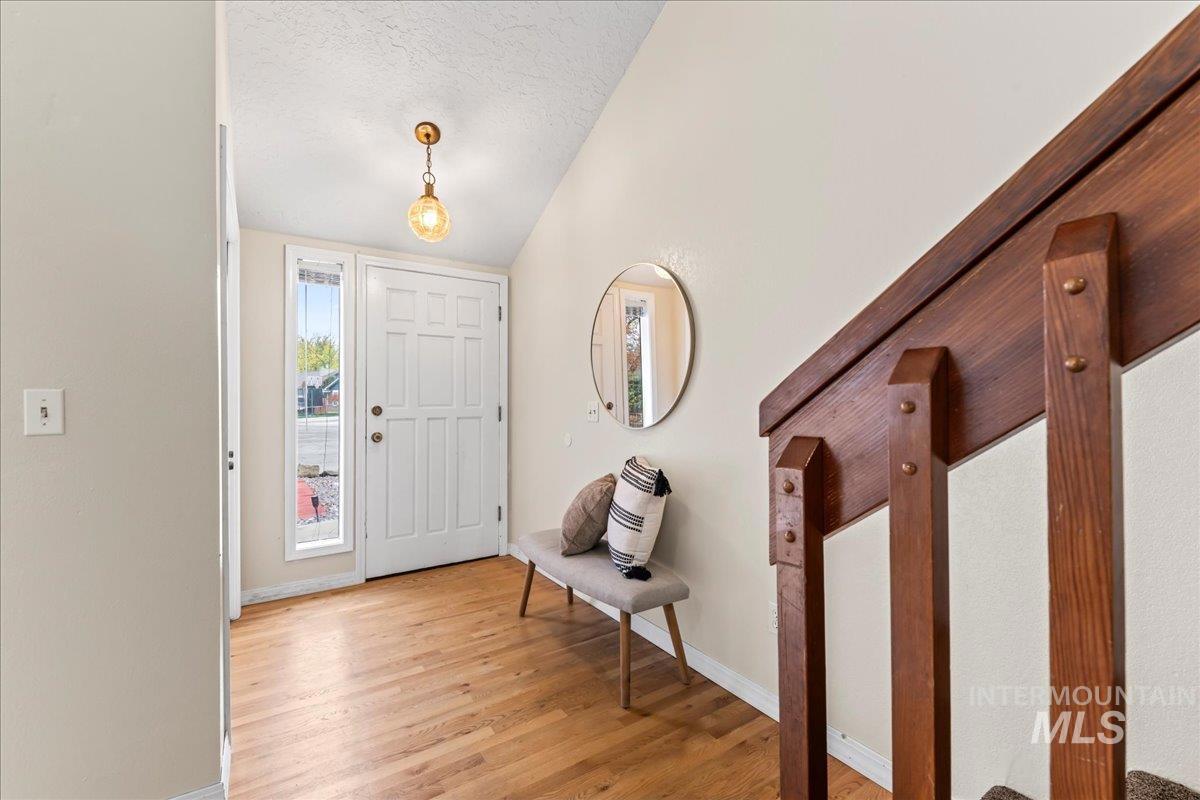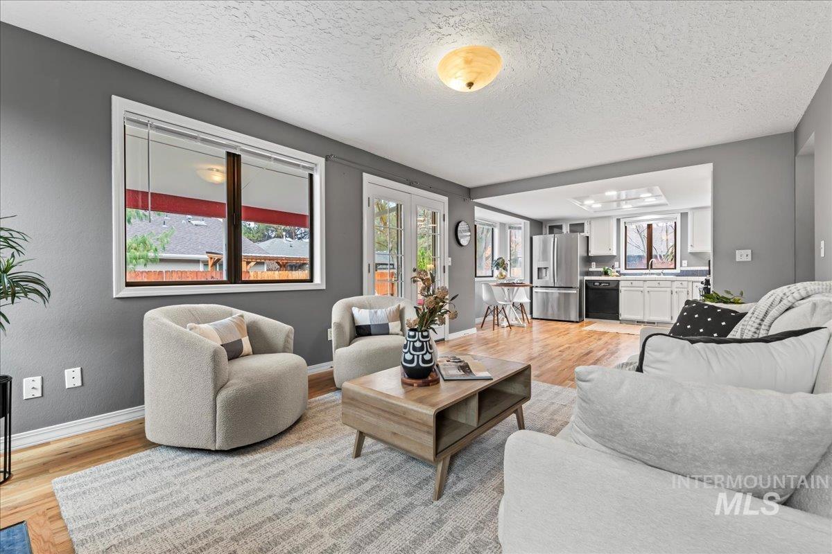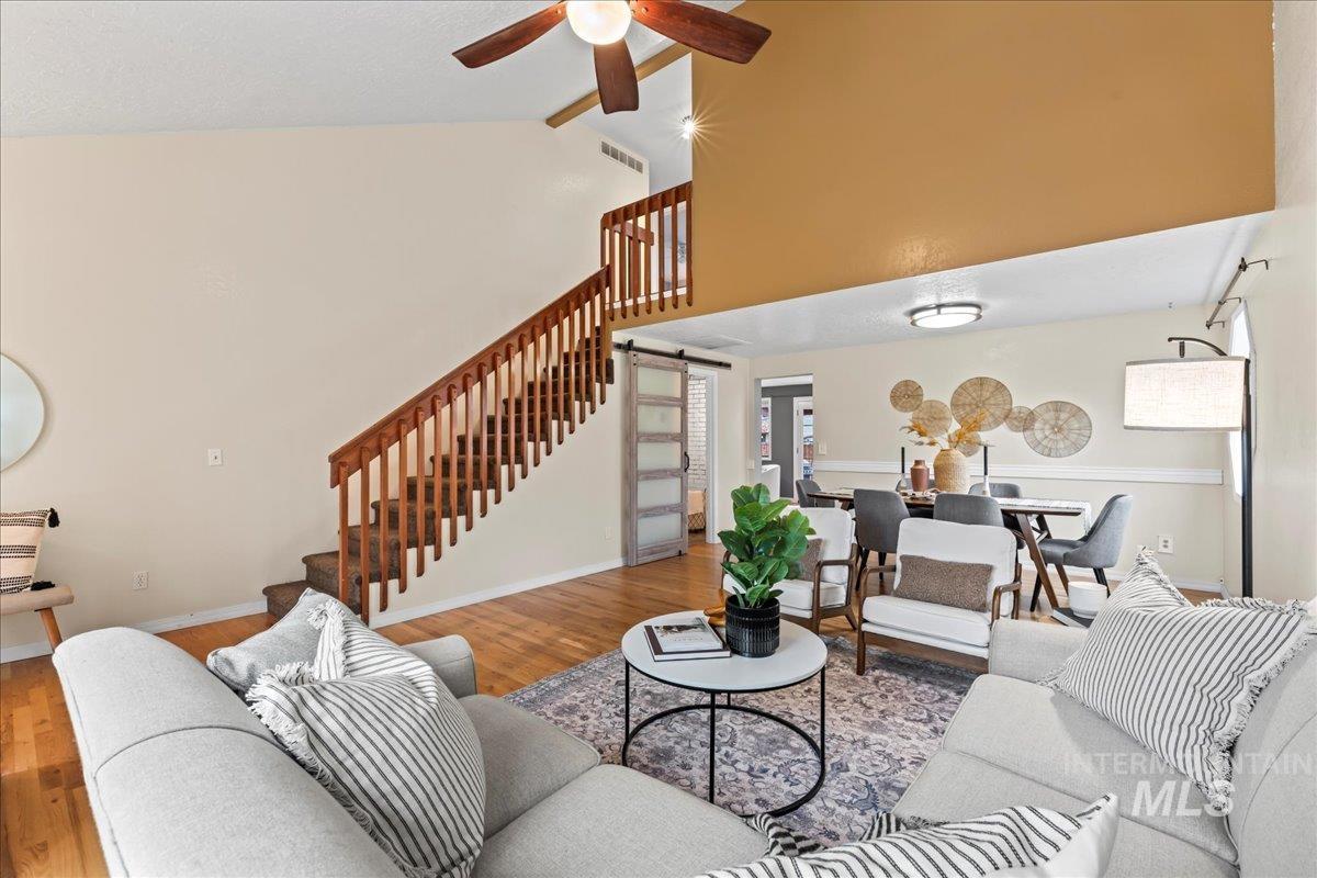 Discover exceptional location and value in this charming 3-Bed, 2.5 bath home in Southeast Boise, just moments from the Boise River and the Greenbelt. Warm hardwood floors span the main level, featuring a cozy family room with a real wood burning fireplace, formal living and dining rooms, and an updated primary suite with a walk-in shower. Recent upgrades include a 90 % furnace, central air, new carpet in the upstairs bedrooms, and newer vinyl windows. The oversized cul-de-sac lot offers room for your toys, complete with RV parking, a 2-car garage, and two free-standing storage sheds, one with power. Relax outdoors under the covered patio beside the custom water feature and in-ground fire pit. All within walking distance to the River, grocery stores, and the local grade school. This home is move-in ready for the next new owners.