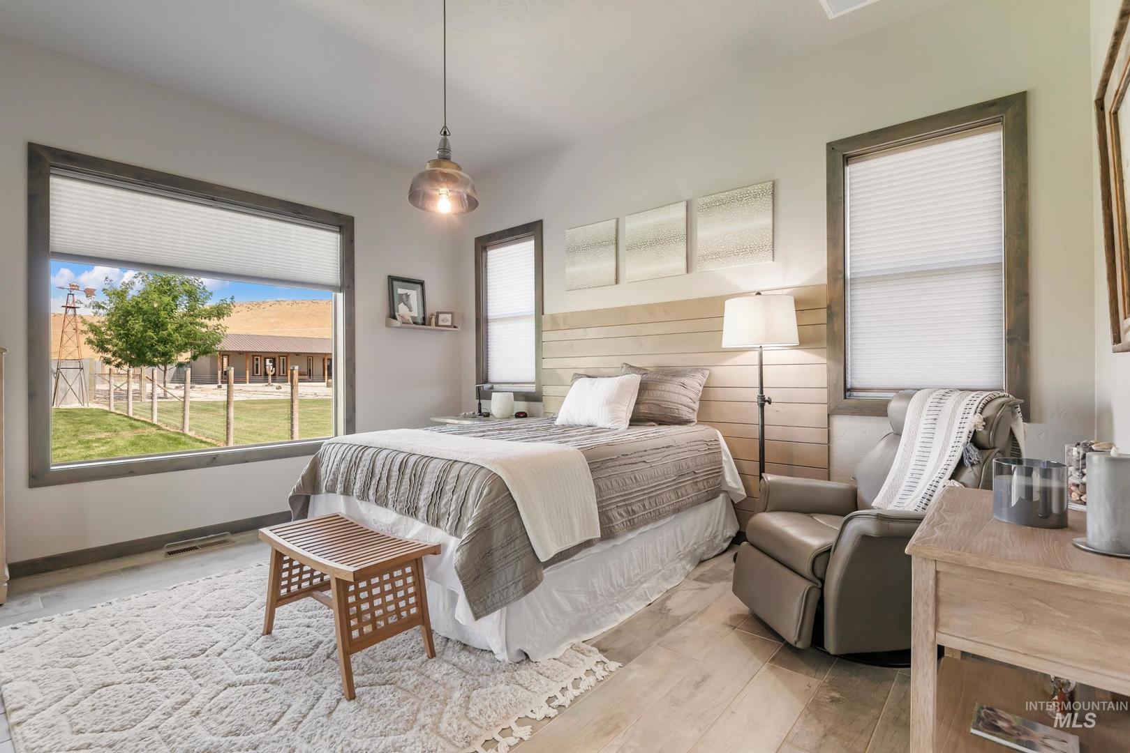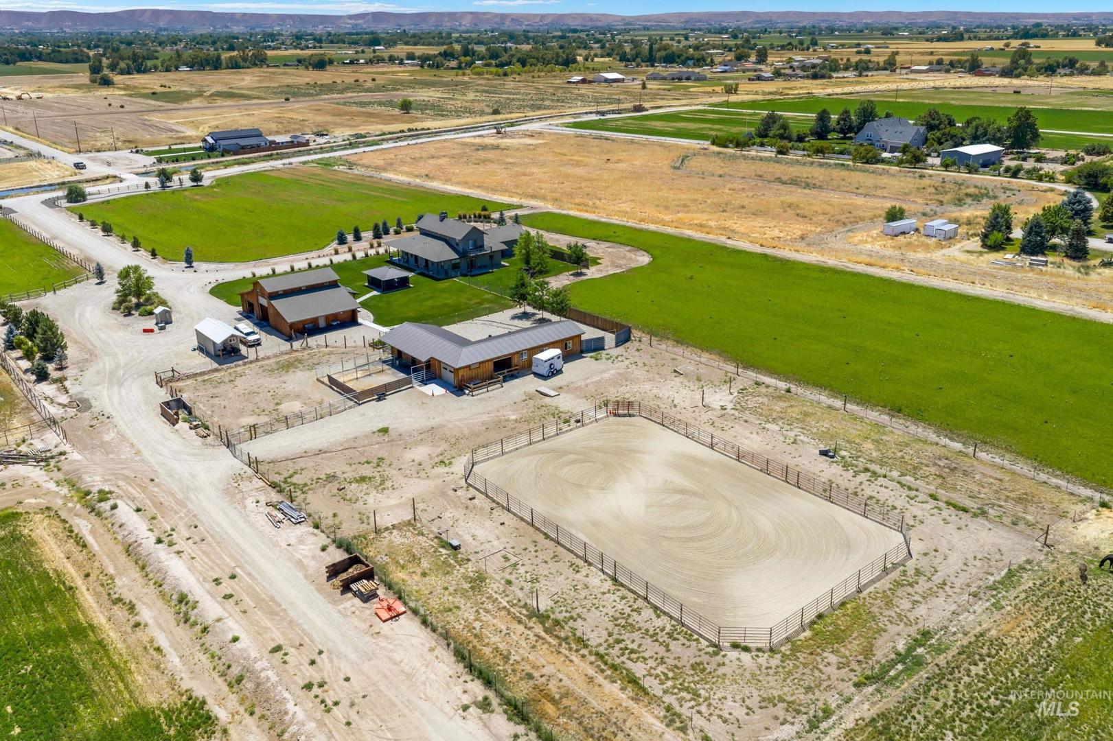 **IMPROVED PRICE!** Immaculate Equestrian Estate on 10 Acres – 900 Robin Lane, Emmett, ID Enjoy peaceful country living with this beautifully designed, move-in-ready horse property, with 5 of the 10 acres irrigated and 4 being hayfields. Property is adjacent to private cattle ranch which backs to BLM so lots of open space to view The custom home, built by Irish Quality Builders, features a main-level primary suite, upper level second suite, extended 2-car garage, whole-house water filtration, and stunning outdoor spaces including a wraparound porch, second-floor balcony, and screened BBQ patio room. Equestrian amenities include a 36’x56’ barn with RV-height garage, office, and shop, plus a shedrow barn with 3 stalls, feed & tack rooms, breezeway, exercise studio, auto waterers/feeders, and a 76’x124’ irrigated arena. Fenced pastures, paddocks, garden shed, raised beds, and mature landscaping complete this rare offering. You will be stunned by the pristine condition and how well thought out every detail is. DON`T MISS THIS!