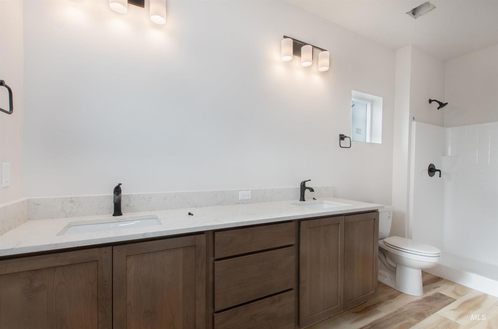 Welcome to this well-appointed 3-bedroom, 2.5-bathroom home with an attached 2-car garage, conveniently located near Mountain Home Air Force Base. The open living area offers a comfortable space for relaxing or entertaining with 9 foot ceilings and the kitchen features quartz countertops and stainless steel appliances. Enjoy a low-maintenance yard and the convenience of secure parking in the attached garage. With easy freeway access, this home is an excellent opportunity for first-time buyers, down-sizers, investors, or anyone stationed at the base. Photos are similar, finishes may vary.
