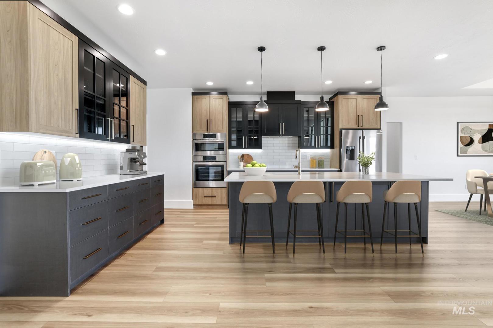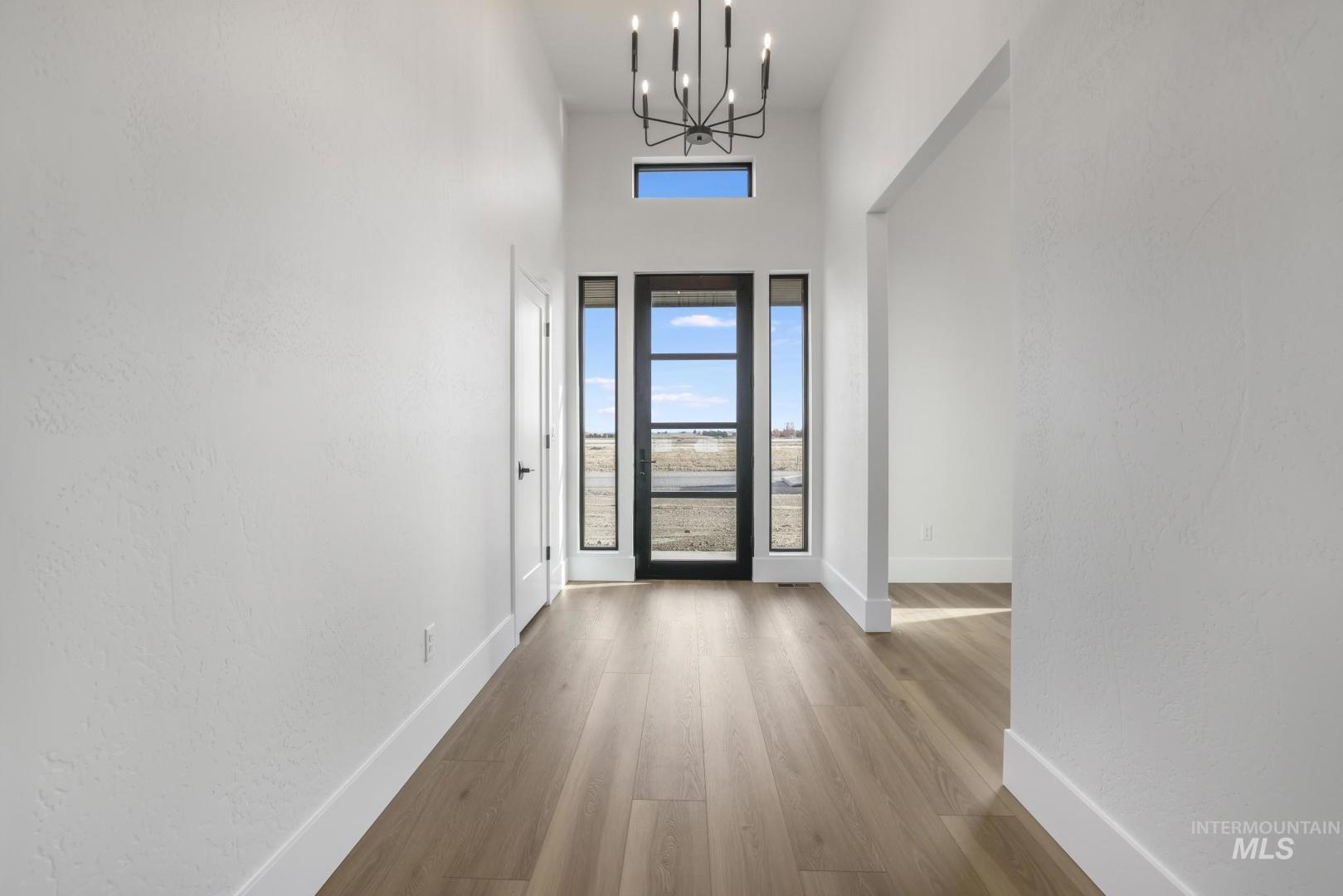 Eastern Sky Subdivision a 1 acre Community in Twin Falls County Idaho. Pride of Detail w/Kimberly Construction Inc. Builder came out of retirement to build 1 more home. Builder has 30 years experience custom home builds. Black fiberglass Pella windows Upgraded front door Blown in insulation Hand texture walls & ceilings 13 ft stepped up ceiling in great room Bosch appliance package including refrigerator full size cabinet depth 3 tone kitchen cabinets Custom built cabinets with lots of deep drawers Large hidden pantry with outlets for small kitchen appliances Custom tile work large roll in shower w/linear floor drain, soaking tub Custom oversize closets w/lots of shelving, 3 split bedroom have 3 feet depth Under cabinet lighting in kitchen matte finished Quartz countertops Efficiency LED lighting 100 inch fireplace Large covered back patio AC with natural gas heat and hot water 96% efficient unit LVP (Luxury Vinyl Planks) Tiled guest shower Entry from the garage with locker and bench. Champaign Bronze and Matte Black finishes. Hardi type cement siding Rain gutters 8 foot tall garage doors. Homes electrical is set up to add detached shop. Located in Kimberly Idaho with easy access to everything the Magic Valley has to offer. Minutes to Hospital, Perrine Bridge, Shopping. This home is completed and ready to show call for showings. BTVAI