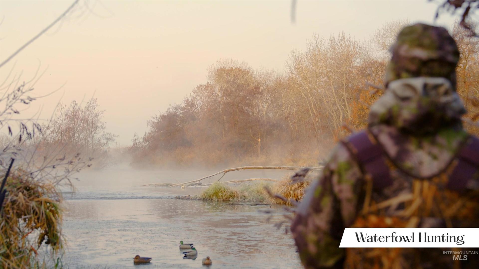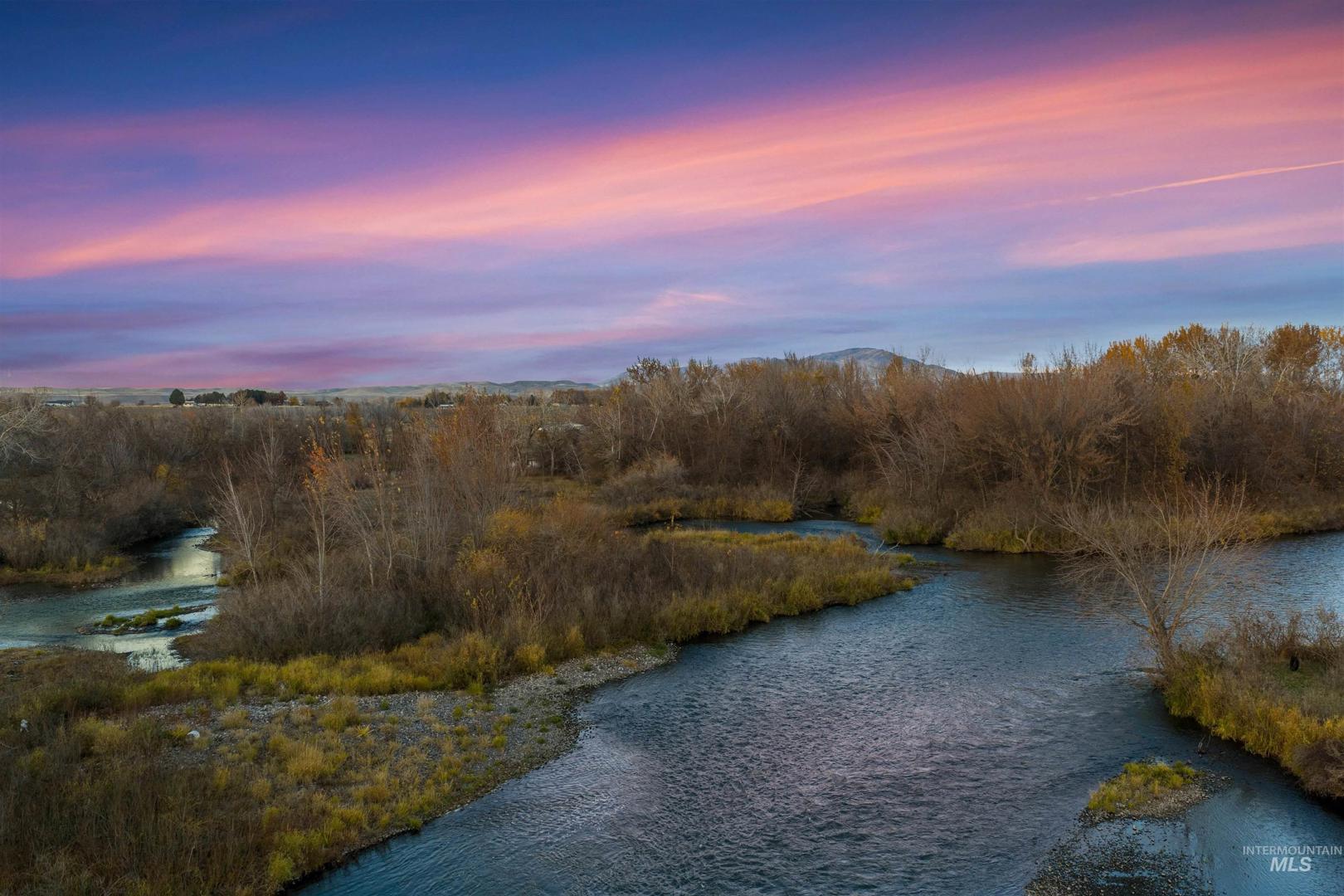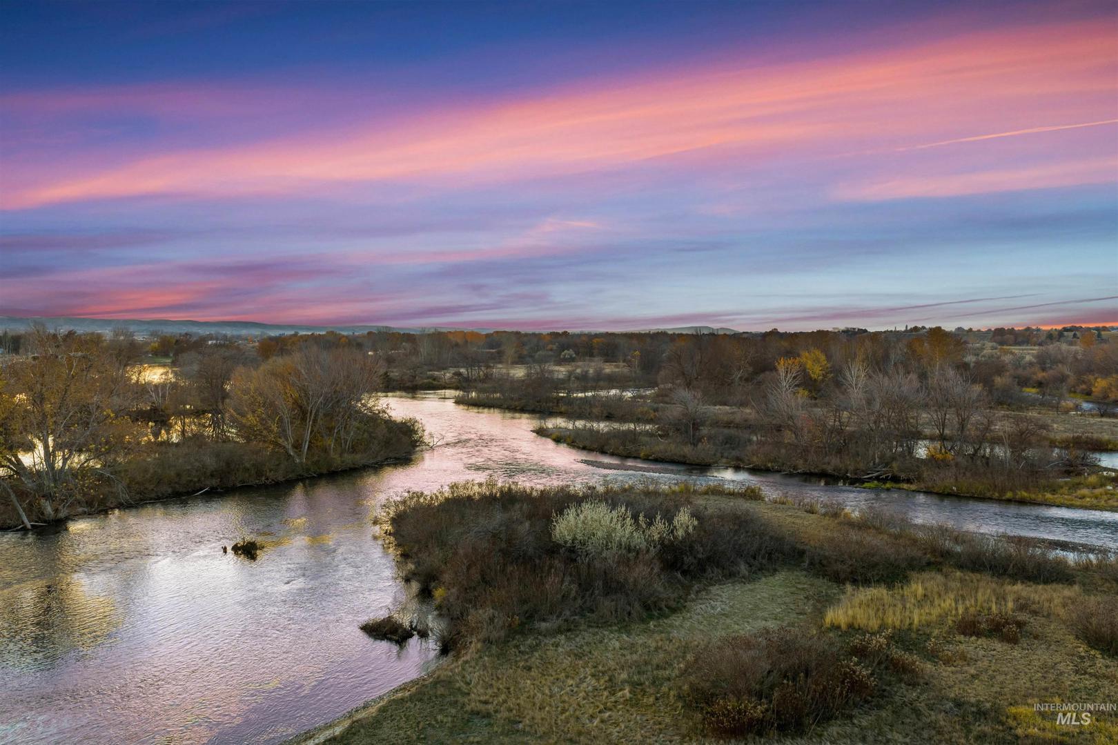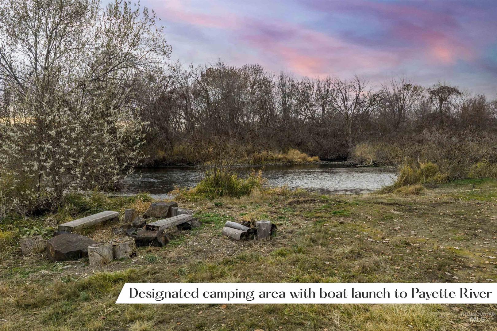 An extraordinary opportunity to craft a private riverfront estate or hunting retreat on 45 acres of rare natural beauty. Featuring over 2,000 ft of pristine Payette River frontage, 2 expansive fishing ponds, sweeping views, & a stunning blend of willows, cottonwoods, dogwoods, & curated pathways, this property evokes true estate-level serenity. Boasting premier on-site hunting & fishing opportunities—supporting abundant waterfowl, upland game, deer & turkey —making it a rare blend of refined living & world-class recreation for your personal oasis or lucrative Duck Club. Multiple acres lie outside the floodplain, offering exceptional flexibility for a luxury residence, guest lodges, hunting cabins, even luxe duck blinds. Infrastructure includes 440 AMP power, a small well and septic with RV dump, & three water-rights shares. Gentle river channels, a designated campsite, & effortless access for boating & kayaking elevate the year-round lifestyle. A private oasis just minutes from Emmett city limits. BTVAI.