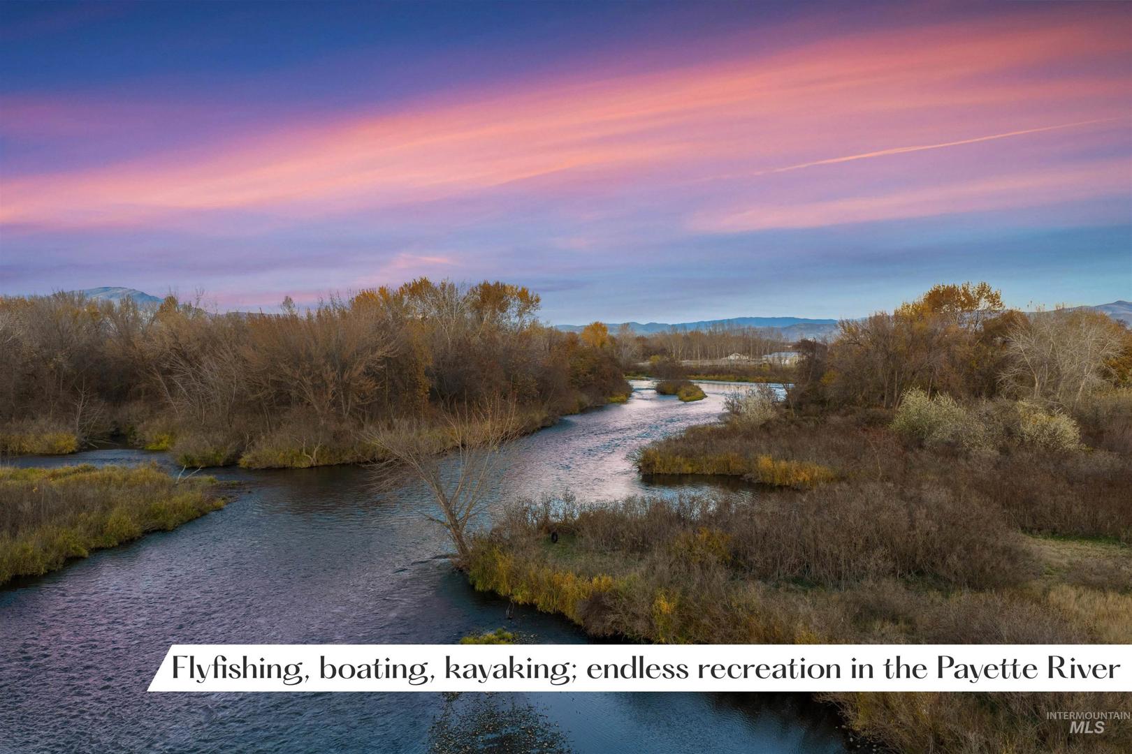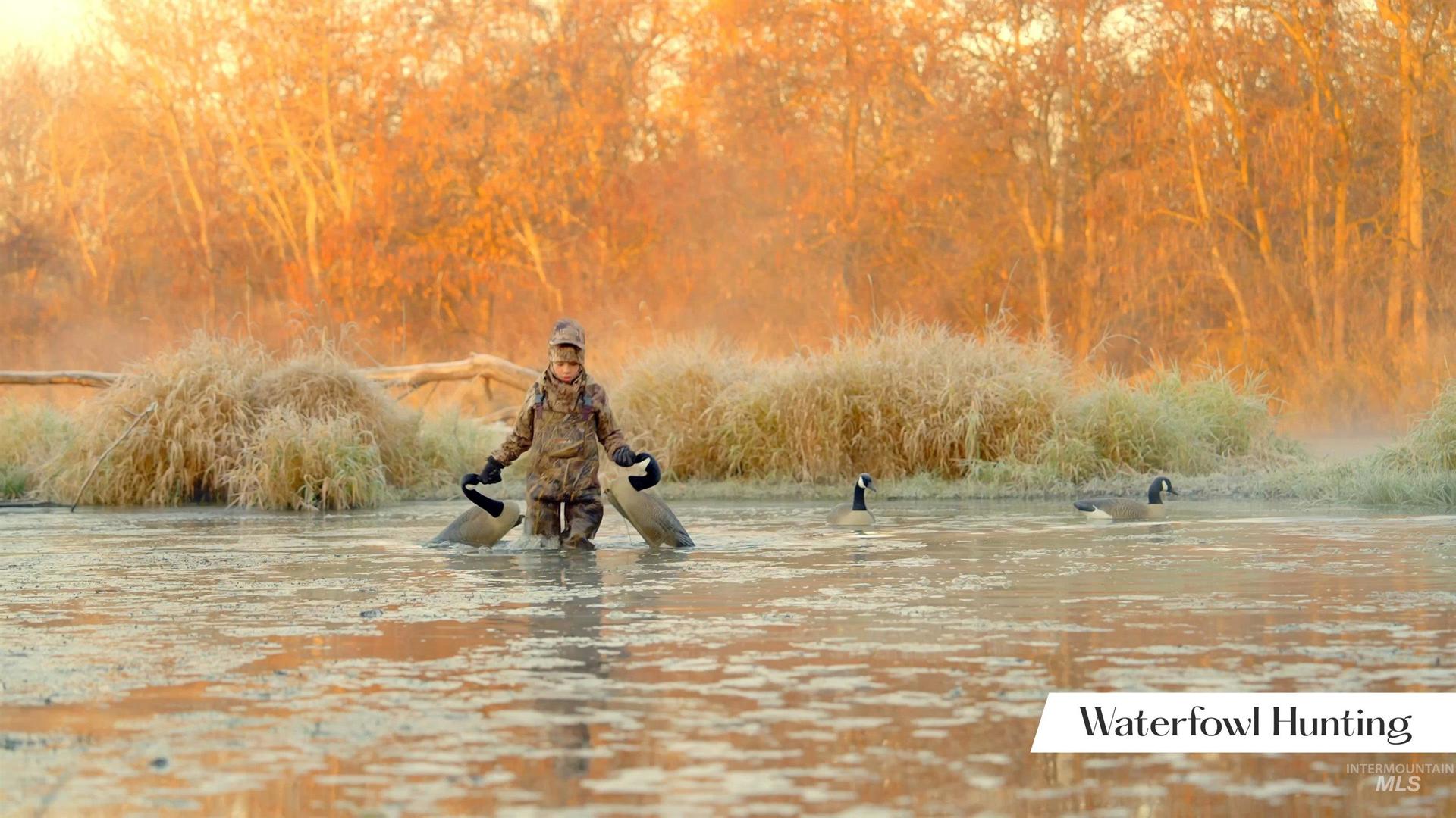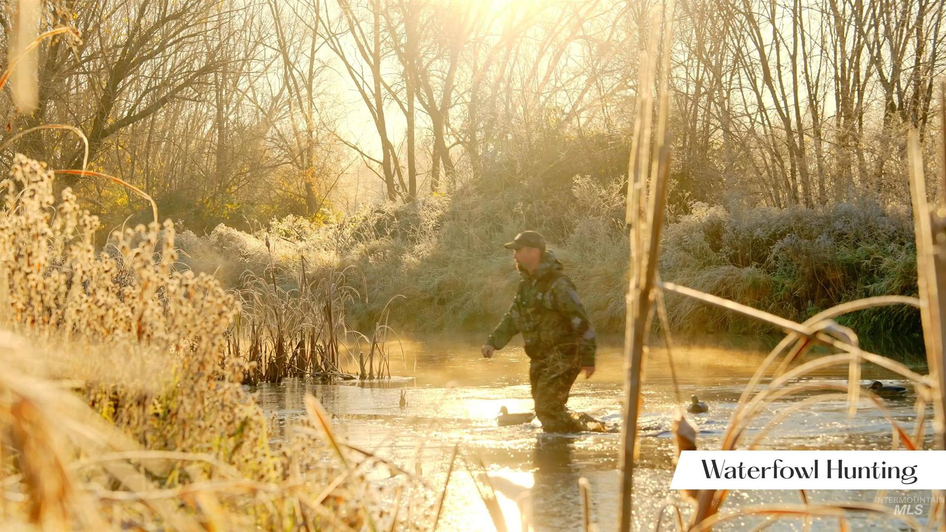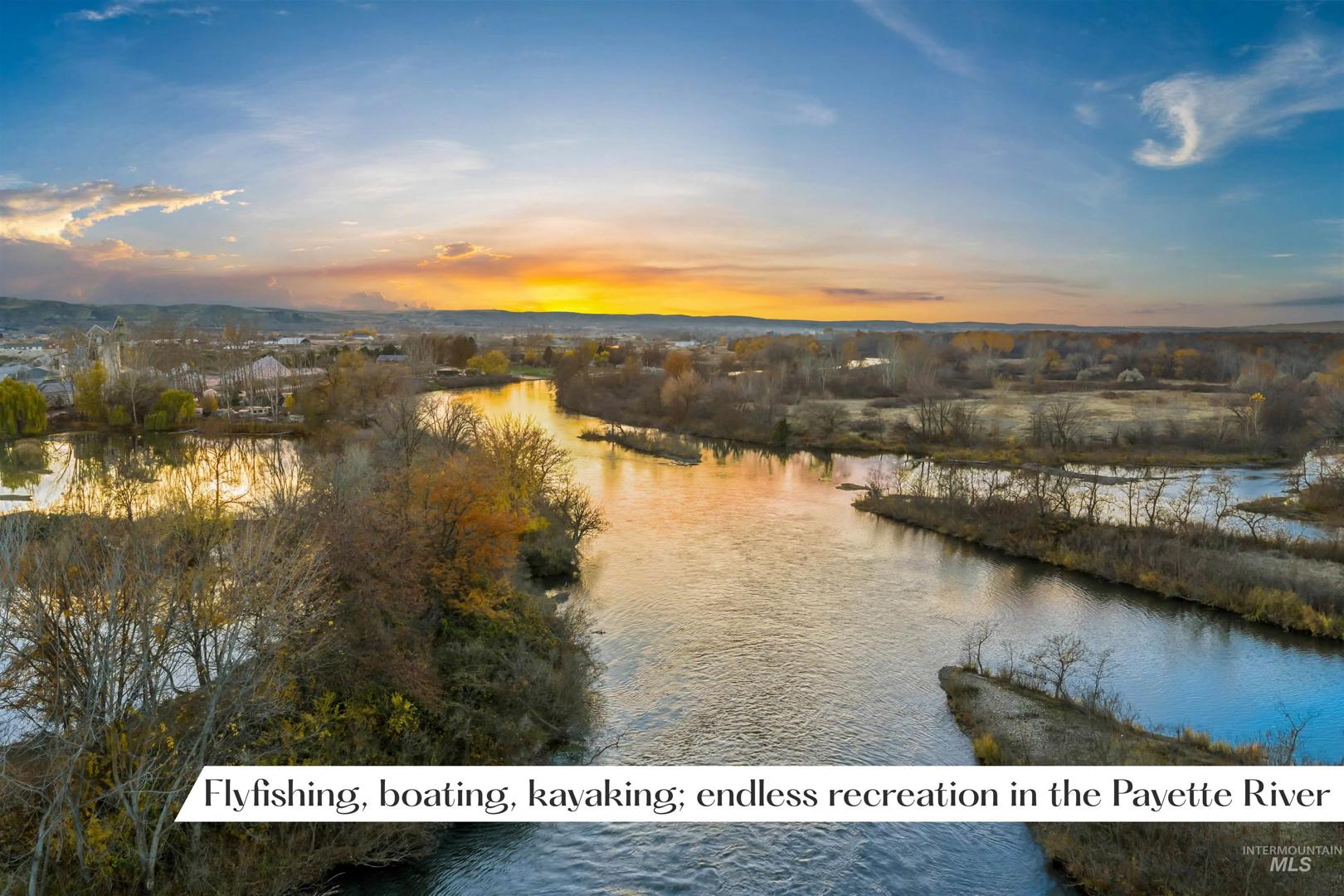 An extraordinary opportunity to craft a private riverfront estate or hunting retreat on 45 acres of rare natural beauty. Featuring over 2,000 ft of pristine Payette River frontage, 2 expansive fishing ponds, sweeping views, & a stunning blend of willows, cottonwoods, dogwoods, & curated pathways, this property evokes true estate-level serenity. Boasting premier on-site hunting & fishing opportunities—supporting abundant waterfowl, upland game, deer & turkey —making it a rare blend of refined living & world-class recreation for your personal oasis or lucrative Duck Club. Multiple acres lie outside the floodplain, offering exceptional flexibility for a luxury residence, guest lodges, hunting cabins, even luxe duck blinds. Infrastructure includes 440 AMP power, a small well and septic with RV dump, & three water-rights shares. Gentle river channels, a designated campsite, & effortless access for boating & kayaking elevate the year-round lifestyle. A private oasis just minutes from Emmett city limits. BTVAI.