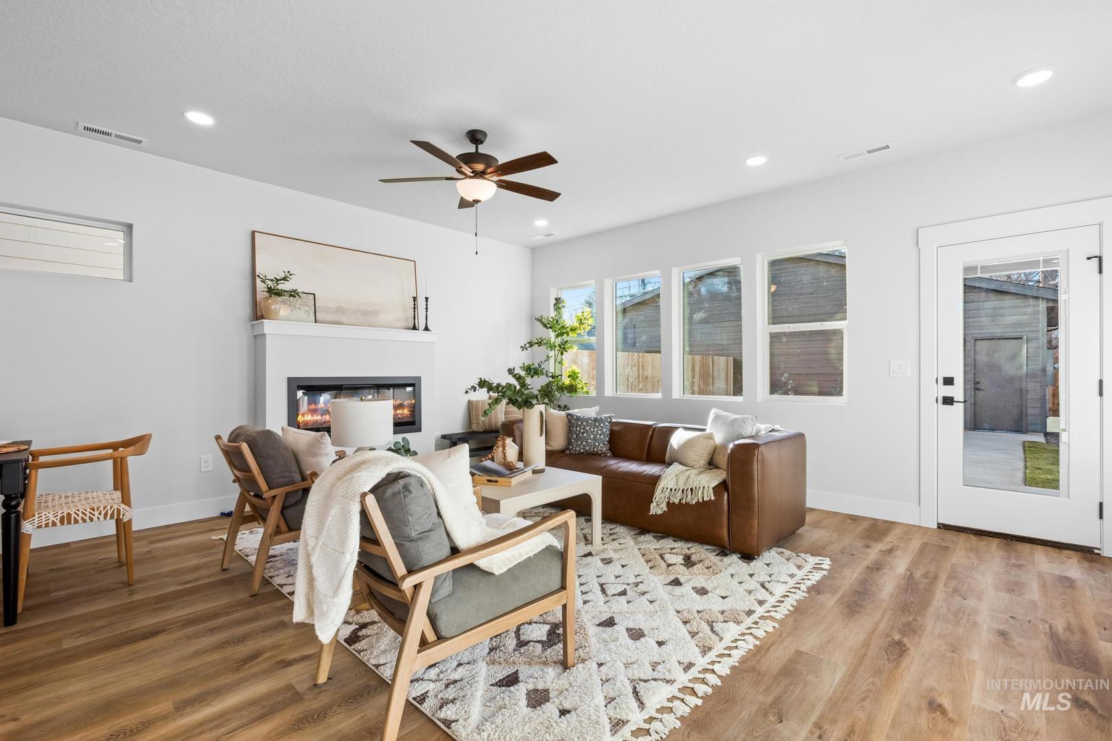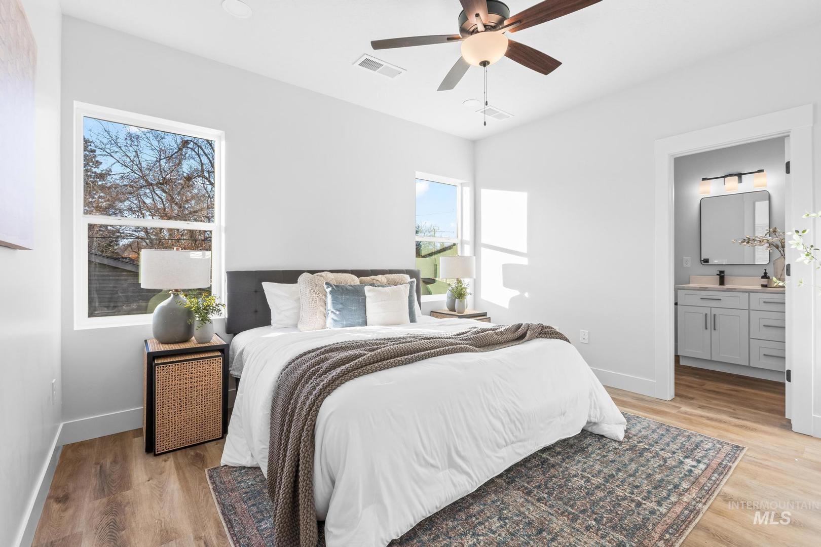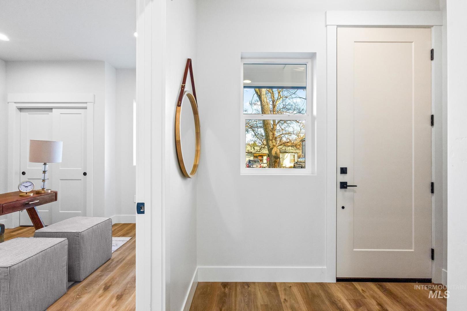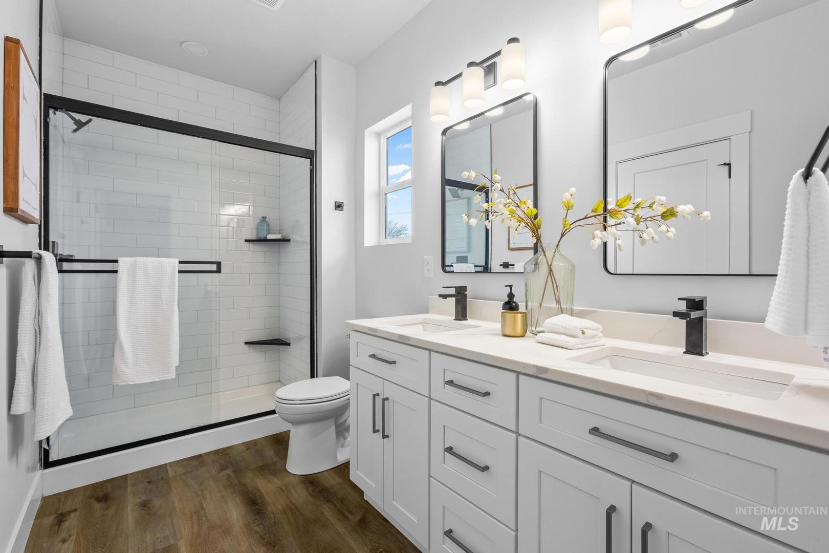 Buyers may qualify for up to 1% of the loan amount in closing cost credits through the seller’s preferred lender(s). Please inquire for additional information. Situated in one of Boise’s most convenient neighborhoods, this brand-new home delivers standout craftsmanship and an open, functional layout. Offering 4 bedrooms, 3 full bathrooms, and 1,724 sq ft, this home blends modern style with everyday practicality. The main level centers around a bright, open kitchen featuring quartz counters, custom cabinetry, stainless steel appliances, and an oversized sink-the perfect workspace for cooking or hosting. Throughout the home, luxury vinyl plank flooring provides a clean, cohesive feel with the durability busy households appreciate. The upper-level primary suite offers a peaceful escape with its spa-like bathroom, complete with a tile walk-in shower, dual vanities, and a generous walk-in closet. Every detail has been curated for comfort, quality, and long-term livability. Outside, enjoy a fully fenced and landscaped backyard with automatic sprinklers, ideal for pets and warm summer evenings. A 2-car garage with built-in EV charging adds convenience and future-proofing. Brand-new, professionally finished, and just minutes from downtown Boise and the airport-this home delivers location, lifestyle, and lasting value.
