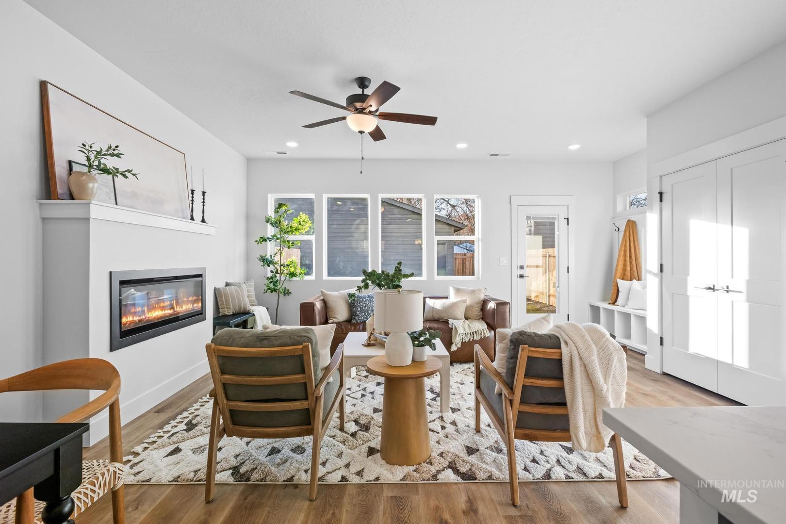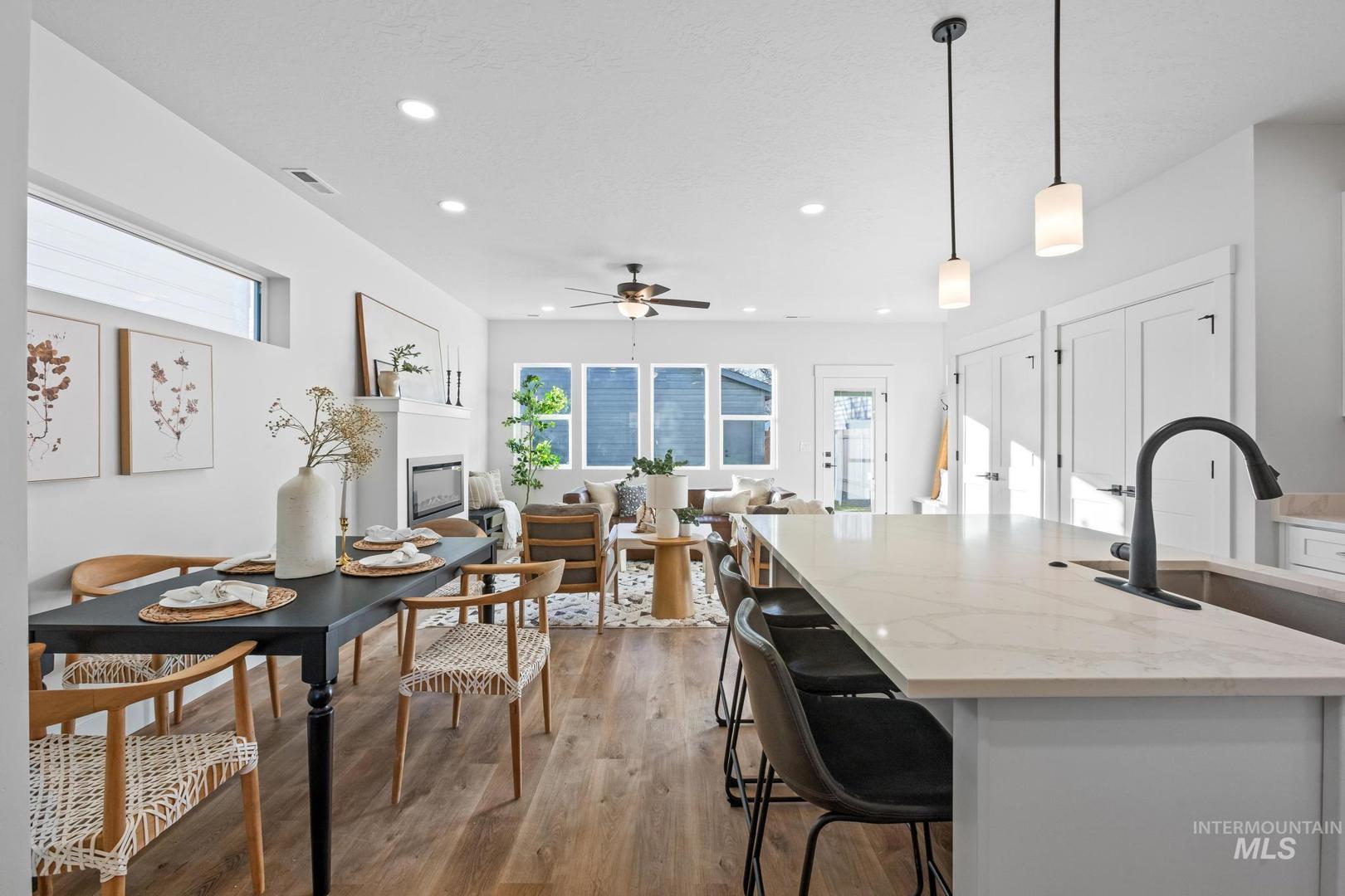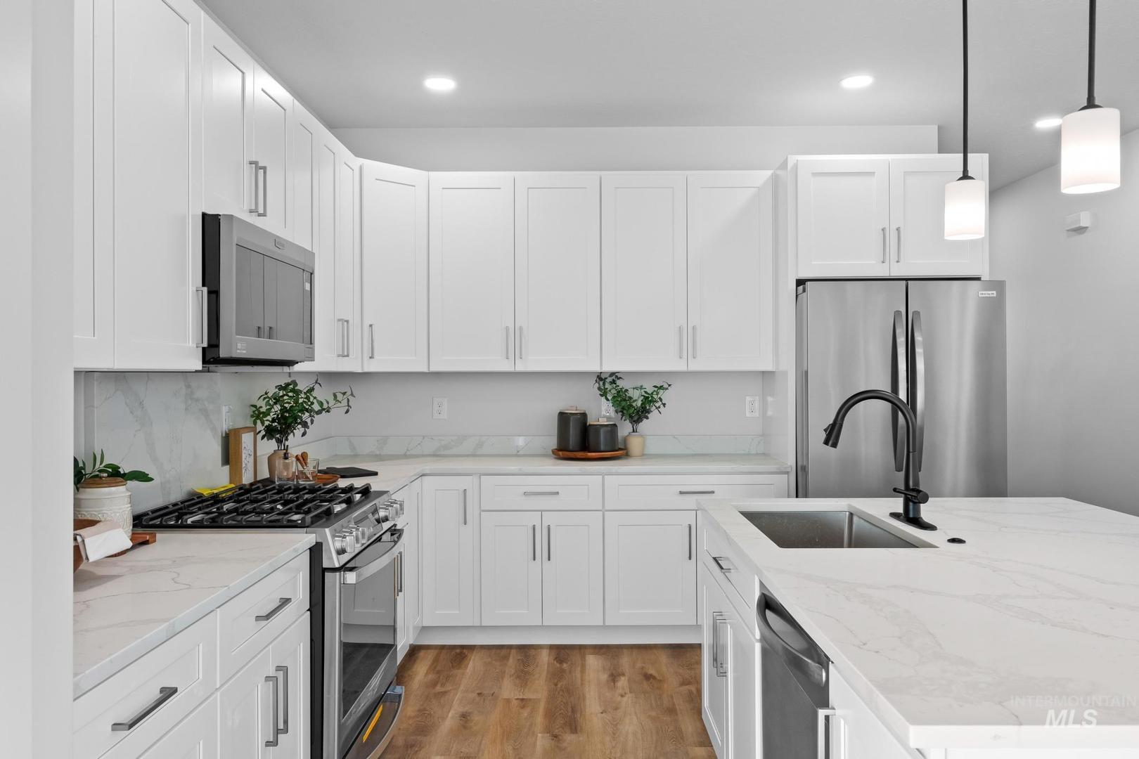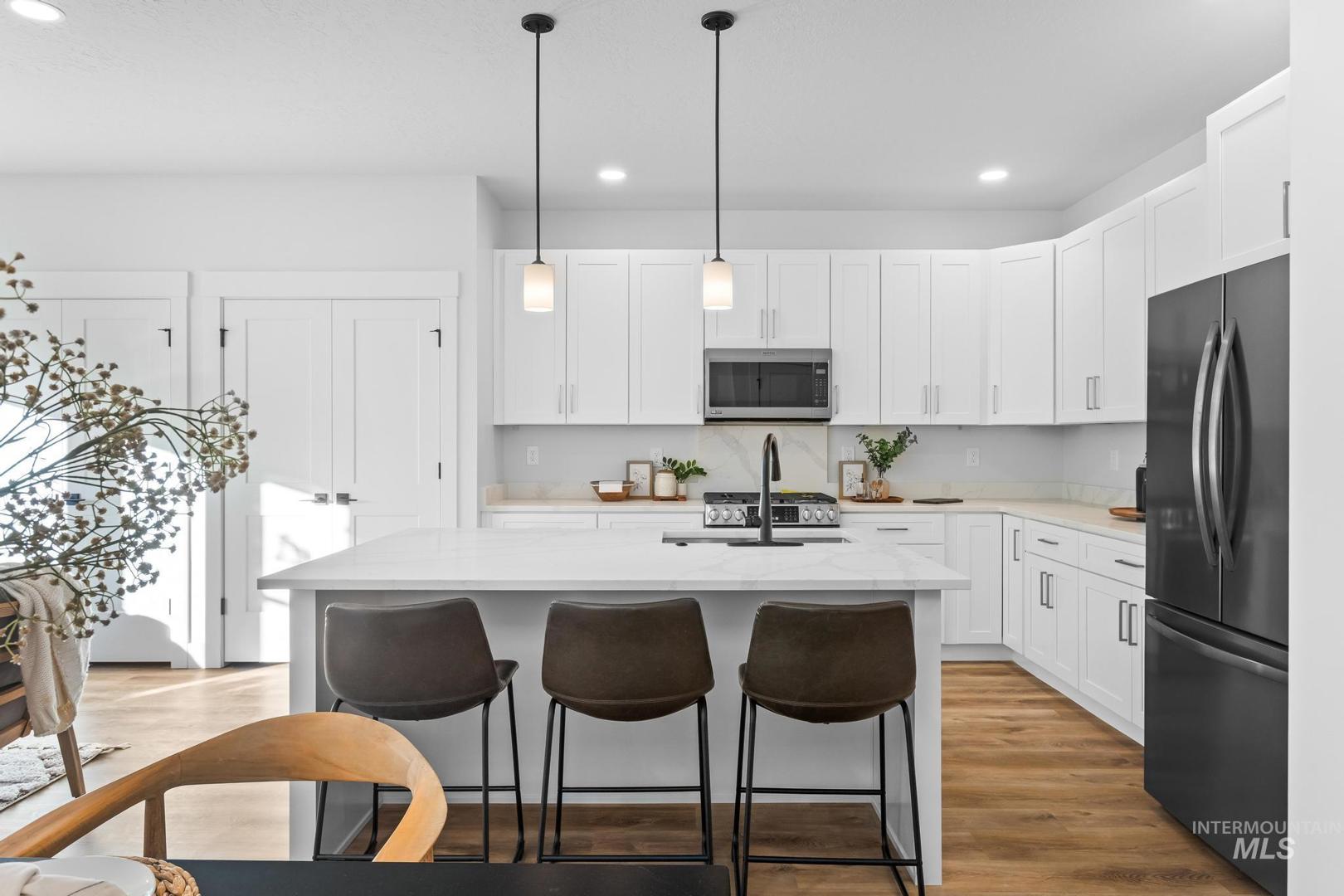 Buyers may qualify for up to 1% of the loan amount in closing cost credits through the seller’s preferred lender(s). Please inquire for additional information. Situated in one of Boise’s most convenient neighborhoods, this brand-new home delivers standout craftsmanship and an open, functional layout. Offering 4 bedrooms, 3 full bathrooms, and 1,724 sq ft, this home blends modern style with everyday practicality. The main level centers around a bright, open kitchen featuring quartz counters, custom cabinetry, stainless steel appliances, and an oversized sink-the perfect workspace for cooking or hosting. Throughout the home, luxury vinyl plank flooring provides a clean, cohesive feel with the durability busy households appreciate. The upper-level primary suite offers a peaceful escape with its spa-like bathroom, complete with a tile walk-in shower, dual vanities, and a generous walk-in closet. Every detail has been curated for comfort, quality, and long-term livability. Outside, enjoy a fully fenced and landscaped backyard with automatic sprinklers, ideal for pets and warm summer evenings. A 2-car garage with built-in EV charging adds convenience and future-proofing. Brand-new, professionally finished, and just minutes from downtown Boise and the airport-this home delivers location, lifestyle, and lasting value.
