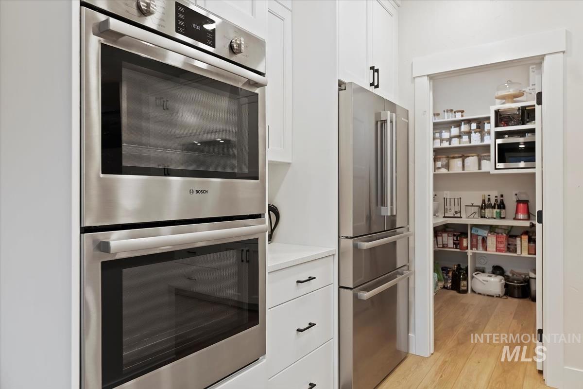 Designed for modern living and better than new, this one-year-old Biltmore home offers 3 bedrooms, 3 baths, and over 2,100 sq. ft. of beautifully designed living space in Boise’s coveted Barber Vista community. Ideally set on a private corner lot next to open green space, it offers rare privacy without CID taxes. Inside, enjoy bright open living areas, wide-plank LVP flooring, and a stunning chef’s kitchen with quartz countertops, Bosch appliances, double ovens, a massive walk-in pantry, and an oversized island for gatherings. The inviting great room centers around a cozy fireplace, perfect for relaxing or entertaining. Upstairs, the primary suite feels like a retreat, complemented by an upstairs laundry and custom closets in every room. Outside, enjoy a fully fenced yard and covered patio for morning coffee or golden Boise sunsets. The spacious three-car garage includes an EV charger and provides ample storage. Minutes from the Boise River Greenbelt, Bown Crossing, downtown, and just 15 minutes to the airport.