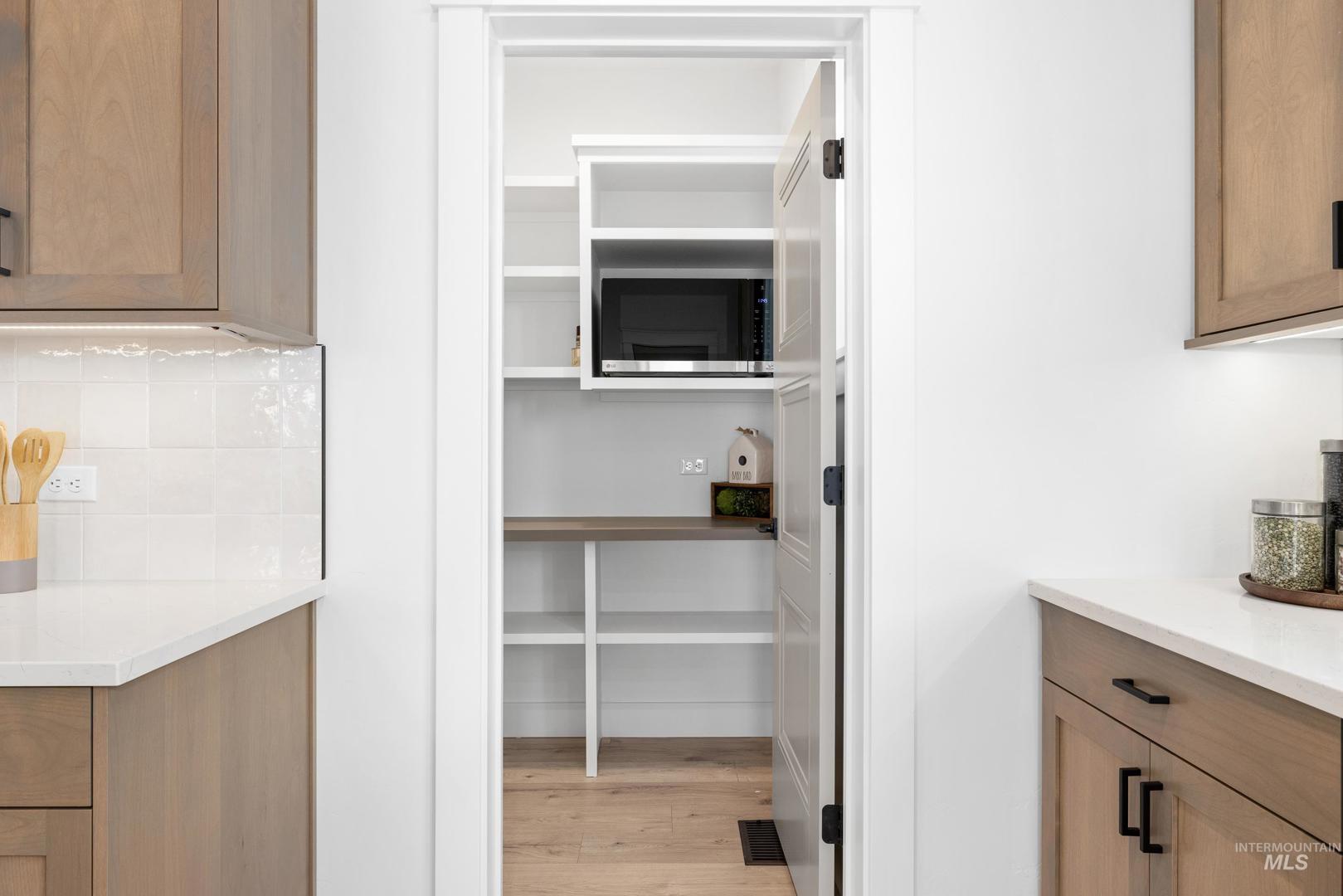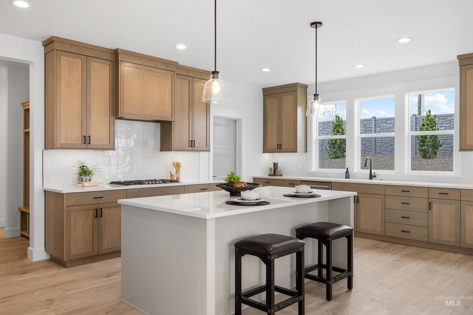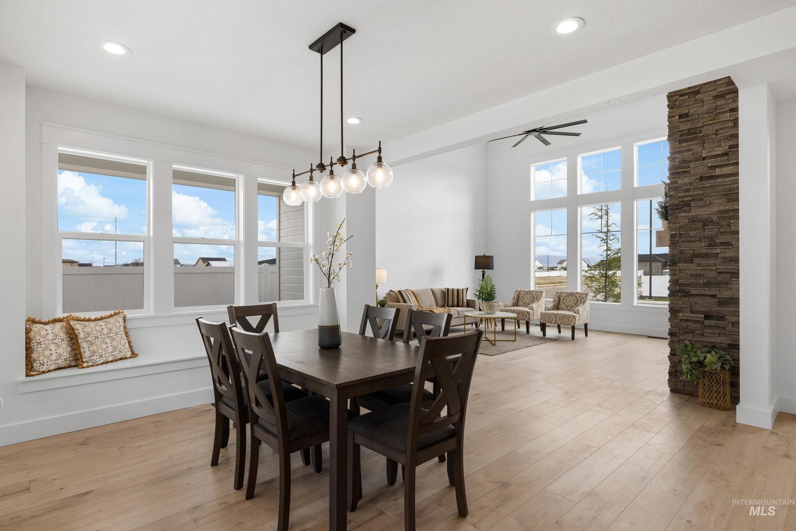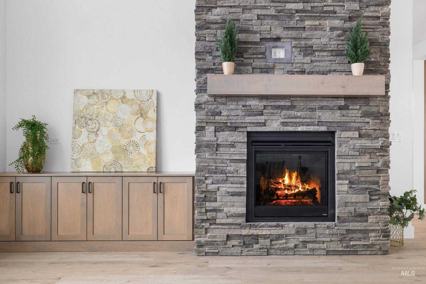 Stunning Vancouver Floor plan w/striking exterior but wait until you see inside! Soaring entry w/impressive staircase that just makes one imagine beautiful family photos! Large open kitchen island w/tons of storage, soft close cabinetry, tasteful tiled backsplash, Granite composite sink, massive pantry w/appliance shelf, stainless appliances including double ovens & 5 Burner cook-top. Built-in window seat in oversized eating area. Living Rm adorned w/floor to ceiling stone fireplace w/built-ins. Main level primary boasting barn doors for maximum space, ceiling fan, dual vanities, tiled floors, beautiful tiled walk-in shower & relax in the soaker tub. Upstairs-3 bedrooms, two w/walk-in closets & convenient Jack &Jill bathroom set up. 3rd bedroom could be Bonus. Quartz countertops, nice storage, as well as plush carpet & smart home wiring throughout. Tankless water heater. Backyard boasts covered patio w/fan, extensive landscaping. Community offers tot lot, pickleball court & picnic gazebo. This stunning home is completed and ready for you to move in! HOA includes irrigation water.