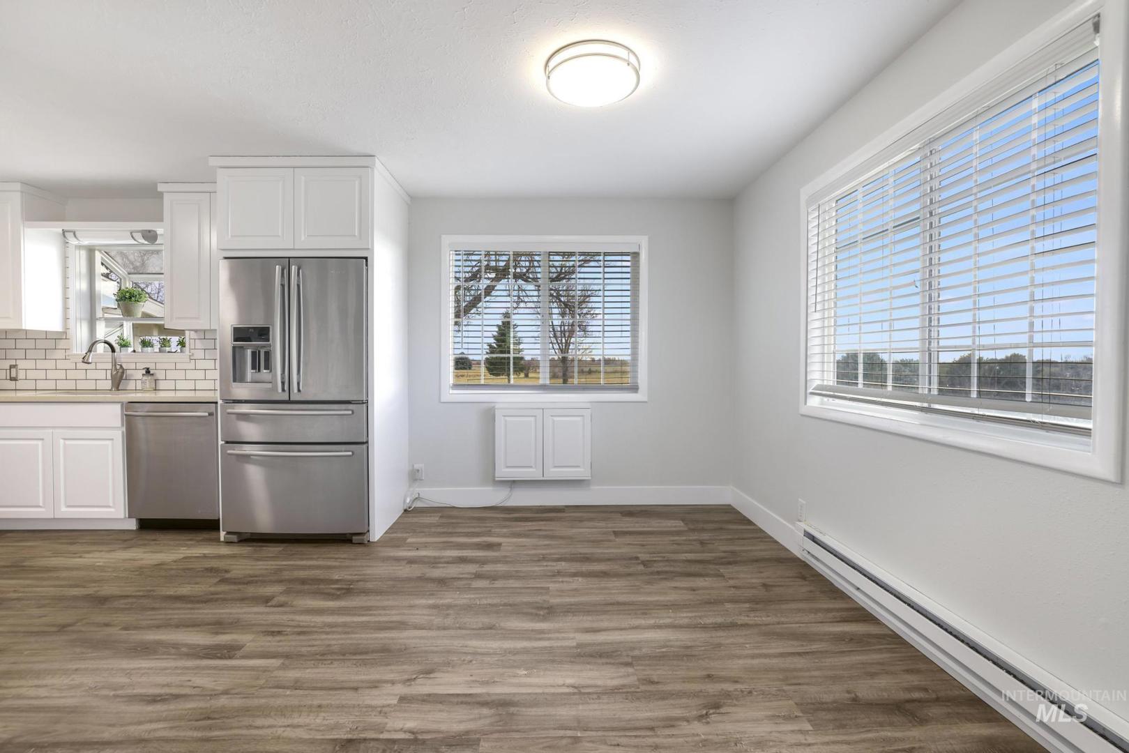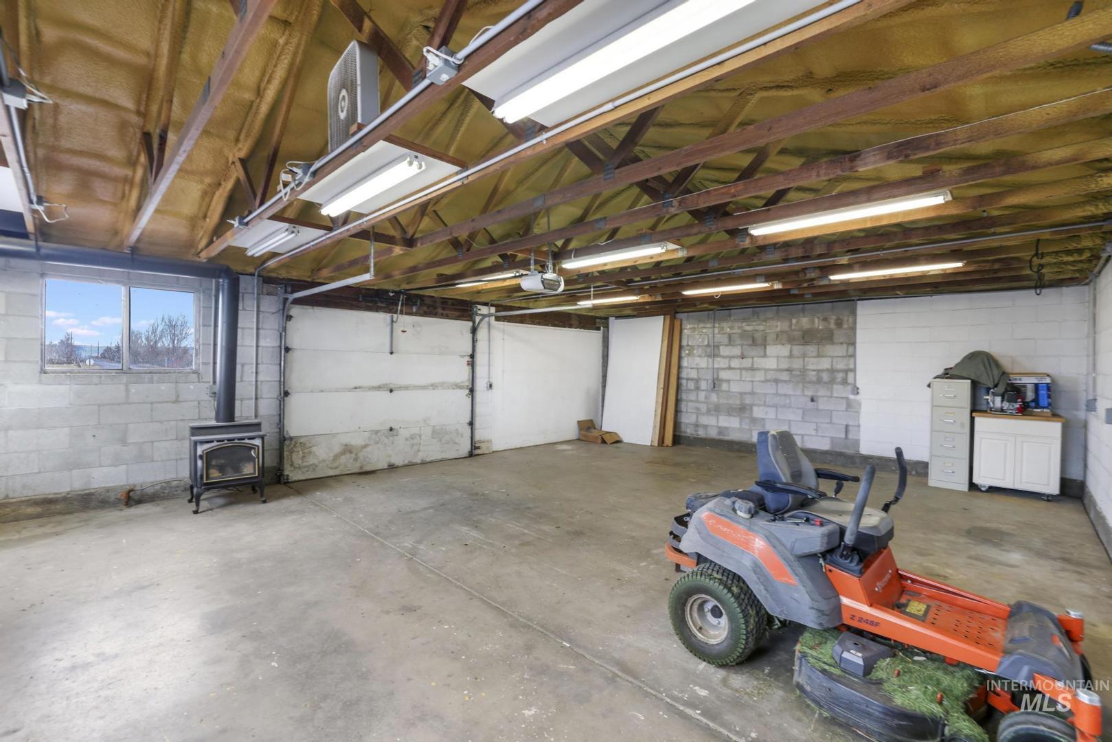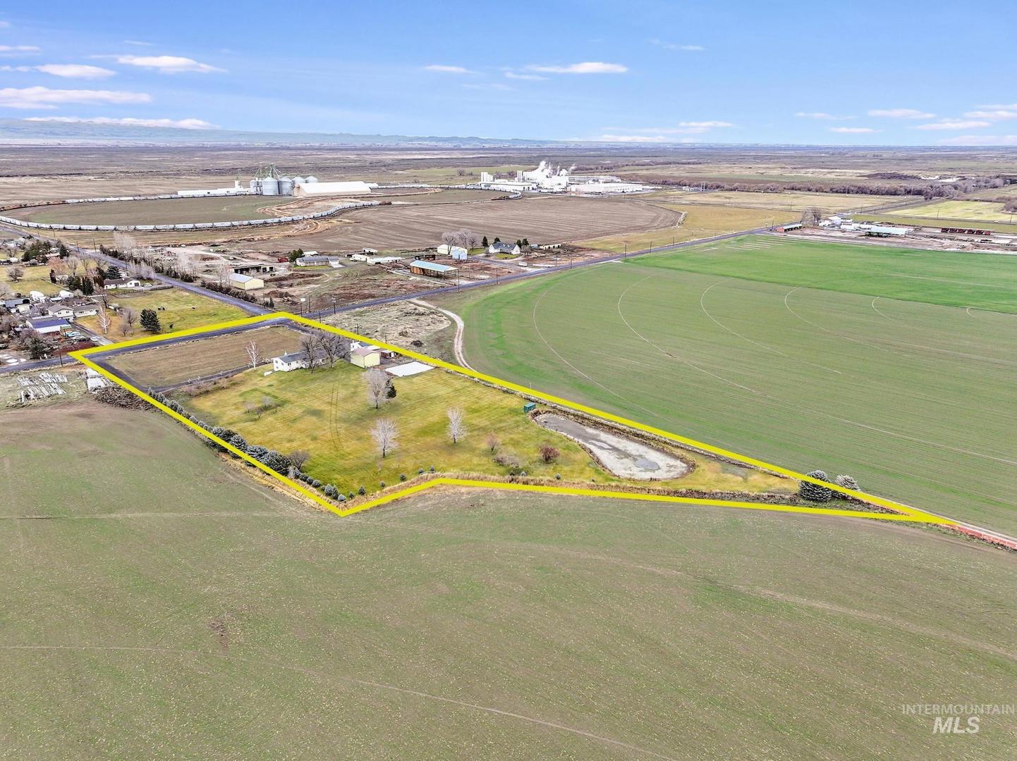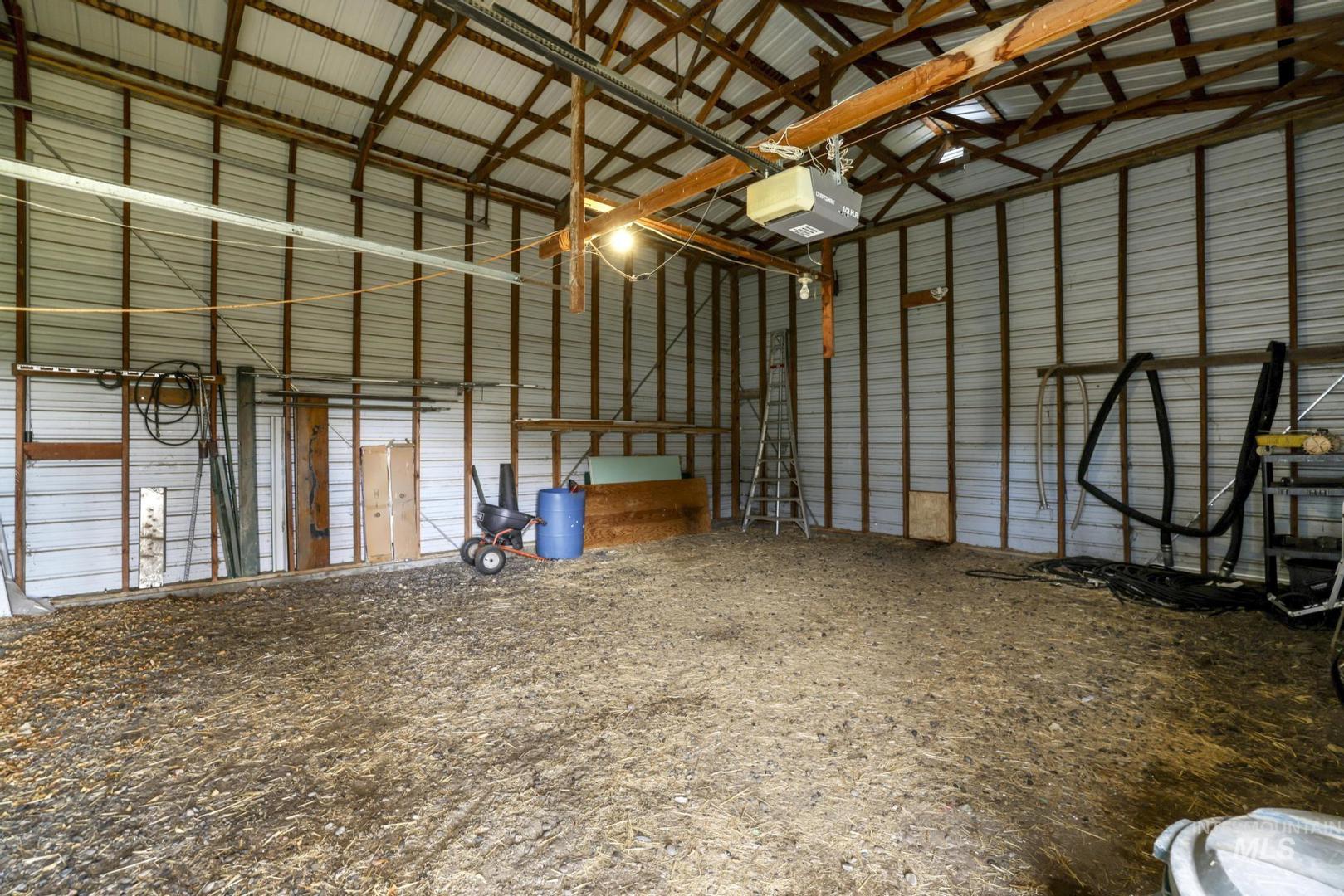 The comforts of country living with the convenience of the city of Gooding just 3 miles to the West. This 4.990 acre parcel features a spacious 2300 sq ft plus home that provides for ground level access to the main floor along with ground level main entry and daylight basement entry. its unique design provides for a 2-car attached garage with access to the daylight basement. Updated flooring, updated kitchen and baths. This property offers a country opportunity with 0ne acre currently in alfalfa with its own wheel line and pressurized main line from the private pond. An extensive manual sprinkler system has been installed to water the yard . Numerous fruit trees are present . Loafing shed and garden area. Two shops top off the list of amenities, one with concrete floors, overhead door, propane heat and home for the solar system that services the home. The solar system is owned. Ingress/egress from the county road is convenient with the improved circular driveway. Ample parking for all your toys, RV`s or equipment.