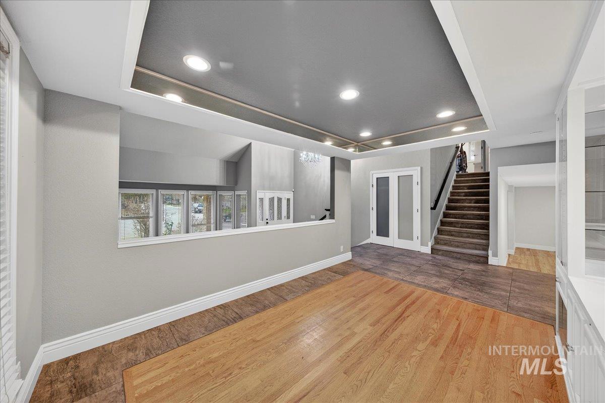 Located in the established West Boise neighborhood of Shenandoah West, this home is custom built and truly one of a kind. Nearly 3,800 sq. feet, with a 3-car garage and RV parking. As you walk into this home, you will be amazed by the grand entryway, upgraded flooring, high ceilings, open stairwell, formal dining area with built-in display cabinets, and a kitchen that connects to another dining room that is wide open to a large great room with fireplace and upgraded flooring. Rounding out the downstairs is a 1/2 bath, sauna, shower, and large laundry room. Upstairs, you’ll find four bedrooms, another bathroom with dual vanities, and the massive primary suite with a sitting area, dual vanities, walk-in shower, and soaker tub. The lower level includes a spacious rec room with fireplace and bar, an additional bedroom and bathroom, and ample storage throughout. Shenandoah features low HOA fees and established landscaping with parks and common space throughout. The home is located blocks from Jullion Park and Summerwind Elementary. Premier central location in the Treasure Valley, with a quick drive downtown, to The Village, the Greenbelt, hospitals, and shopping.