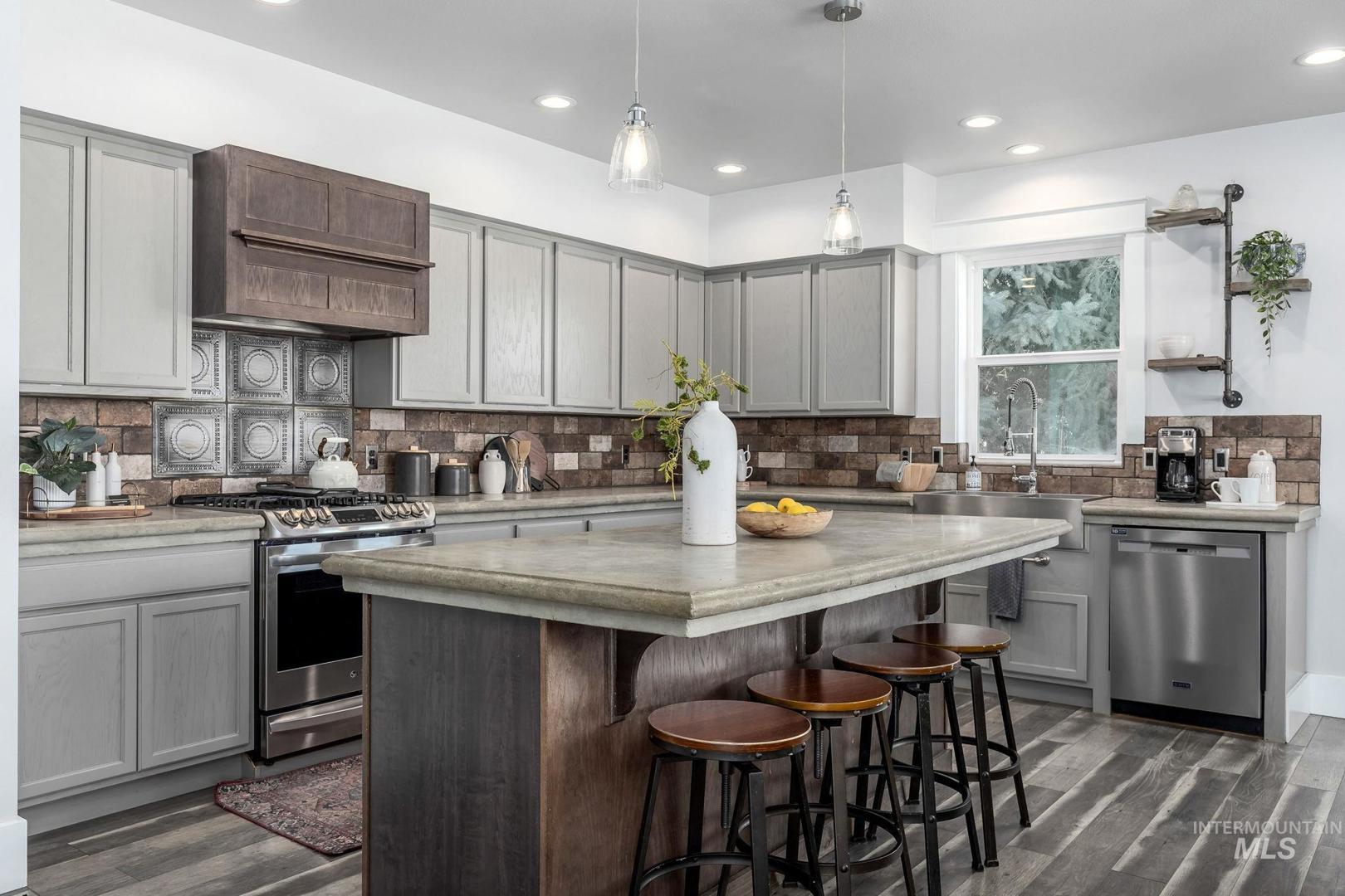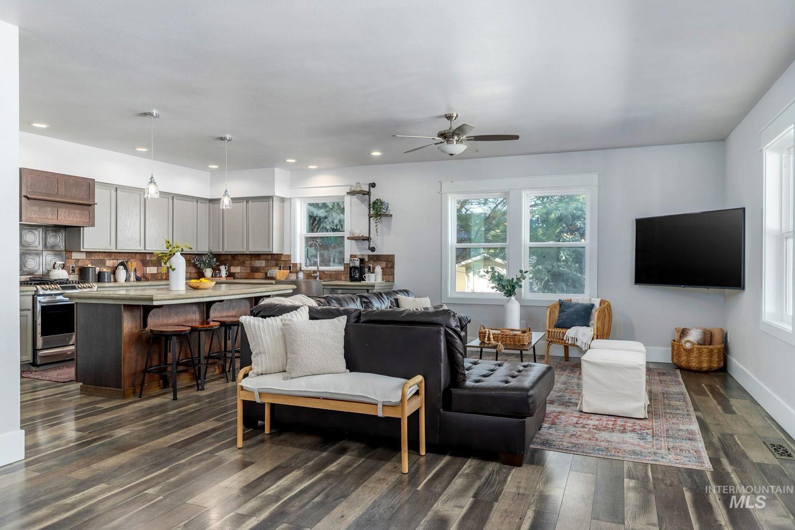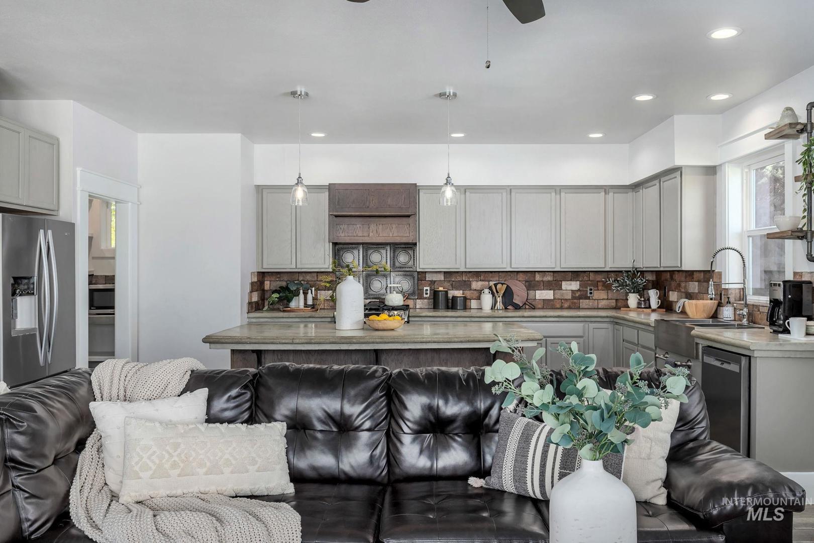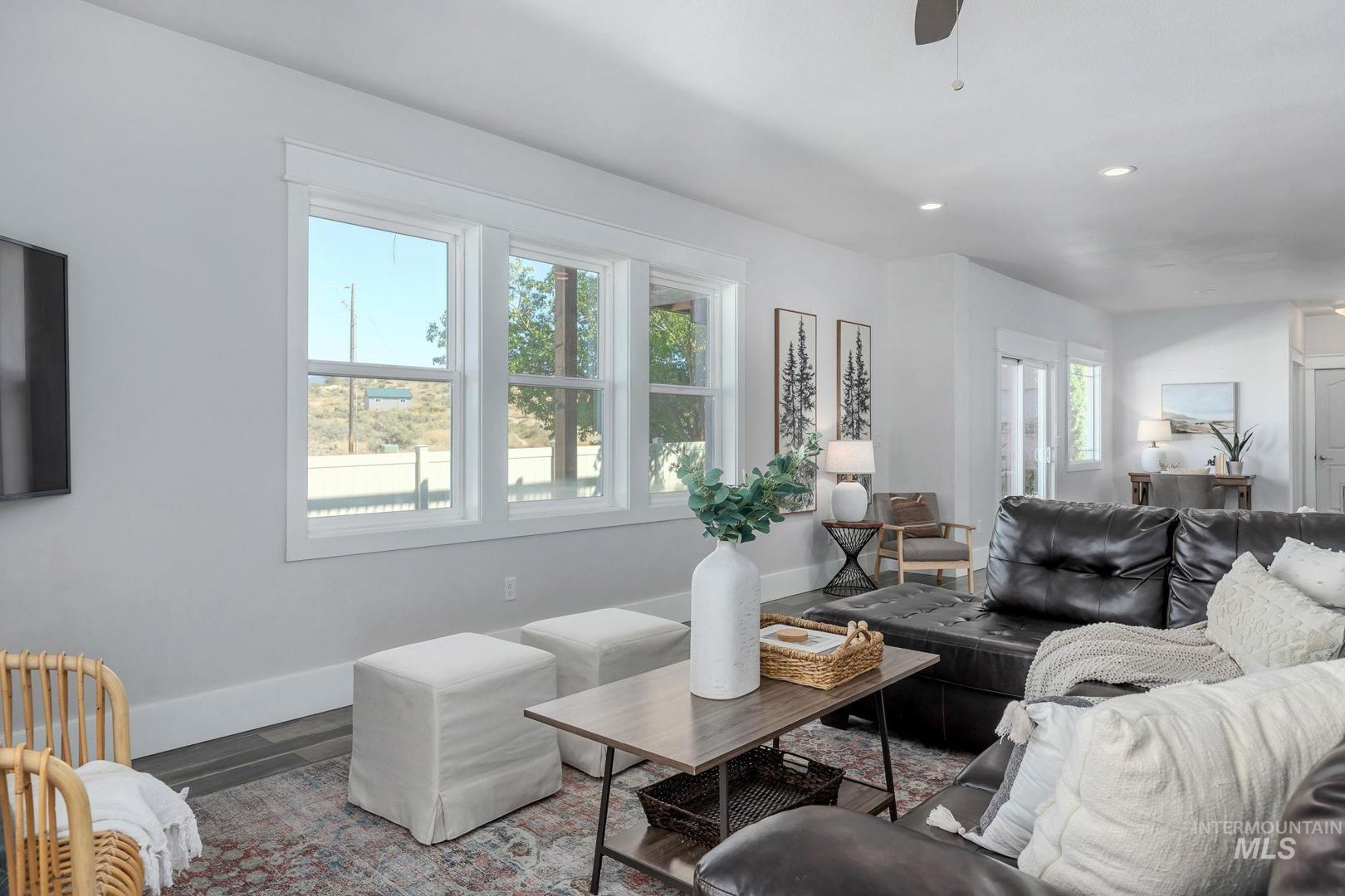 Beautifully updated and perfectly located, this Eagle home offers modern comfort just minutes from downtown, the foothills, parks, golf, and the Greenbelt. Enjoy views of Bogus Basin and direct access to the Eagle Sports Complex, bike trails, dog park, and the Rivers to Ridges trail system just out across the street from the neighborhood. Inside, you’ll find two spacious primary suites, each with its own private view balcony. The main suite features a spa-like bath, large walk-in closet, and a cozy nook ideal for reading, TV, or nursery space. The 2018 remodel highlights a stunning kitchen with stainless steel appliances, concrete countertops, a center island, farmhouse sink, and a butler’s pantry. Abundant windows bring in natural light, and multiple outdoor living spaces are perfect for year-round enjoyment. Located in the sought-after Eagle School District (Seven Oaks Elementary, Eagle Middle, and Eagle High), this home blends location, lifestyle, and livability. Step out your front door and hike, bike, or explore. Live where adventure begins! Additional room with concrete pad behind gate for parking/storing a third car, boat, etc! Newer HVAC system (2018)!