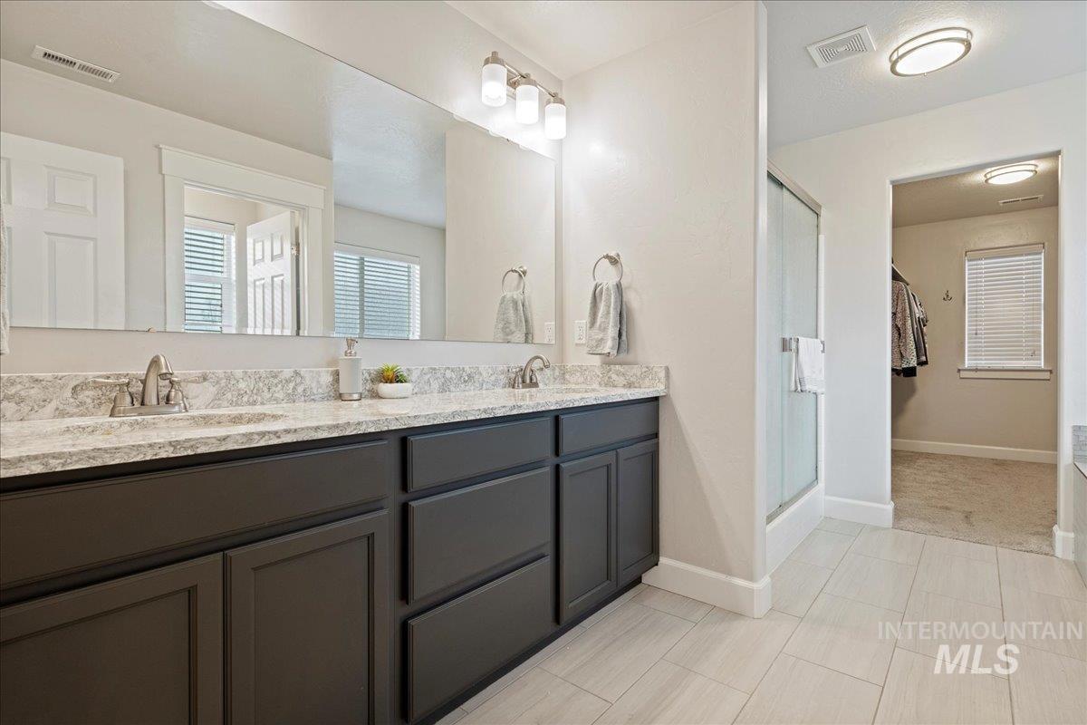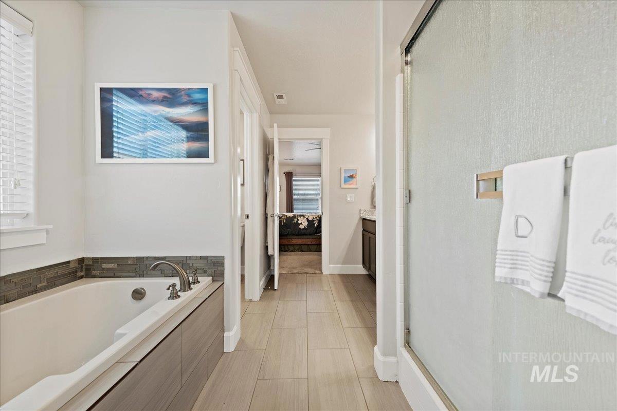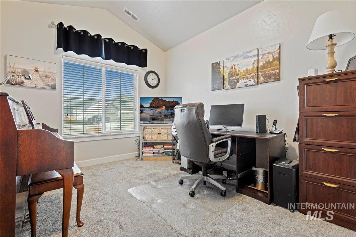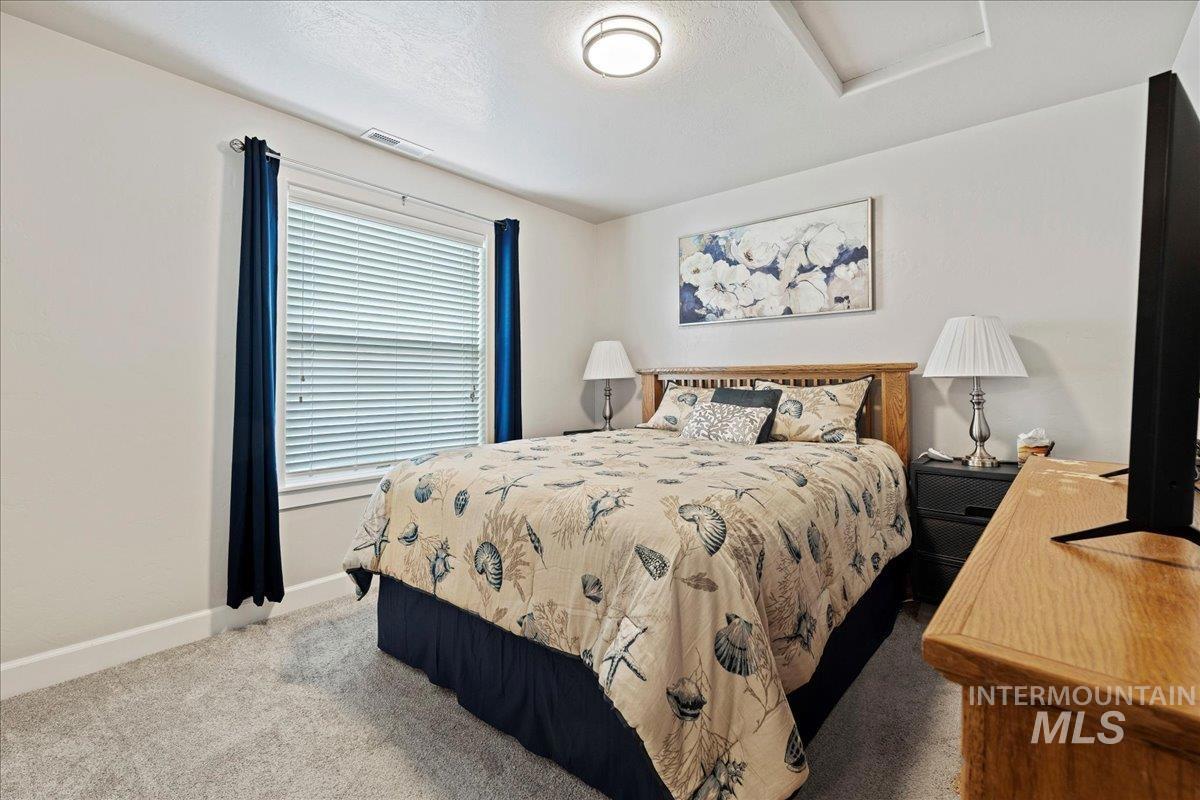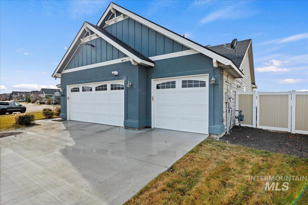 Experience refined living in this better than new residence, impeccably maintained & ideally situated in one of Nampa’s most sought-after neighborhoods w/ access to a community park and pool. Thoughtfully designed for both elegance and efficiency, the home includes owned solar panels, resulting in remarkably low power costs averaging just $5–$7 per month! Enjoy exceptional privacy w/ no rear neighbors & no neighbors on one side, complemented by a full vinyl fence, storage shed, & an oversized covered patio perfect for serene outdoor entertaining. Inside, expansive windows and soaring 9-foot ceilings bathe the home in natural light, enhancing the spacious open-concept living area that seamlessly connects the kitchen & dining spaces. The kitchen is both sophisticated & functional, featuring a large island & an oversized pantry ideal for hosting. Retreat to the sumptuous primary suite, complete w/ a spa-inspired en suite bathroom featuring a walk-in shower, separate soaker tub, & a spacious walk-in closet designed for both style & functionality. A versatile bedroom just off the entry offers the perfect space for a private office or guest suite. Conveniently located near the lake, golf course, dog parks, schools, shopping, dining & more, this exceptional property offers an elevated lifestyle defined by comfort, privacy, and timeless appeal. One year home warranty included