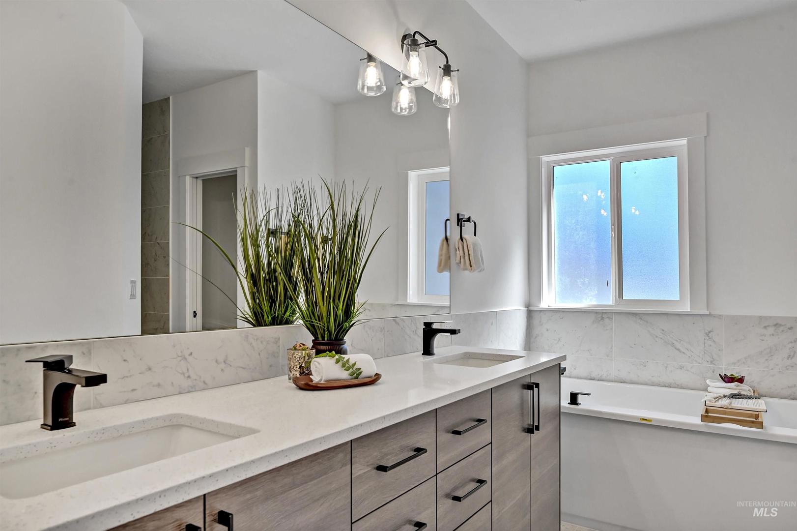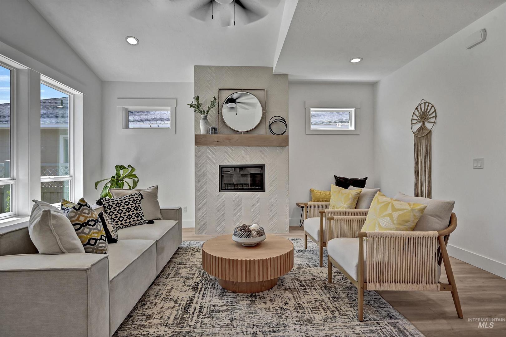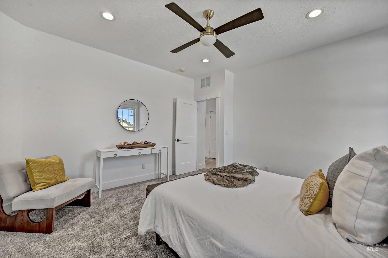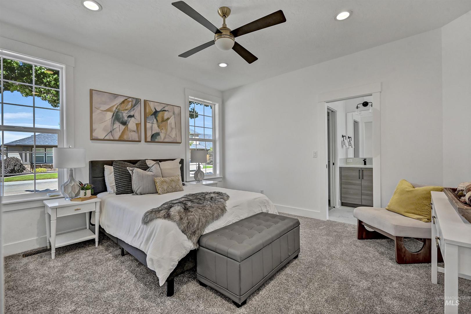 Welcome to this beautiful new construction home in the heart of Northwest Boise! This stunning two-story residence showcases modern style and thoughtful design throughout. The main-level primary suite offers comfort and privacy with a luxury en-suite bathroom featuring both a soaking tub and walk-in shower. The kitchen is a showstopper with a large quartz island, stainless steel appliances, and ample counter space for cooking and gathering. The open-concept layout flows seamlessly from the dining area to the great room, creating the perfect space for entertaining guests or enjoying everyday living. Upstairs, you’ll find additional bedrooms and flexible space to fit your lifestyle needs. Ideally located just minutes from biking and hiking trails, the Boise River, and all the outdoor recreation Northwest Boise is known for, this home blends convenience, charm, and quality craftsmanship. Pet/eco friendly turf in backyard. Truly a must-see opportunity!