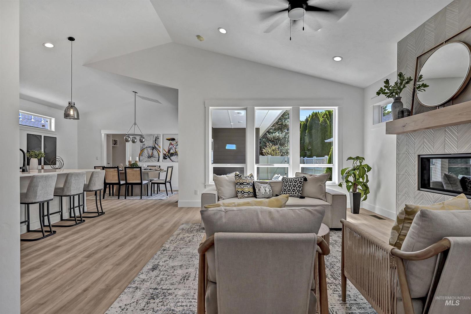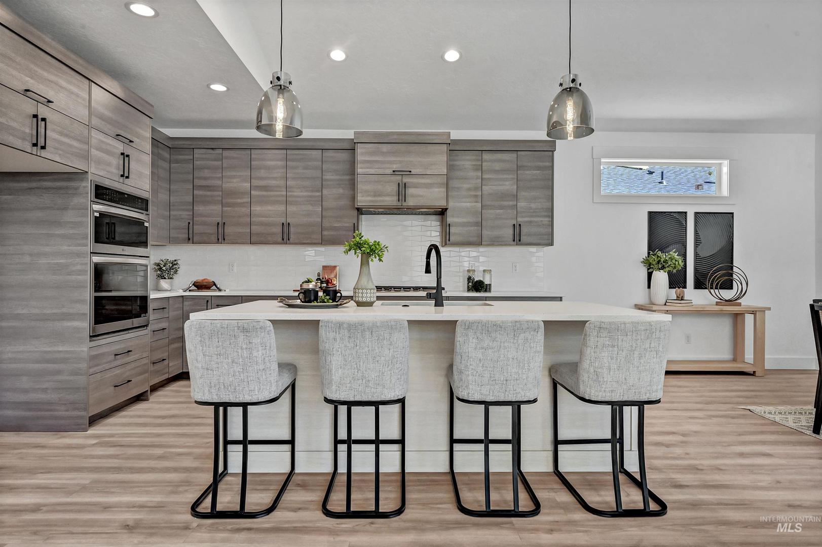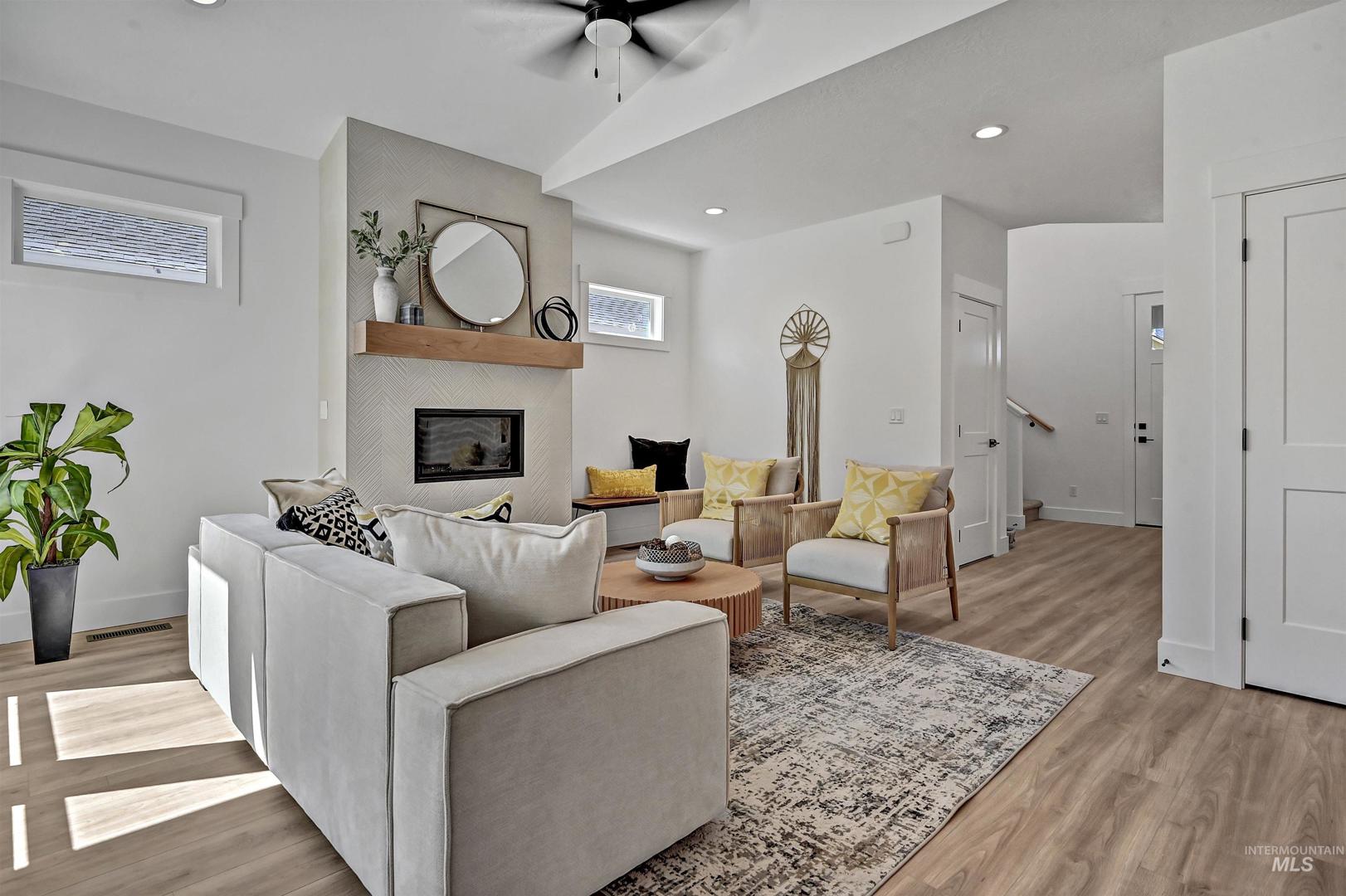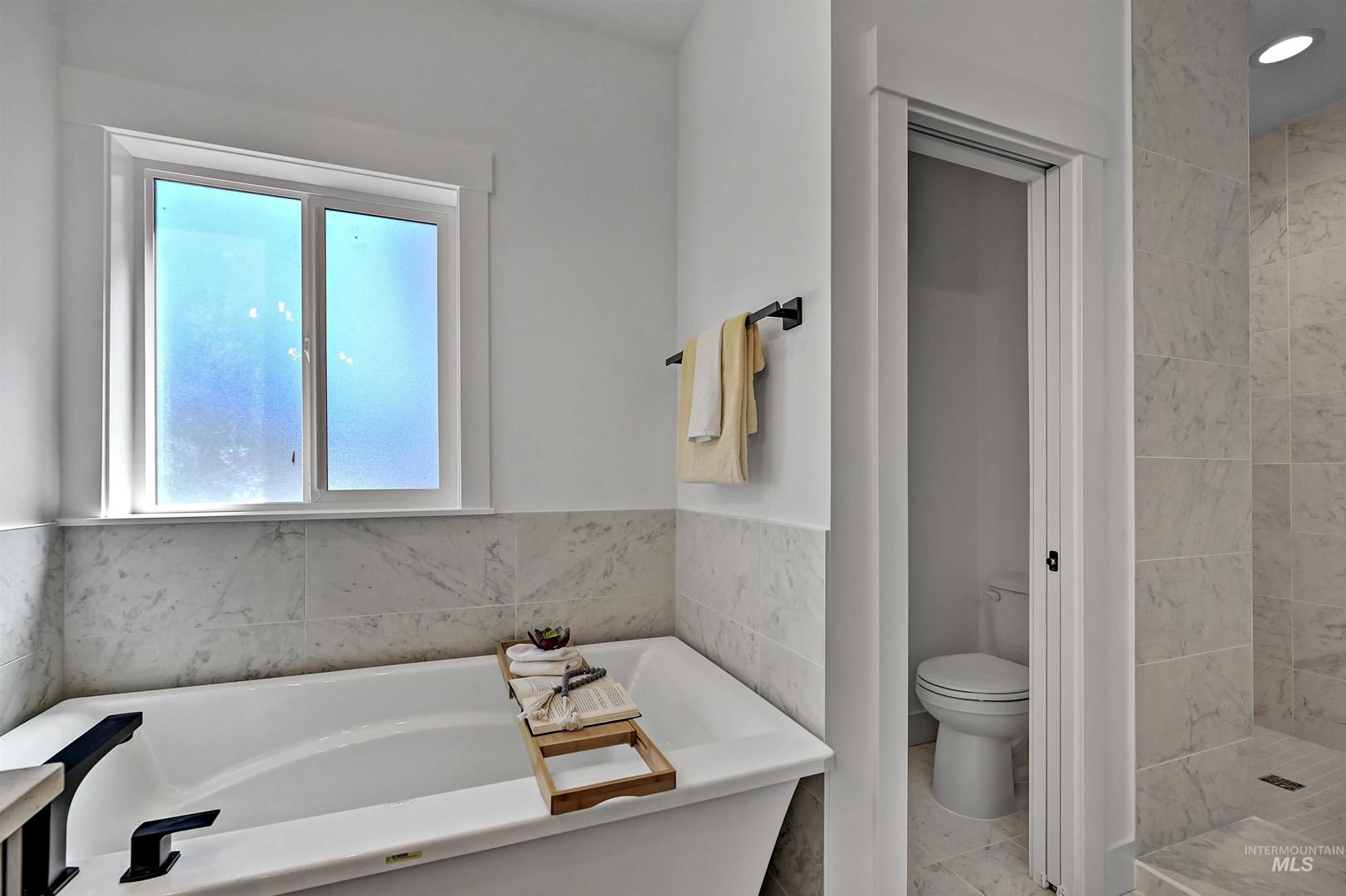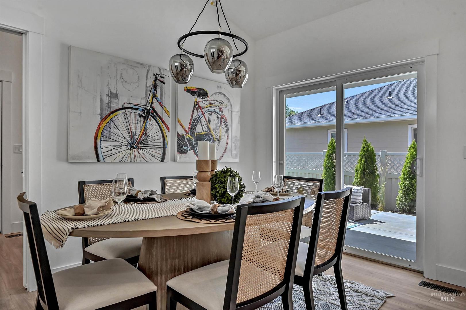 Welcome to this beautiful new construction home in the heart of Northwest Boise! This stunning two-story residence showcases modern style and thoughtful design throughout. The main-level primary suite offers comfort and privacy with a luxury en-suite bathroom featuring both a soaking tub and walk-in shower. The kitchen is a showstopper with a large quartz island, stainless steel appliances, and ample counter space for cooking and gathering. The open-concept layout flows seamlessly from the dining area to the great room, creating the perfect space for entertaining guests or enjoying everyday living. Upstairs, you’ll find additional bedrooms and flexible space to fit your lifestyle needs. Ideally located just minutes from biking and hiking trails, the Boise River, and all the outdoor recreation Northwest Boise is known for, this home blends convenience, charm, and quality craftsmanship. Pet/eco friendly turf in backyard. Truly a must-see opportunity!