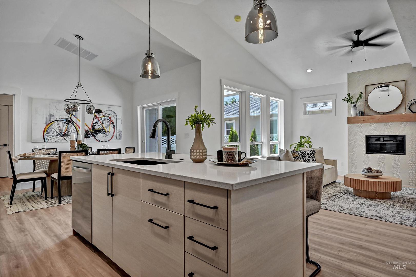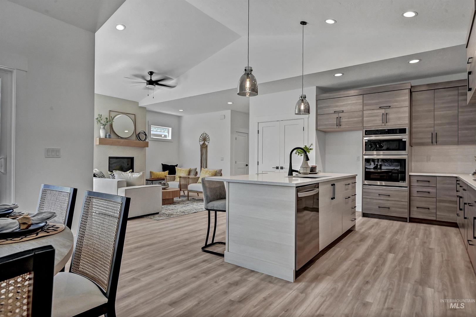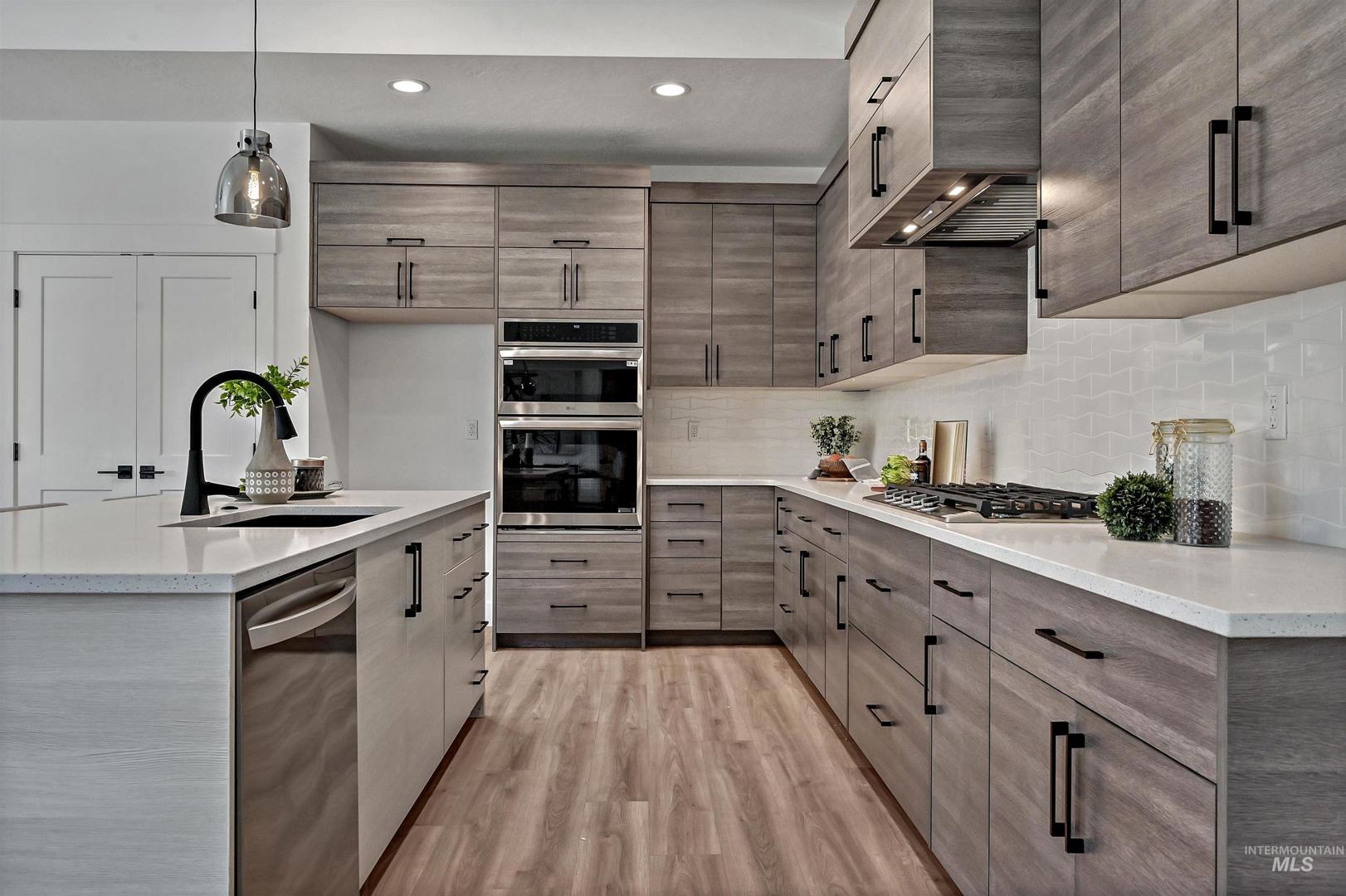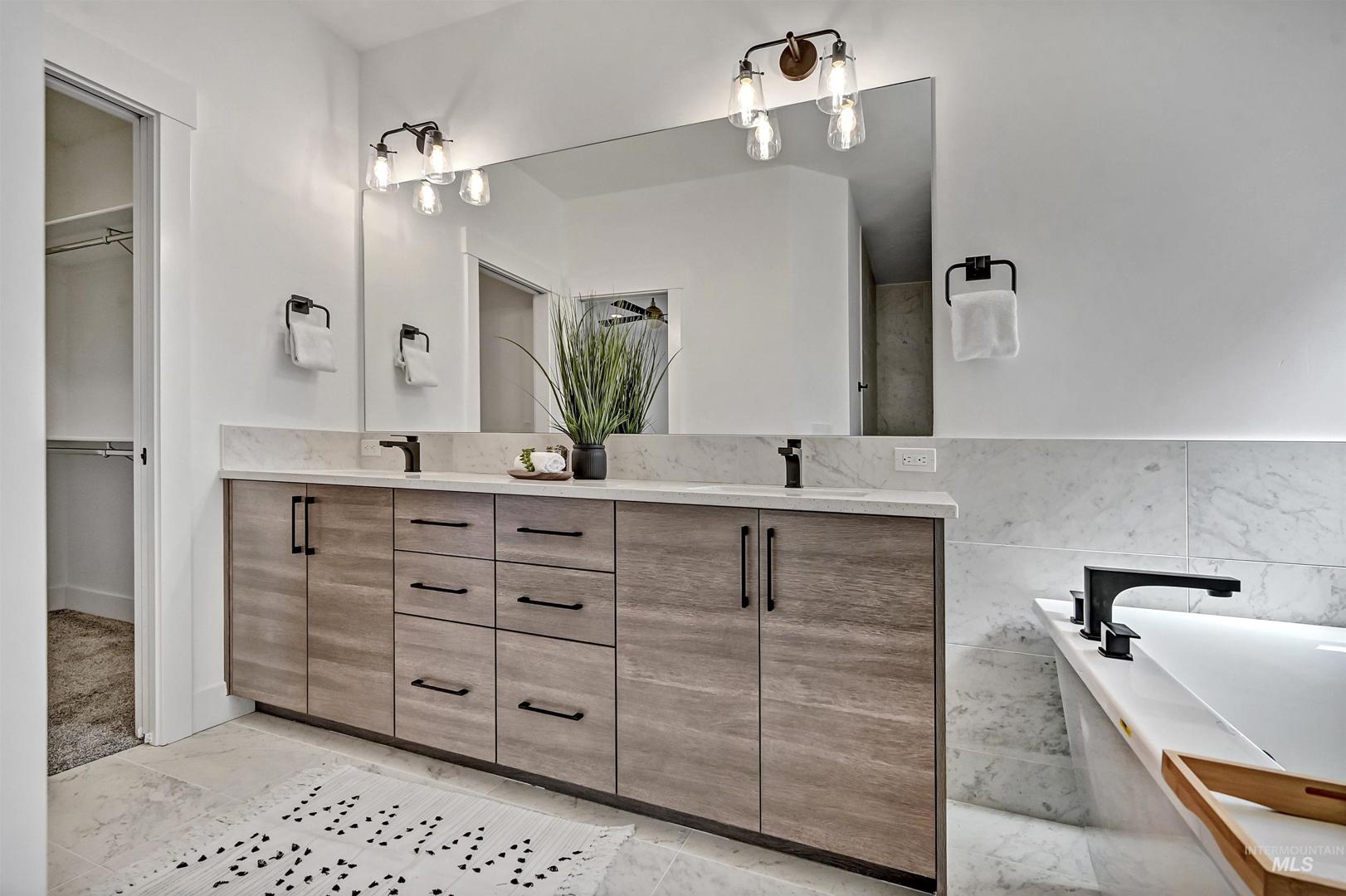 Welcome to this beautiful new construction home in the heart of Northwest Boise! This stunning two-story residence showcases modern style and thoughtful design throughout. The main-level primary suite offers comfort and privacy with a luxury en-suite bathroom featuring both a soaking tub and walk-in shower. The kitchen is a showstopper with a large quartz island, stainless steel appliances, and ample counter space for cooking and gathering. The open-concept layout flows seamlessly from the dining area to the great room, creating the perfect space for entertaining guests or enjoying everyday living. Upstairs, you’ll find additional bedrooms and flexible space to fit your lifestyle needs. Ideally located just minutes from biking and hiking trails, the Boise River, and all the outdoor recreation Northwest Boise is known for, this home blends convenience, charm, and quality craftsmanship. Pet/eco friendly turf in backyard. Truly a must-see opportunity!