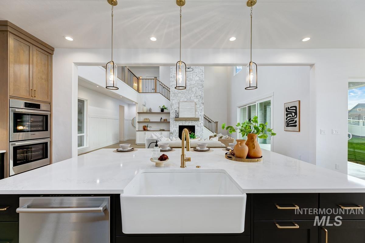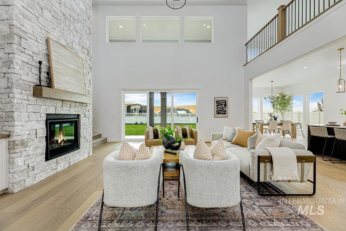 Last chance to save BIG! Season of Savings extended until February 10,2026. This Stanley home offers a bold, open layout designed to showcase light, flow, and flexibility. Just past the entry, the home opens to the great room, featuring an open-to-below ceiling anchored by a platform fireplace. The chef’s kitchen includes a large island, ample cabinetry, dual pantries, and a dining area with wall-to-wall windows. The main-level primary suite enjoys a freestanding tub, fully tiled shower, dual vanities, and a large walk-in closet. The guest suite on the main level is perfect for multi-generational living, close to a second garage with its own private entry and a full bath. Upstairs, a massive loft overlooks the great room and the backyard. Secondary bedrooms, a bonus room, and two baths complete the upper level. Now open, the Dry Creek Ranch Community Clubhouse spans five manicured acres, featuring courts, a pool, and an 8,840 sqft. clubhouse with state-of-the-art amenities. Home is under construction with a February 2026 completion date. Photos similar.