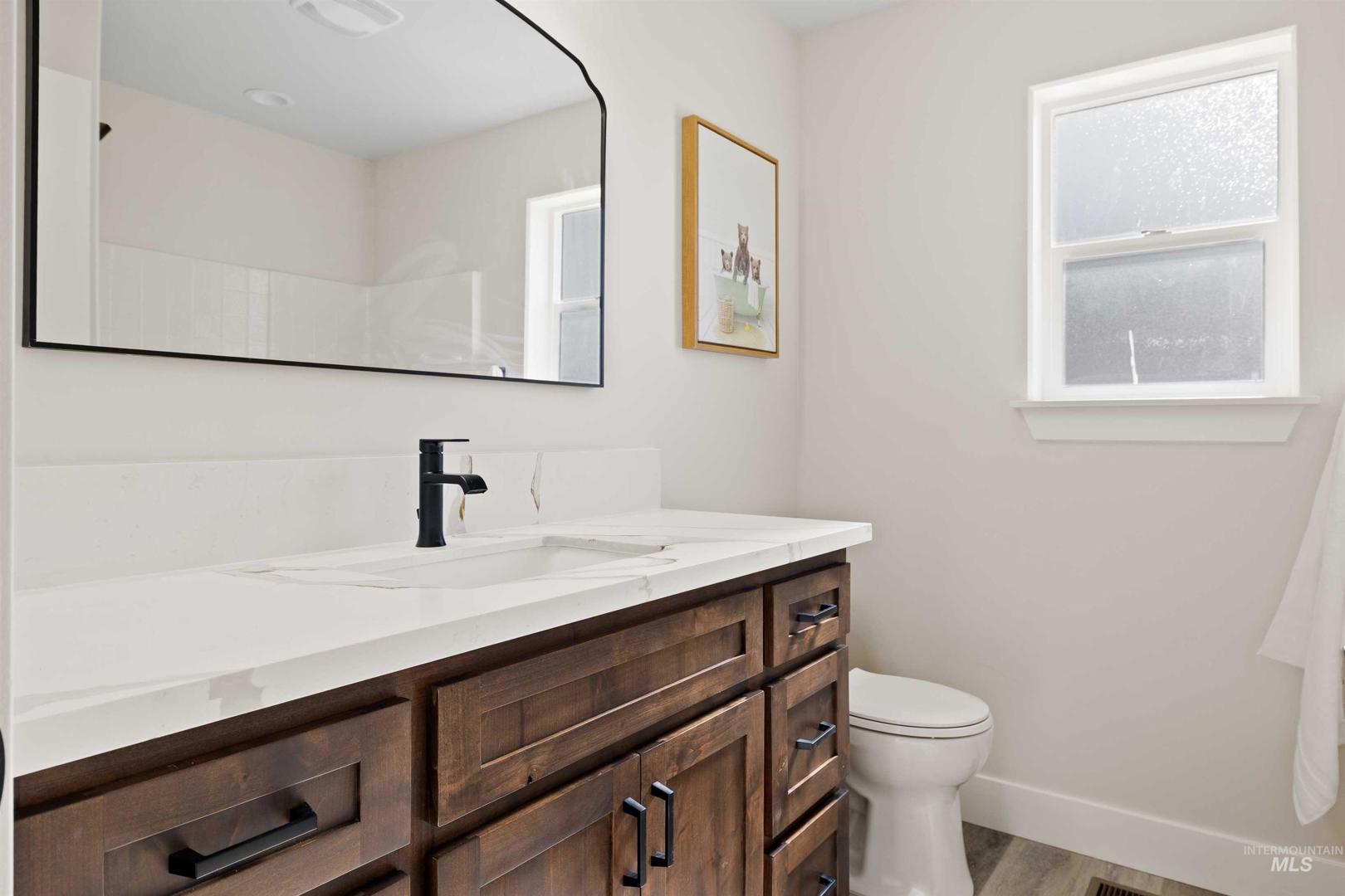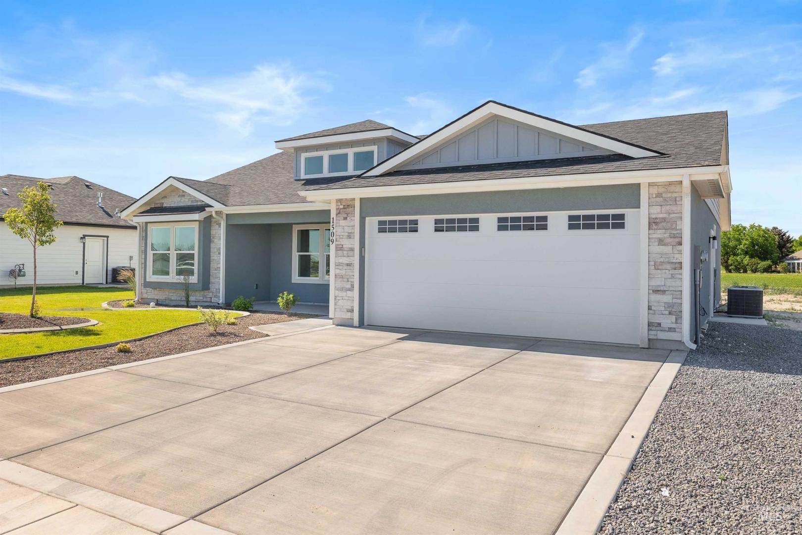 Introducing a stunning new build in Buhl, currently in the final stages of construction with only cabinets and countertops left to be installed. This exquisite 4-bedroom, 2-bathroom home features a spacious 2-car garage and an inviting split bedroom floorplan. The master suite boasts a luxurious ensuite with a walk-in tile shower and dual vanity, perfect for relaxation. A covered front porch, 16 feet wide, welcomes you into a bright living space where vaulted ceilings and dormers allow natural light to flood the room. The kitchen is a chef`s dream, complete with granite countertops, a full backsplash, and under-cabinet lighting that elevates the modern aesthetic. This home, finished with a full stucco exterior, combines elegance with functionality, making it the perfect sanctuary for any buyer.